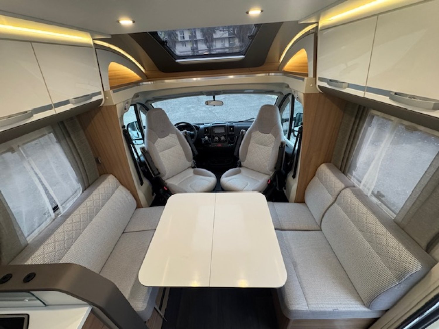 Son salon face-face convivial a été développé pour offrir un maximum d espace notamment grâce à sa table repliable. Il peut accueillir 4 personnes. Cela en fait le véhicule idéal pour partir en famille ou entre amis.