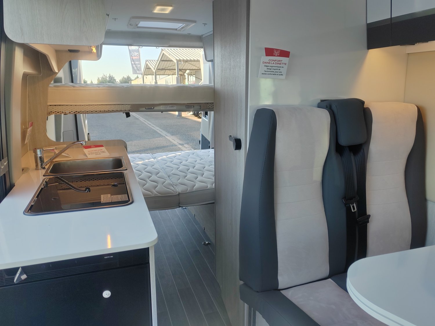 Caméra de recul, Lanterneau Midi Heki 700x500 dinette, Multimédia Pioneer 9", Eclairage extérieur, Moustiquaire, Marchepied électrique, Store occultant cabine, Calandre noire, Feux anti-brouillards, Panneau de commande CP Plus, Frein à main électrique, Jantes alu 16", Volant et pommeau cuir, PACK GO COMPRENANT :, Pare-chocs avant peint