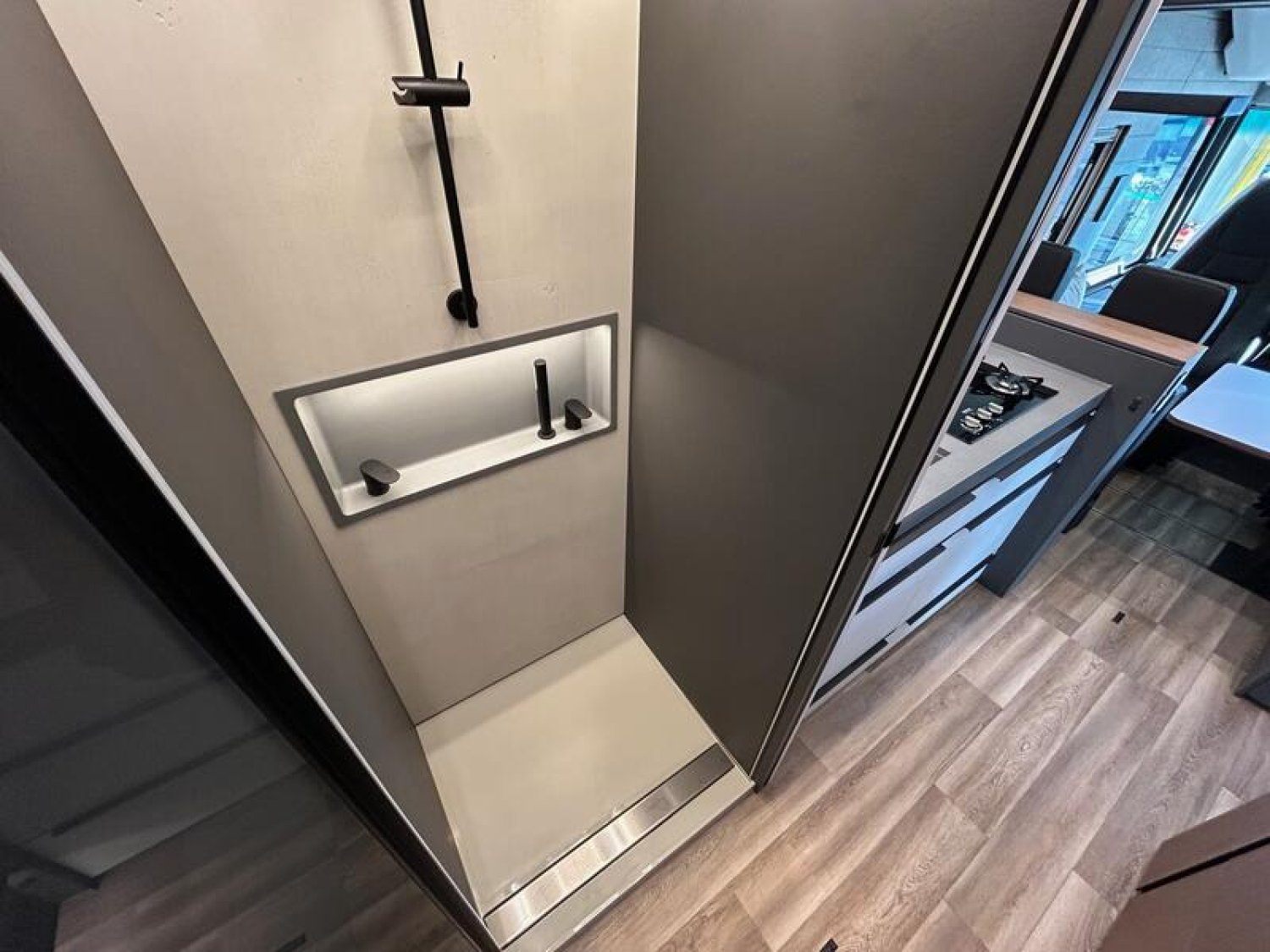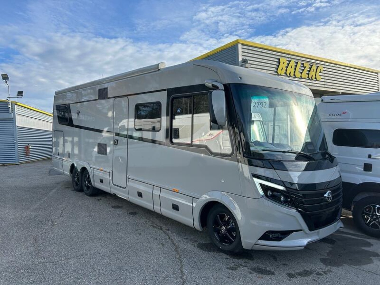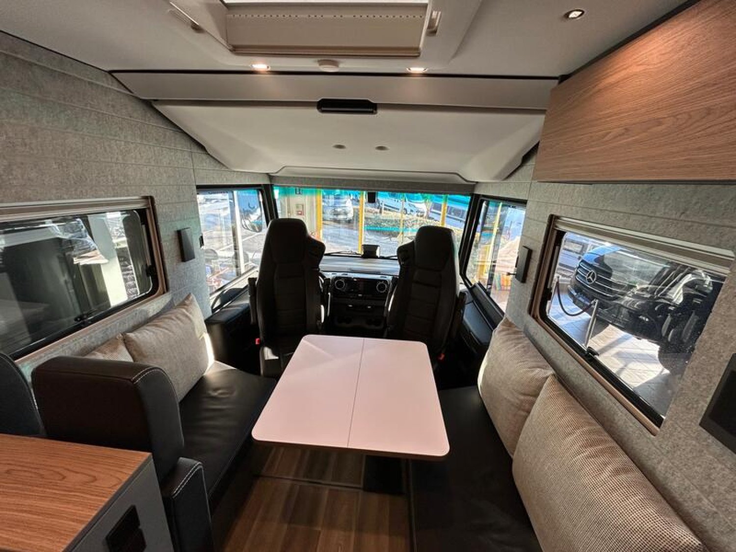 Attraction (cuir anthracite) + Armoire avec tringle à vêtements et tiroir à la place de suspension pour pantalons (pour le modèle 88) + Motorisation 125 KW/170 CV + Boîte de vitesses automatisée 9G-Tronic + Crochet d’attelage (amovible) + Vérins hydrauliques (AL-KO HY4) avec système de nivellement automatique et fonction pesée + Suspension pneumatique arrière avec mise à niveau + Sièges conducteur et passager, chauffants avec soutien lombaire + Feux anti-brouillard à LED 310€/Feux de croisement et de route à LED 1510€ + Ventilateur au-dessus de la cuisine + Système de rangement dans le double-plancher 95x85 cm + Store extérieur électrique, 6 m, éclairage LED & variateur + Lit de pavillon manuel en remplacement des placards avant + Banquette face à face transformable en banquette en L côté conducteur + Mini coffre fort + Machine à café (à capsules 230V) escamotable par push-lift dans le compartiment de rangement de la cuisine + Rangement coulissant 155 x 65 cm 930€/Rangement coulissant 125 x 65 cm 850€ + Tuyau de vidange escamoté dans un tube + Vidange à commande électrique du réservoir eaux usées + Détendeur de sécurité Truma DuoControl CS + 2 filtres pour bouteilles de gaz + Alarme en cas de fuite de gaz + Vidange à commande électrique du réservoir fixe WC Code V5001510A + Aération toilette SOG par le toit + Système de filtration de l'eau Aquaclear (procédé par traitement UV ) + Climatisation de toit chambre arrière (puissance de climatisation de 2.500 w. et de chauffage de 2.000 w + Échangeur de chaleur moteur + Prise de courant 230 V dans le garage + Prise gaz extérieure Code V50230JA + Valet pour les penderies situées sous les lits arrières : 52975 €