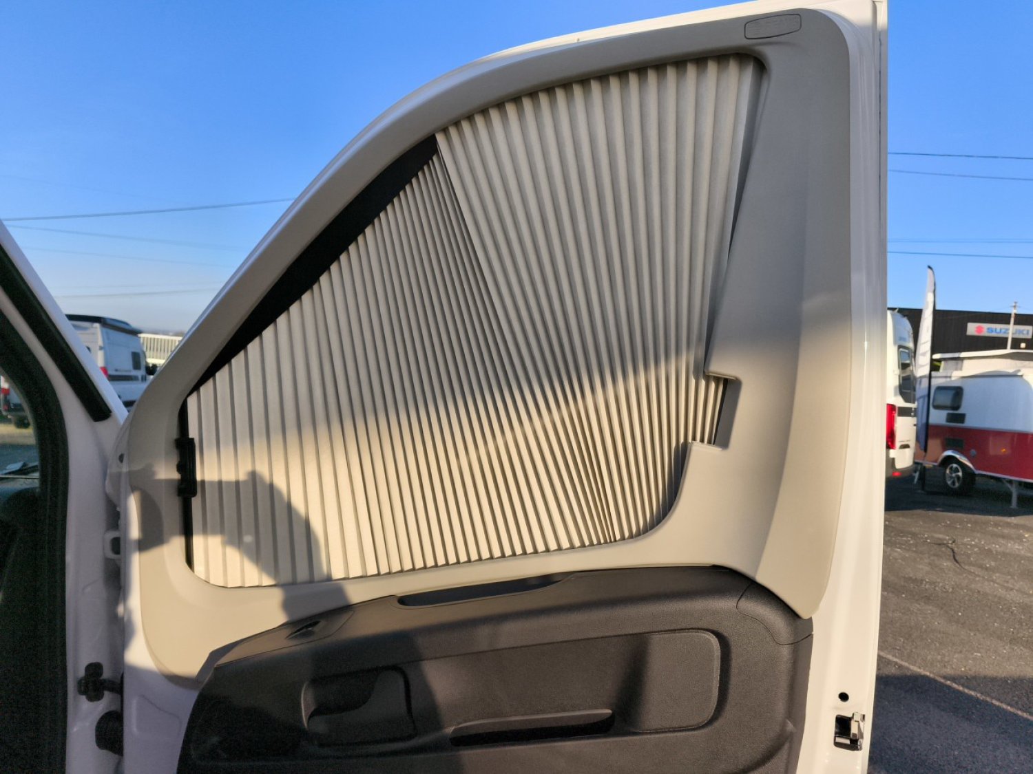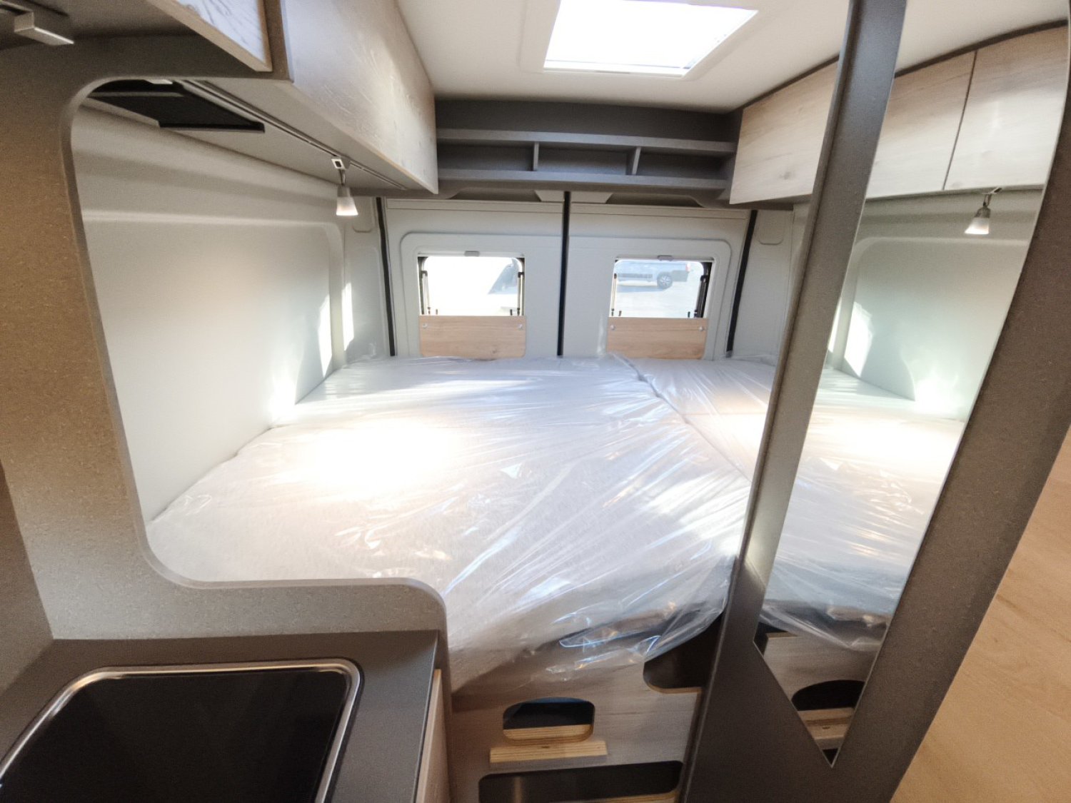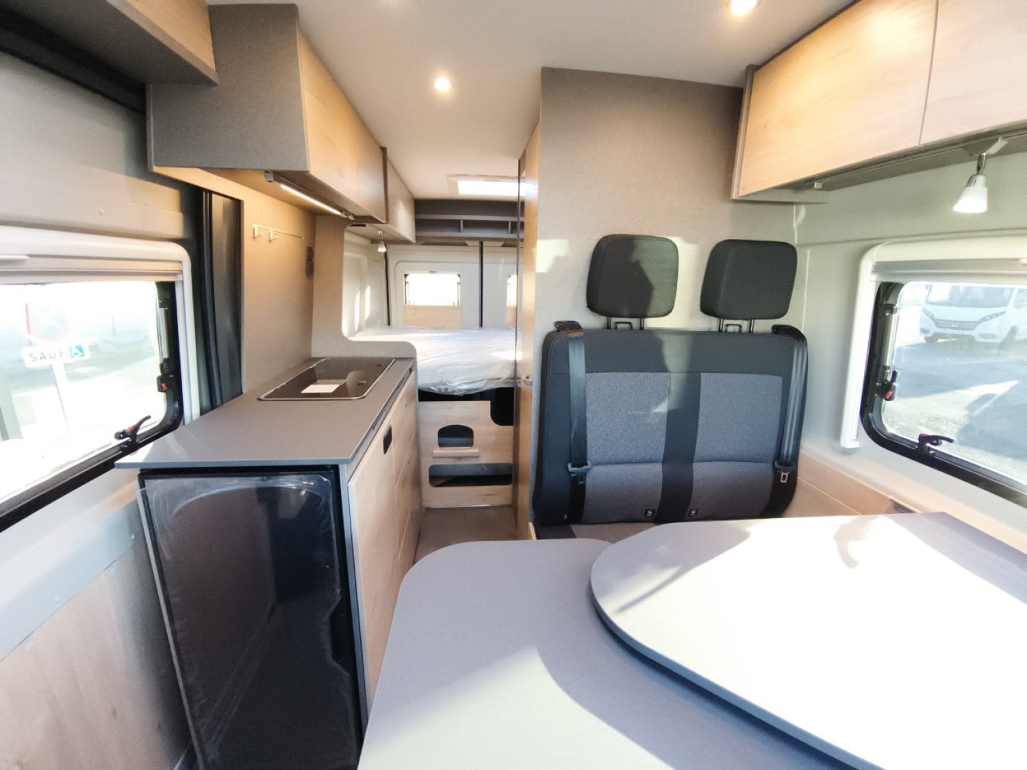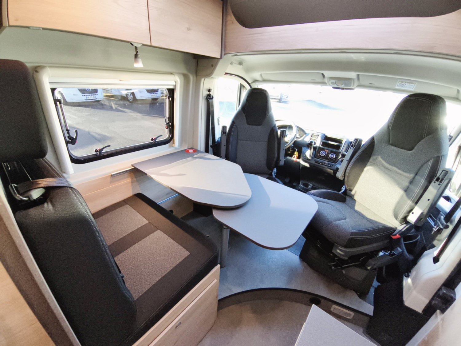 - Pack "Active" (volant et pommeau de levier de vitesse en cuir, prise USB, stores plissés occultants de cabine, moustiquaire de porte, marchepied électrique, baie dans le cabinet de toilette, Pré-câblage pour caméra de recul et panneau solaire, Pré-équipement TV, bandes lumineuses à LED, prise 230 V dans la dînette, prise 12 V et double prise USB à l'arrière),