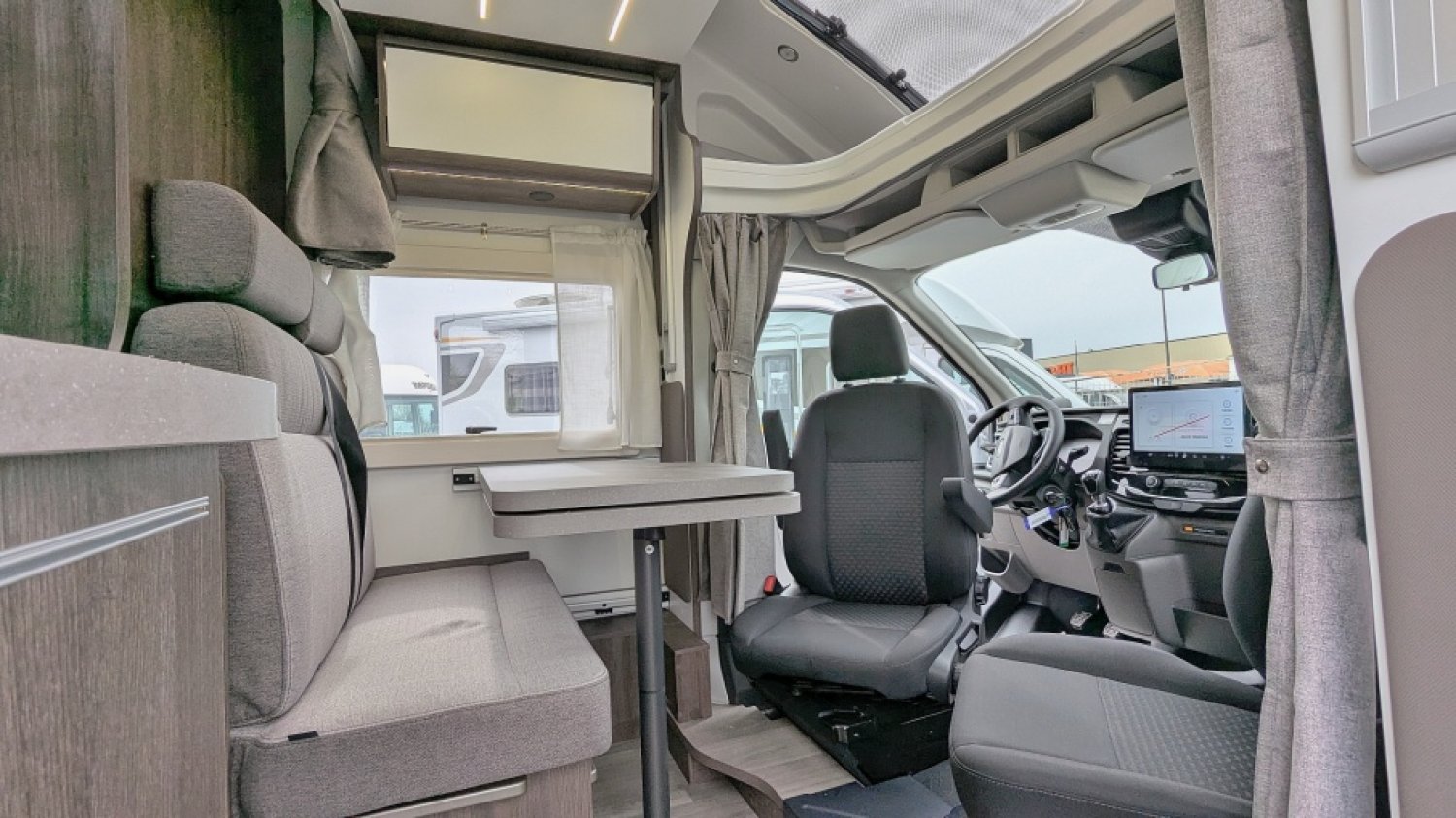 Atouts inclus : Carrosserie polyester, TECHNOLOGIE SANS BOIS ISB (inserts polyuréthane + XPS), Fenêtres double vitrage D-Lux affleurantes, Réfrigérateur/congélateur (140l) AES+ tiroir 9 bouteilles 1,5l, Chauffage 4000 w, Fenêtre et moustiquaire sur porte cellule, Lit pavillon électrique, ABS, ESP, Traction +, airbag conducteur et passager, régulateur/limiteur de vitesse, sièges conducteur et passager tournants, accoudoirs réglables, volant gainé cuir et réglable, Phares antibrouillard, rétroviseurs électriques et dégivrants, frein à main électrique, systèmes avancés d'aide à la conduite, contrôle de la pression des pneus, climatisation cabine automatique, combiné multimédia DAB Android/Apple Carplay 12" avec caméra de recul et commandes tableau de bord semi-numériques, radar de recul, sièges isofix,
