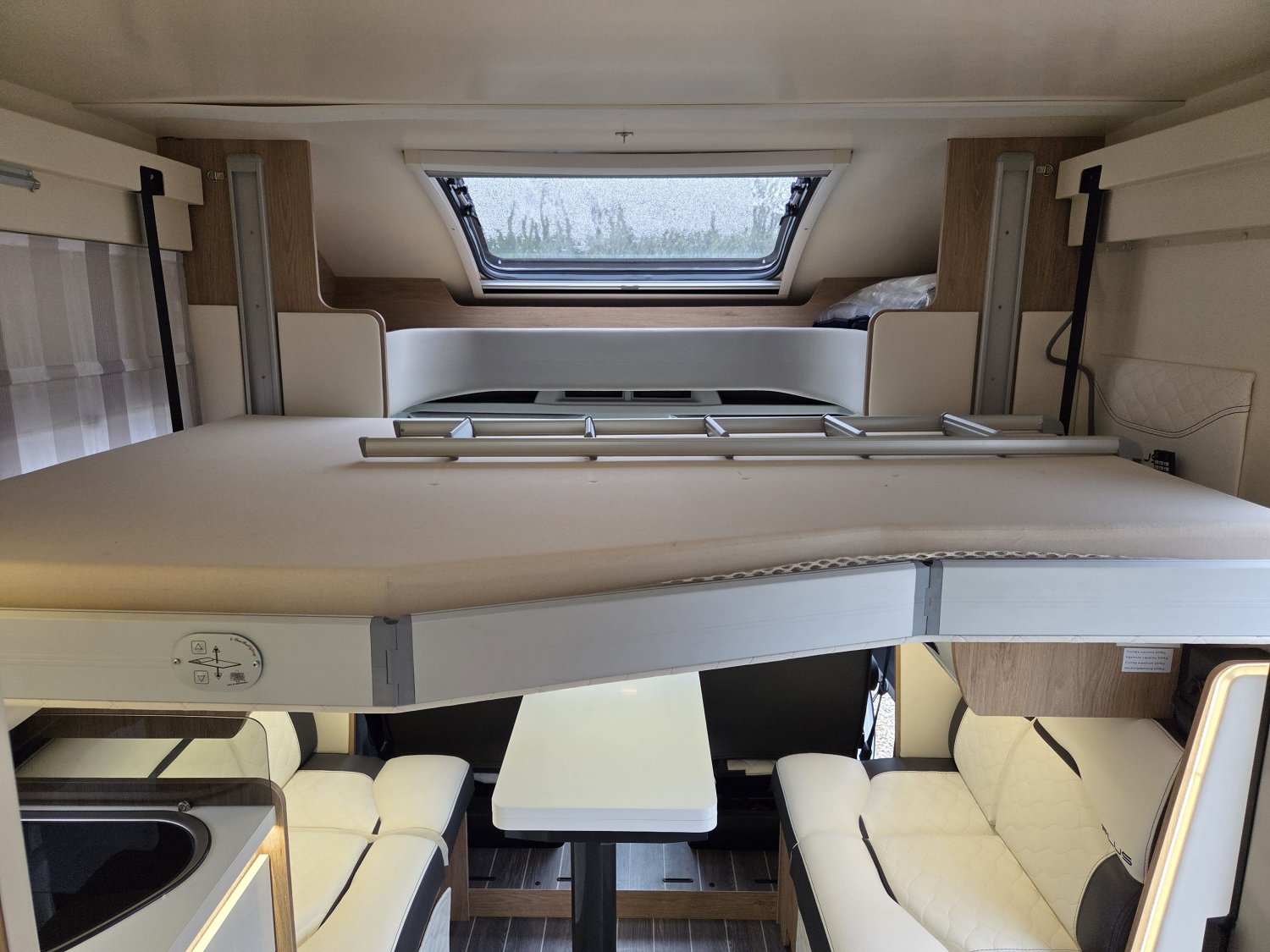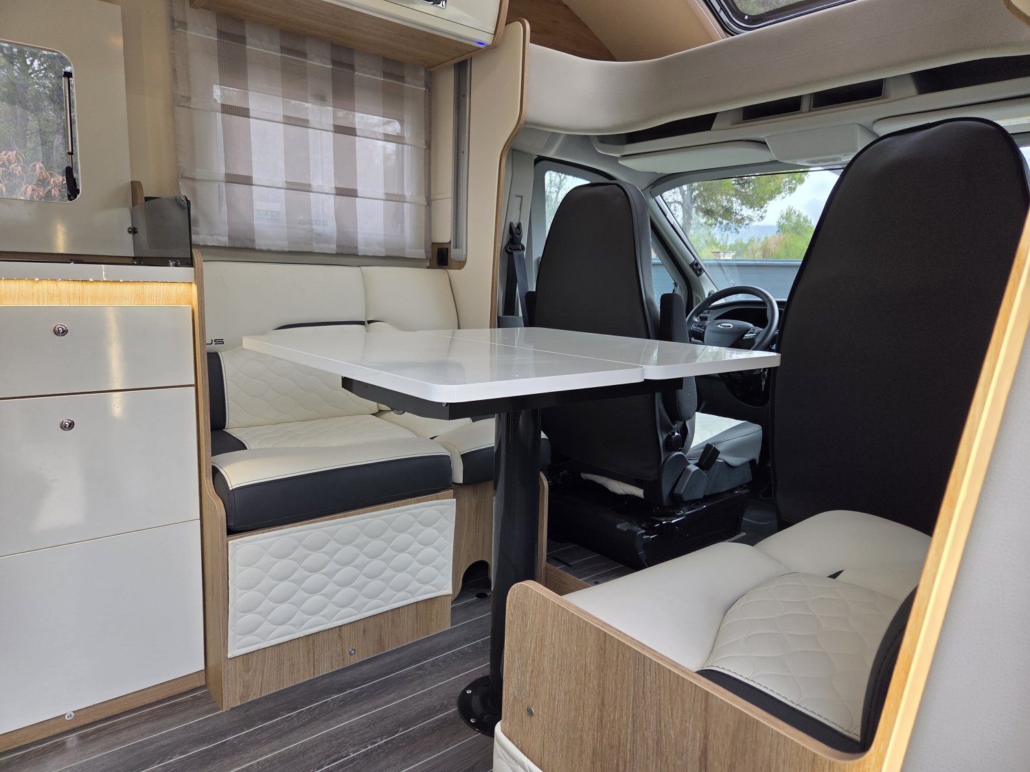 Le Roller Team Zéfiro Plus 261 TL de 2020, première main et totalisant seulement 7 100 km, est un camping-car en excellent état, prêt pour de nouvelles aventures. Il dispose d’un lit central 150 x 190 cm réglable en hauteur, ainsi que d’un lit pavillon électrique, offrant jusqu’à quatre couchages confortables. La grande douche séparée apporte un véritable confort au quotidien, tandis que le salon face à face lumineux crée un espace convivial et spacieux pour les repas ou la détente. À l’arrière, la soute garage permet de transporter facilement vélos, matériel ou bagages volumineux. Moderne, pratique et parfaitement entretenu, ce modèle combine confort et fiabilité pour voyager en toute sérénité.