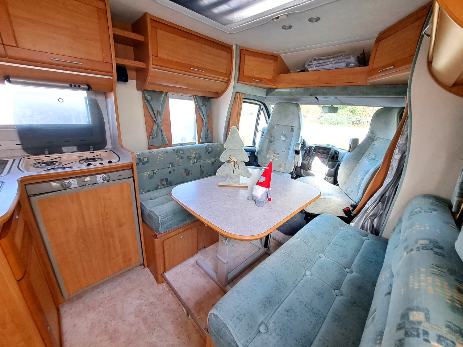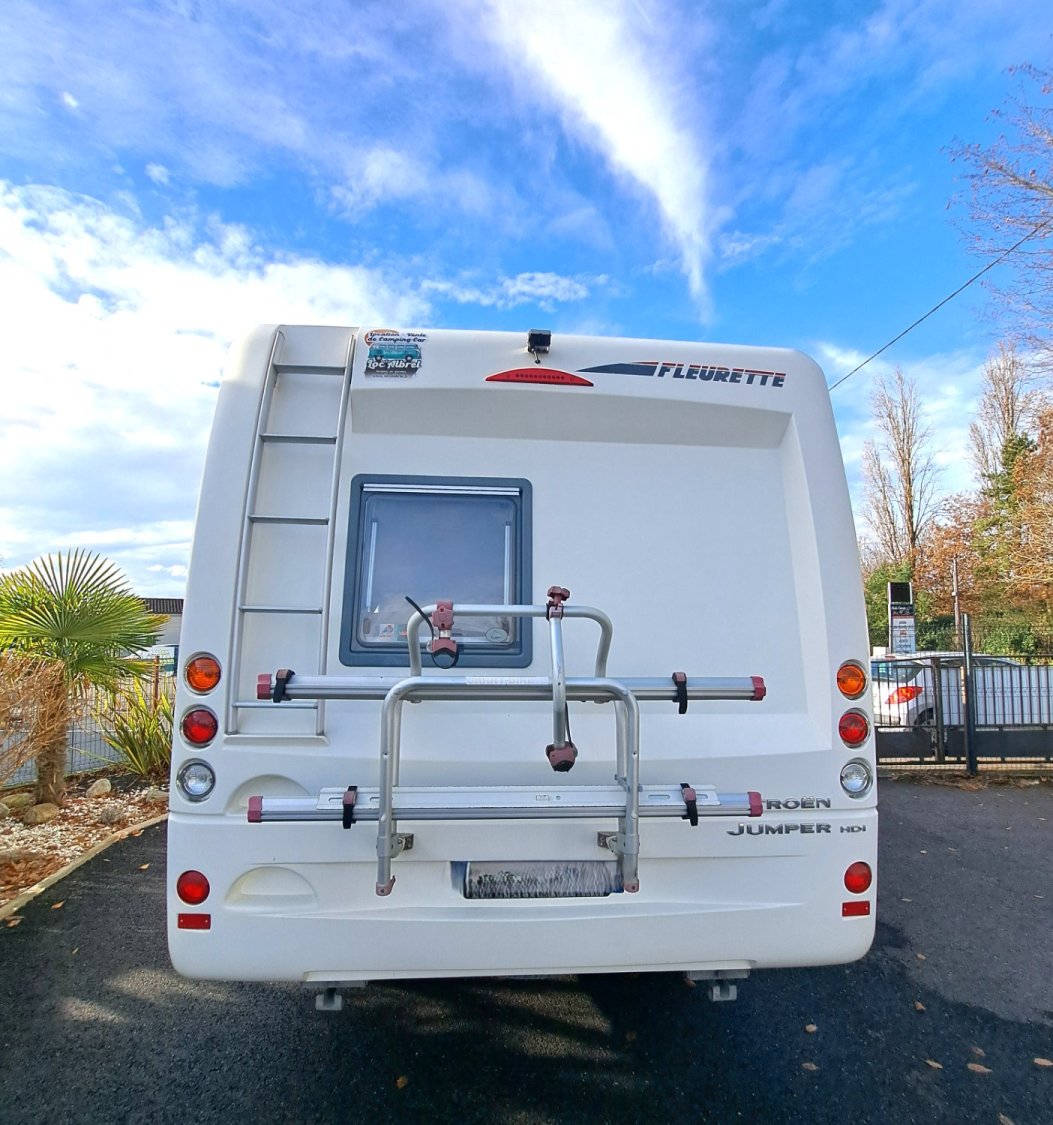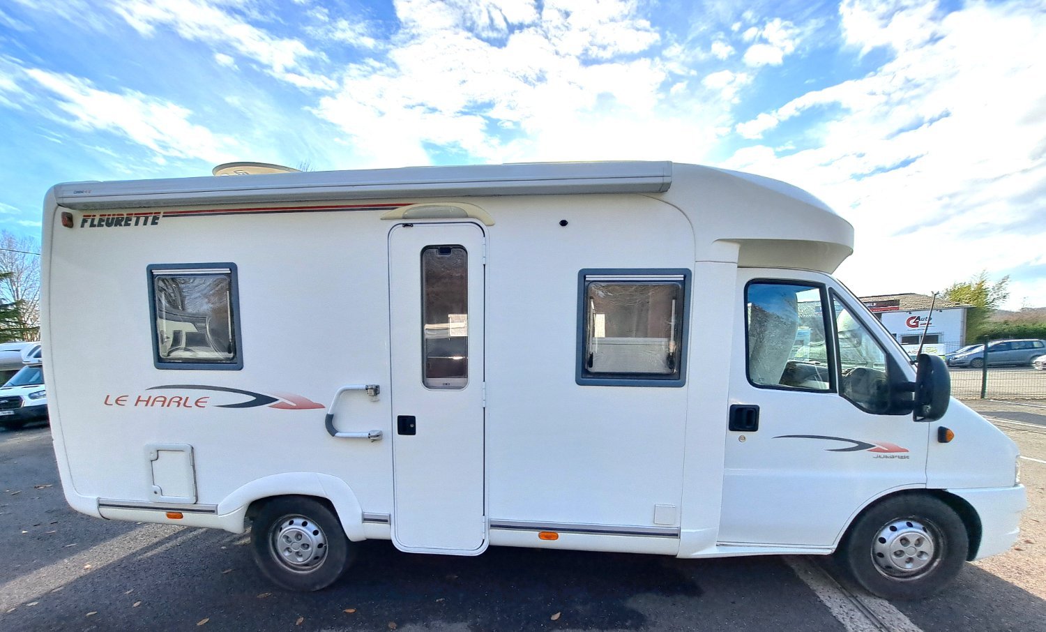 FLEURETTE Profilé 4 couchages, Diesel - 2006 - 76 058 km - 146 CV, Citroën Jumper 2.8 Power, boite de vitesse manuelle, 4 places CG : 26 900 € Dimension : L6.30 l2.23 H 2.65 Châssis AL-KO Centralisation cabine et cellule Clim porteur Cuisine 3 feux gaz Hotte Réfrigérateur 90l Dometic AES TV+Antenne satellite manuelle Combi chauffage/chauffe eau Truma Gaz + chauffage route Couchage : 4 - lit permanent arrière à la française - Lit dinette Salon face/face WC/ Douche Séparés Sièges cabines pivotants Store Extérieur Panneau solaire Caméra de recul Porte Vélos Soplair Stabilisateurs Révisé mécanique et cellule - Garantie commerciale Europeenne 12 mois