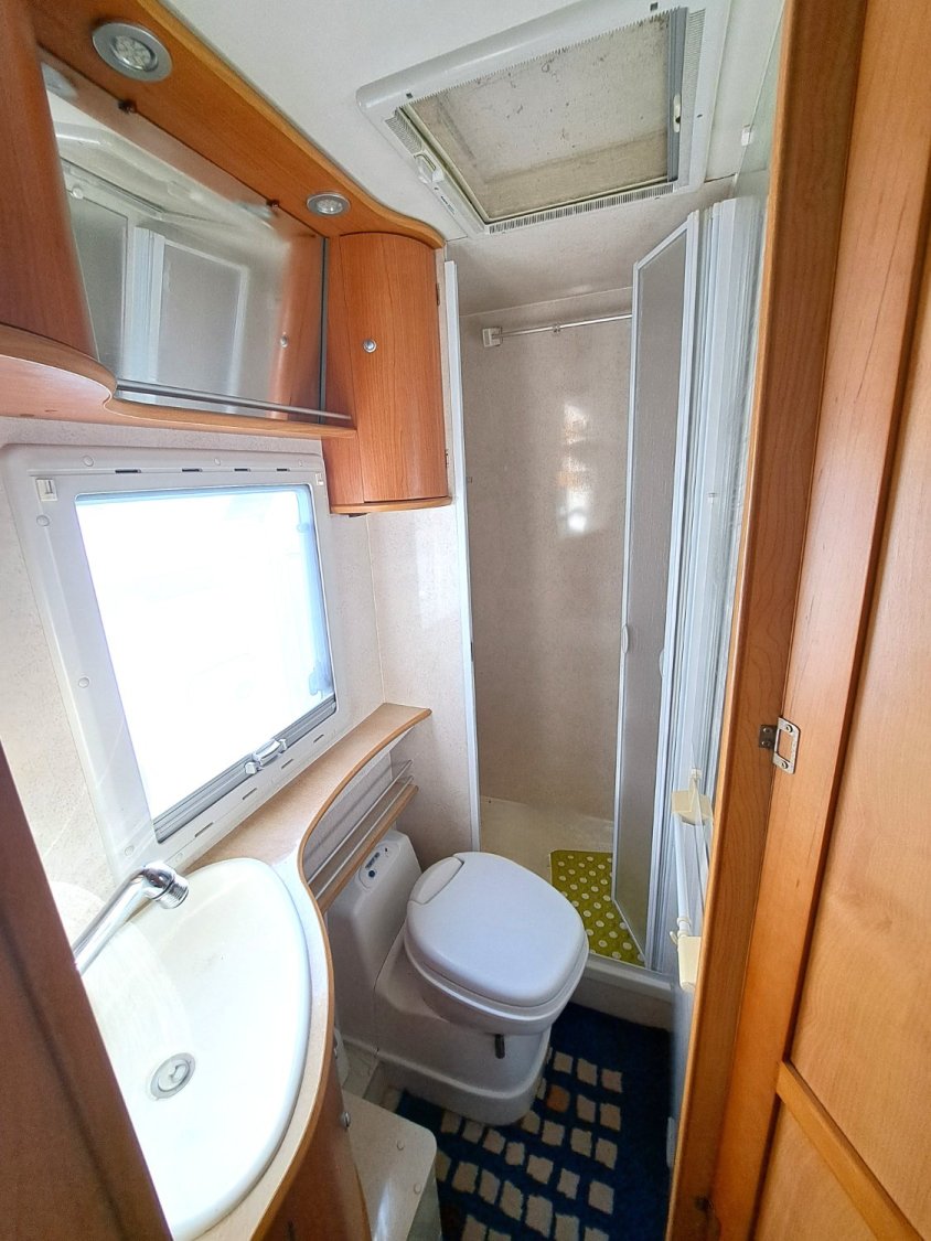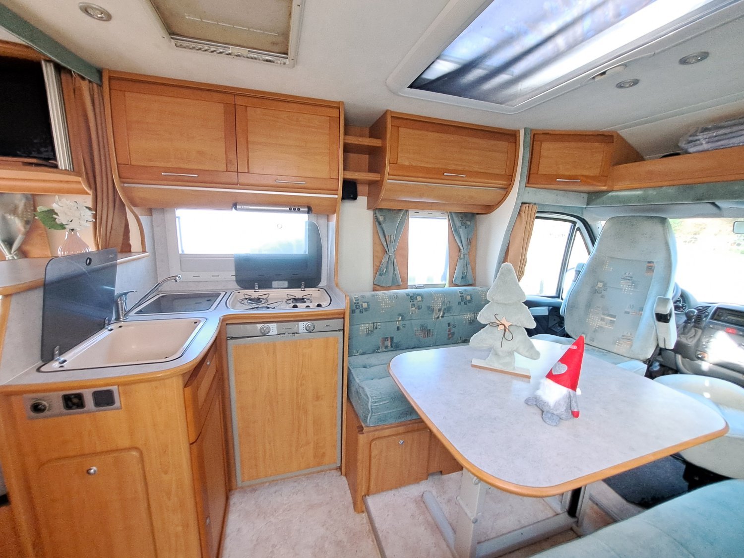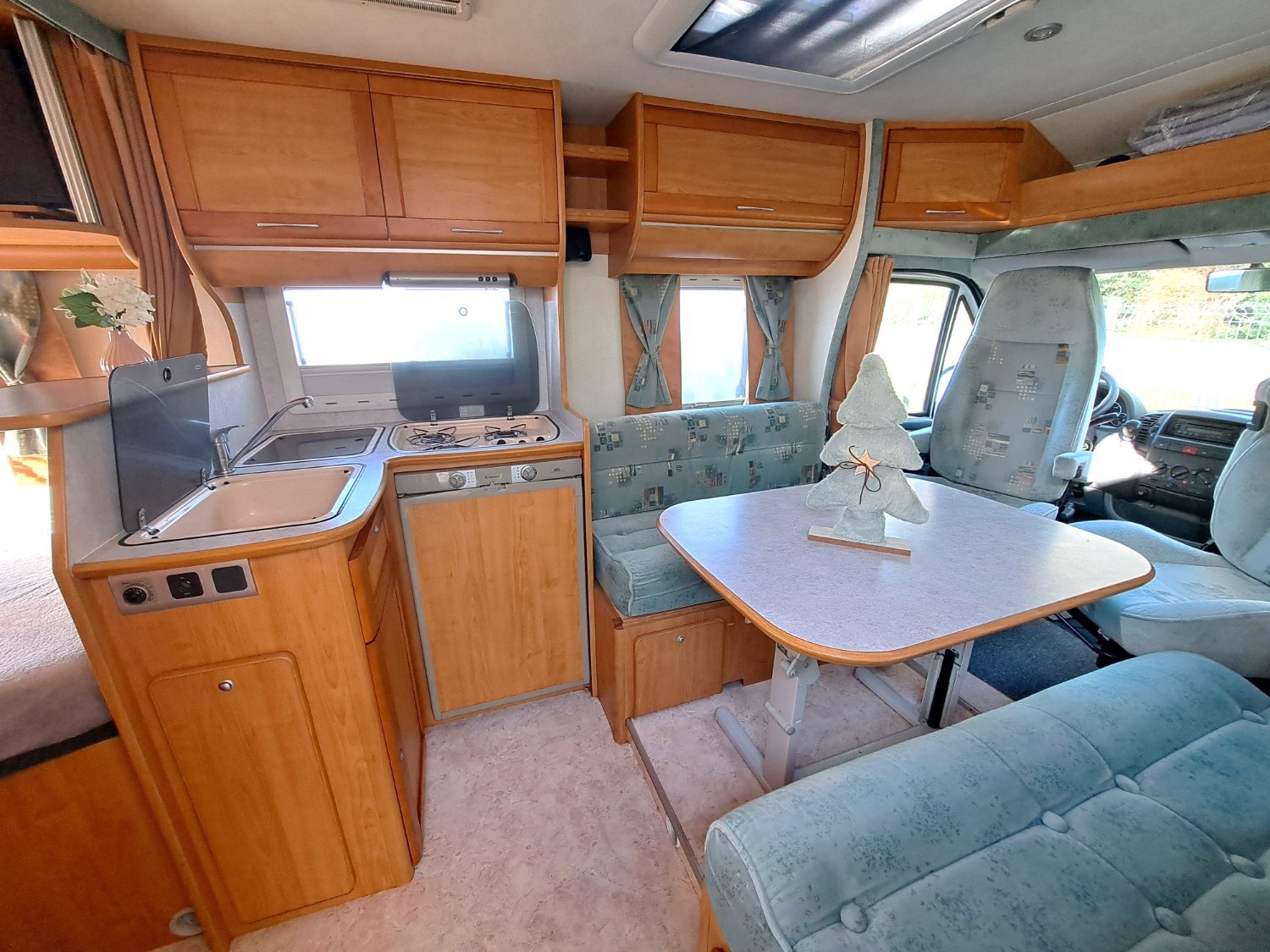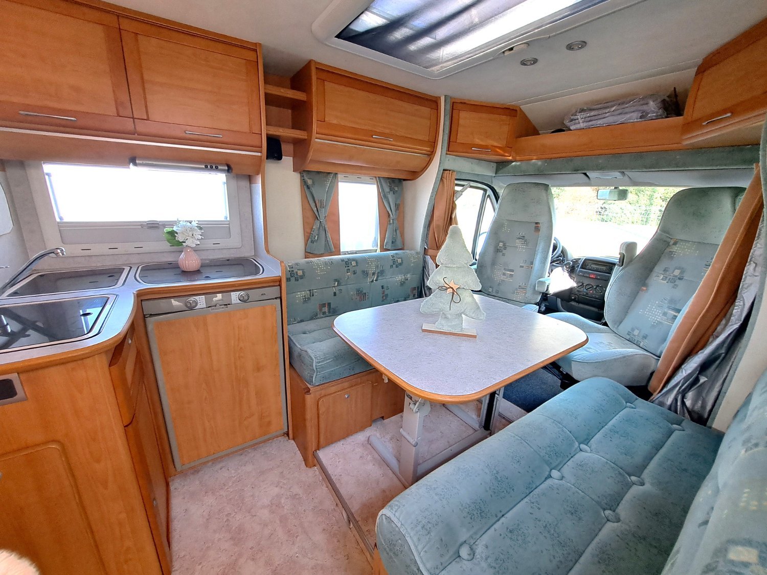 FLEURETTE Profilé 4 couchages, Diesel - 2006 - 76 058 km - 146 CV, Citroën Jumper 2.8 Power, boite de vitesse manuelle, 4 places CG : 26 900 € Dimension : L6.30 l2.23 H 2.65 Châssis AL-KO Centralisation cabine et cellule Clim porteur Cuisine 3 feux gaz Hotte Réfrigérateur 90l Dometic AES TV+Antenne satellite manuelle Combi chauffage/chauffe eau Truma Gaz + chauffage route Couchage : 4 - lit permanent arrière à la française - Lit dinette Salon face/face WC/ Douche Séparés Sièges cabines pivotants Store Extérieur Panneau solaire Caméra de recul Porte Vélos Soplair Stabilisateurs Révisé mécanique et cellule - Garantie commerciale Europeenne 12 mois