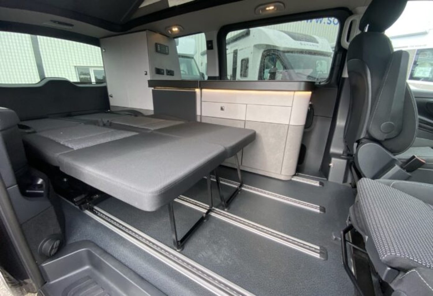 Start and Stop, allumage automatique des feux et essuie vitre avant, climatisation cabine automatique, double airbag, régulateur de vitesse, rétroviseurs rabattables électriques, deux portes latérales, sièges cabine rotatifs, BLOC CUISINE réchaud 2 feux gaz, évier avec réserve d’eau propre 10 l et eau usée 10 l et une prise externe de 230 V CEE. TOIT RELEVABLE comprenant un matelas tout confort.