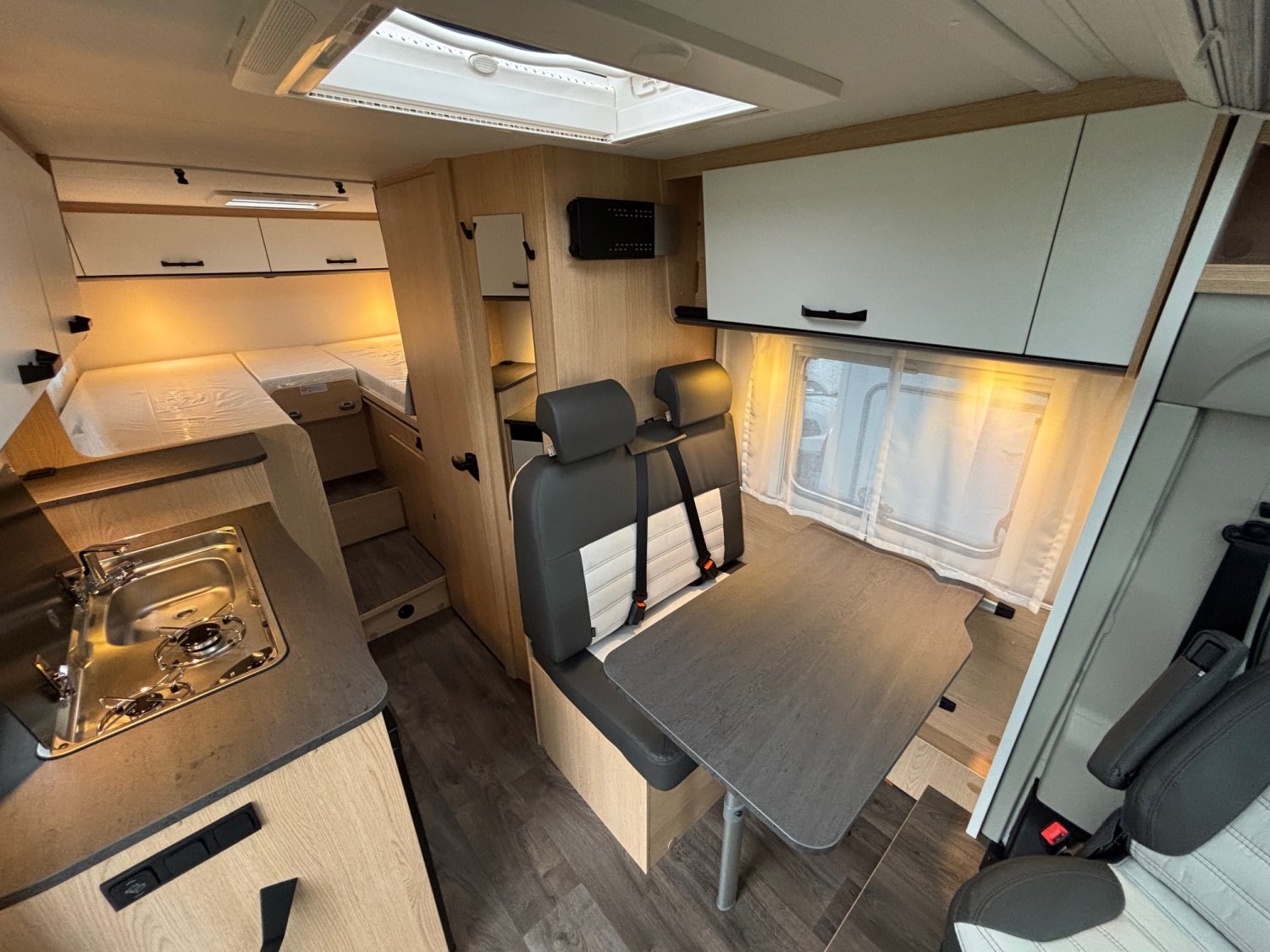 Stickage Adventure, Ambiance intérieure Adventure, Lanterneau panoramique de cabine, Portillon de service côté gauche, Modification des lits jumeaux en lit double, Pack One noir (store extérieur, porte-vélos 3 rails), Bandeau lumineux entre feux arrière, Porte cellule avec moustiquaire, Miroir avec patères, Lanterneau panoramique 70 x 50 cm, Lanterneau transparent 40 x 40 cm, Pare-chocs avant laqué, Jupe du pare-chocs avant de couleur noire, Feux antibrouillard, Jantes aluminium 16″