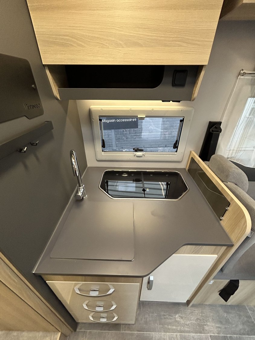 Energie : Gazole 60l – Eau propre = 100L – usée = 100L – réfrigérateur 145L