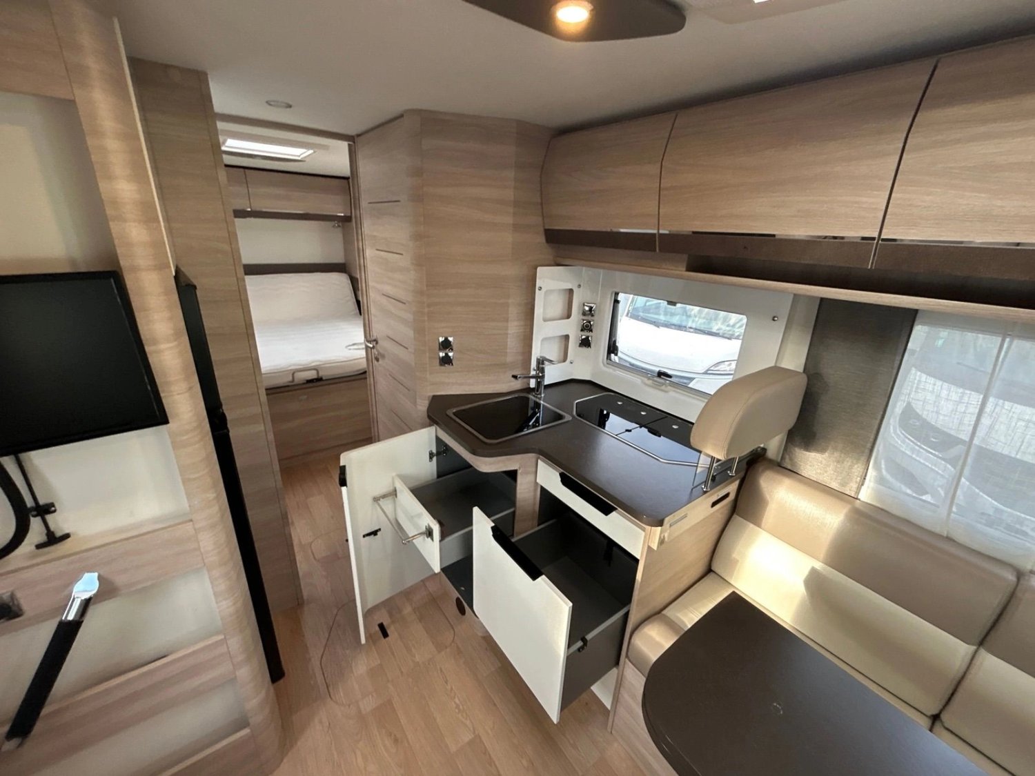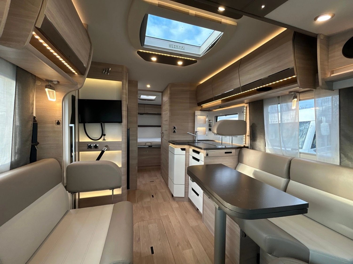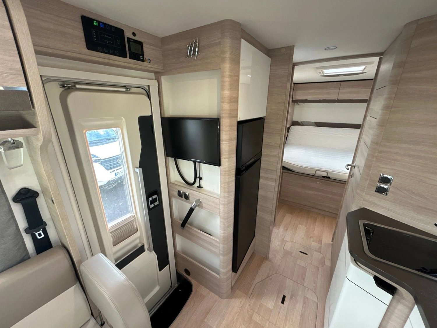 Pack Select : Caméra de recul, station multimédia Pioneer 7'' avec carplay, Régulateur de vitesse, anti-patinage, aide au démarrage en côte, réduction du roulis, aide à la descente, porte chauffeur à 2 points, inverseur de gaz duo control, rétroviseurs électriques dégivrants, stores occultants cabine, moustiquaire de porte cellule, 2ème clé à télécommande.