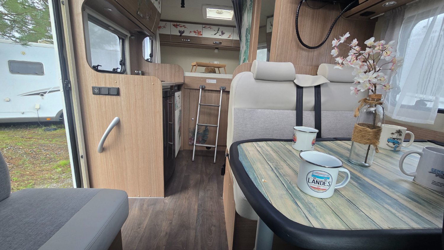 Découvrez ce camping-car Profilé CARADO de 5.98mètres, compact et parfaitement agencé, offrant confort et autonomie.