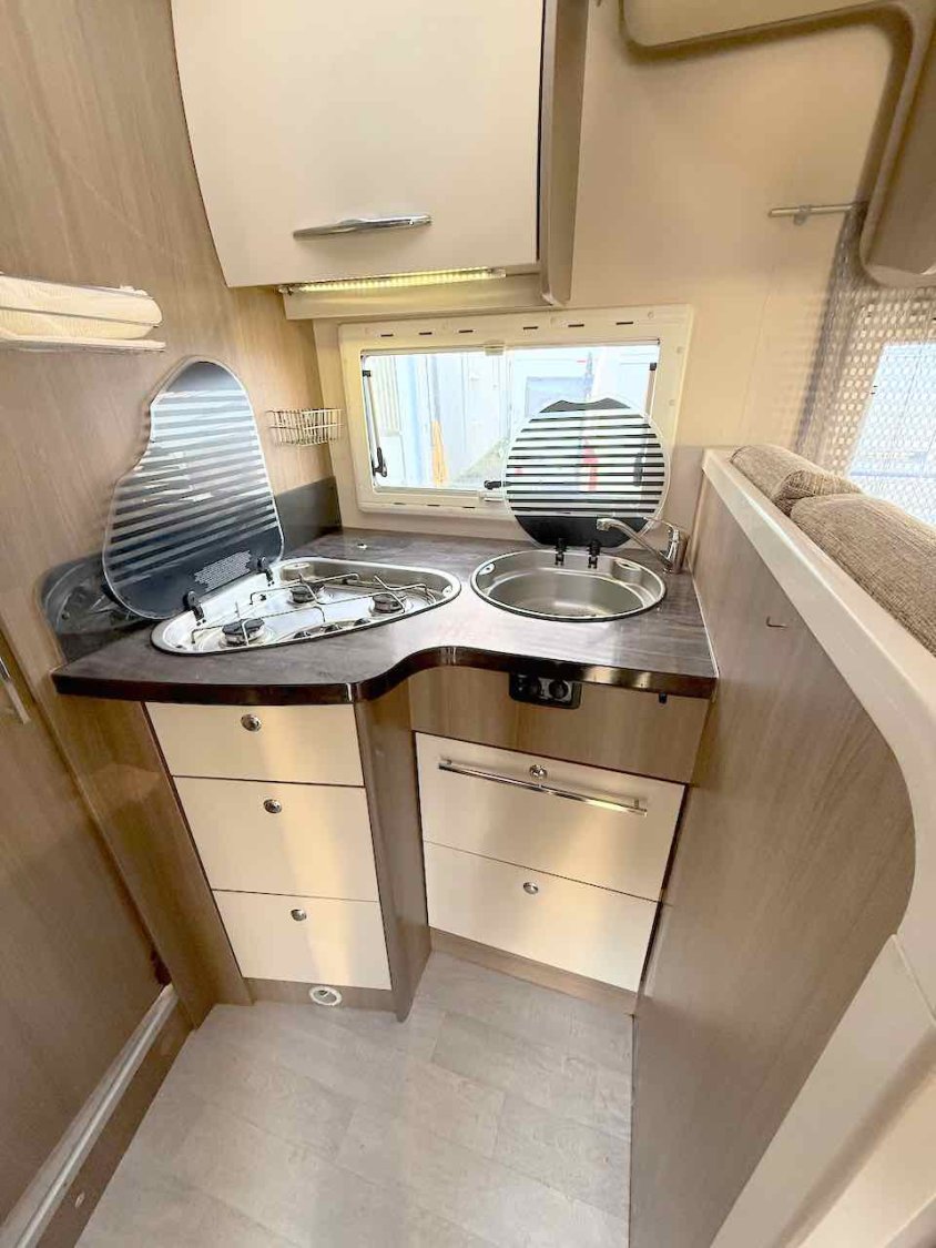Comme pour l’ensemble de nos véhicules, ce camping-car bénéficie d’un contrôle complet en atelier : vérification des installations eau, gaz et électricité, test d’étanchéité, contrôle du bon fonctionnement des équipements et remplacement de toutes les pièces défectueuses.