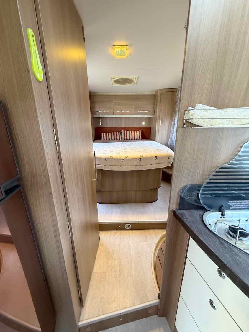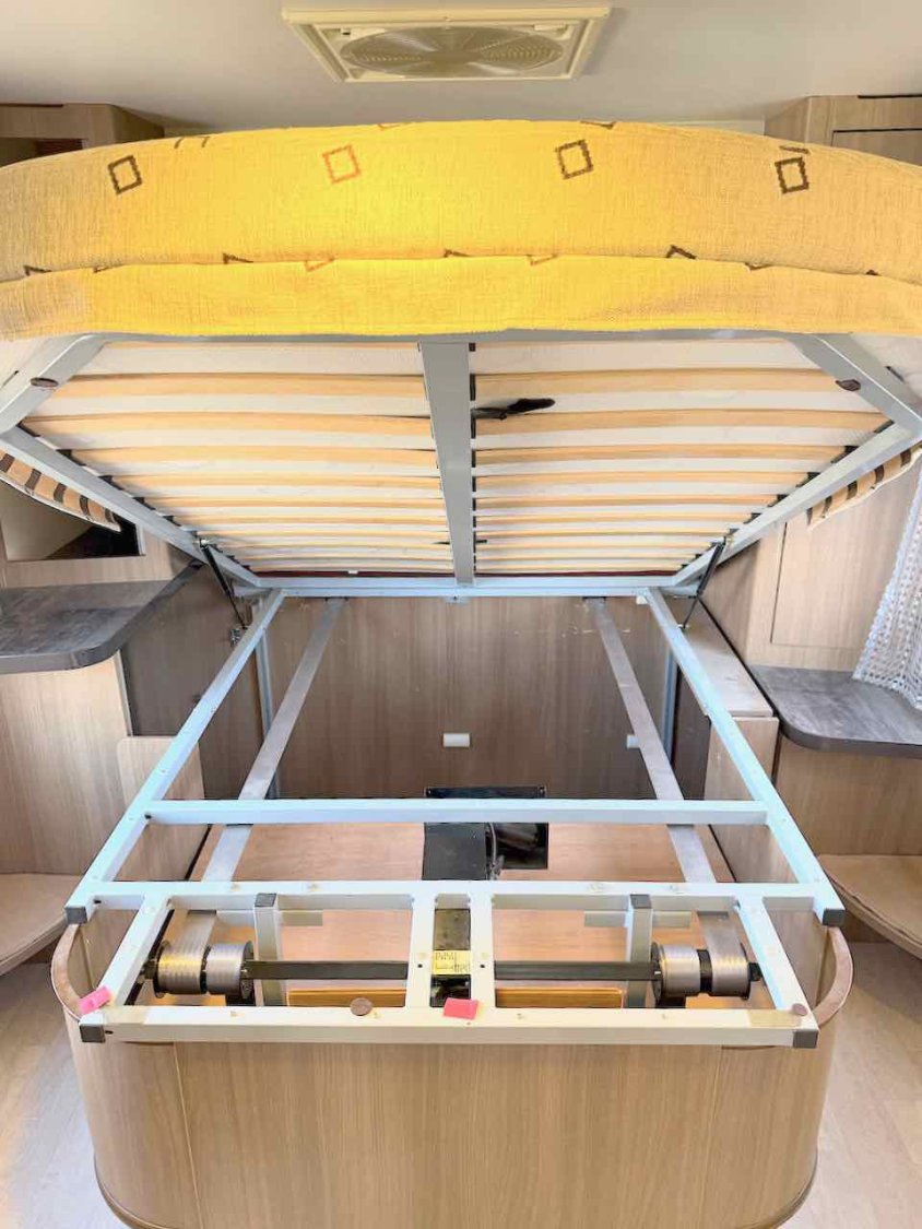 Il dispose à l’arrière d’un lit central permanent de 189 × 138 cm, réglable électriquement en hauteur afin d’optimiser l’accès à la grande soute.