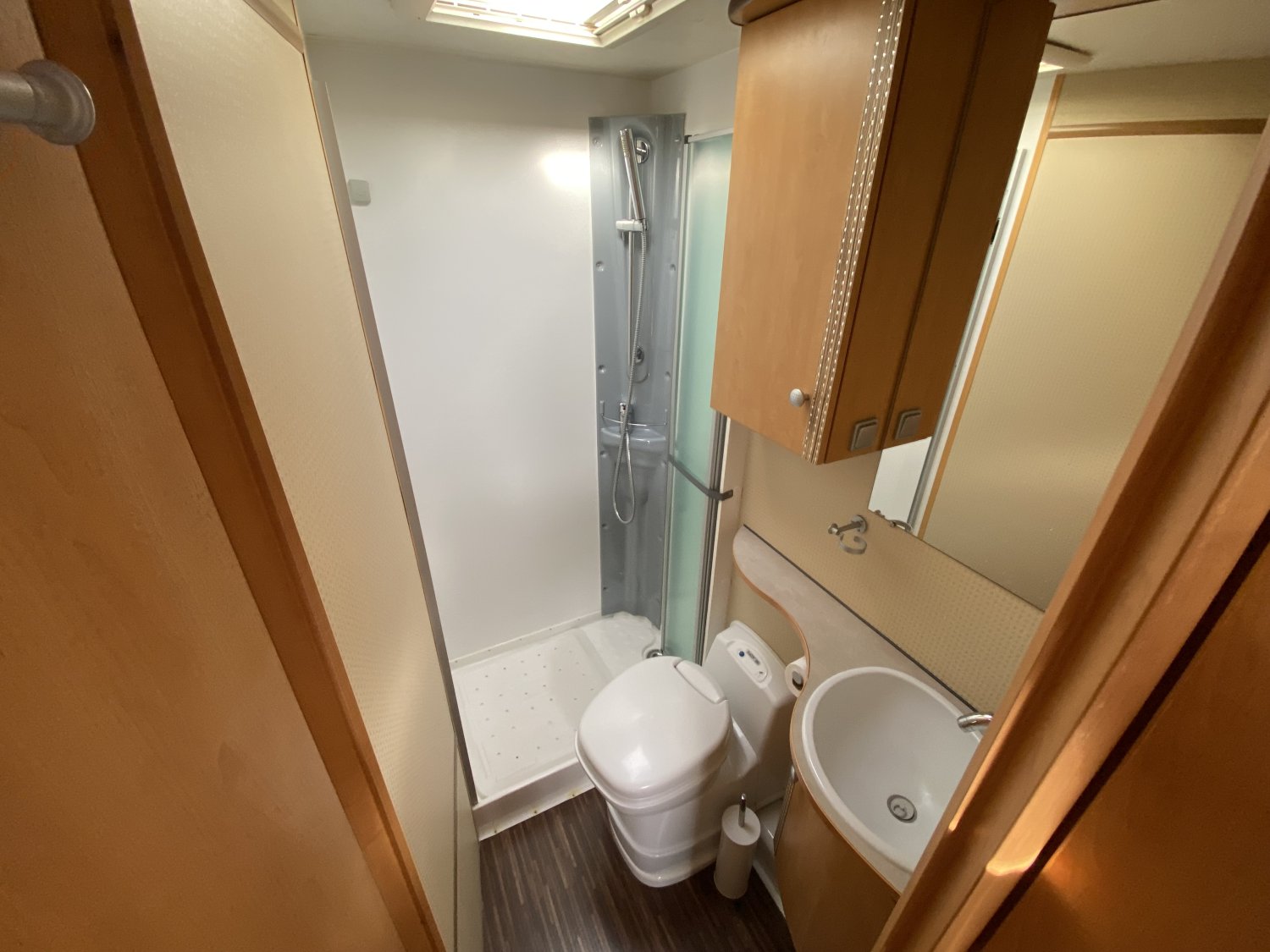 REFREGIRATEUR 149 LITRES, LIT DINETTE (210x120 cm), STORE EXTERIEUR, PANNEAU SOLAIRE, ANTENNE, PORTE VELOS, CHAUFFAGE GAZ, LIT PERMANENT ARRIERE (200x138 cm), FOUR A GAZ, DOUCHE SEPAREE