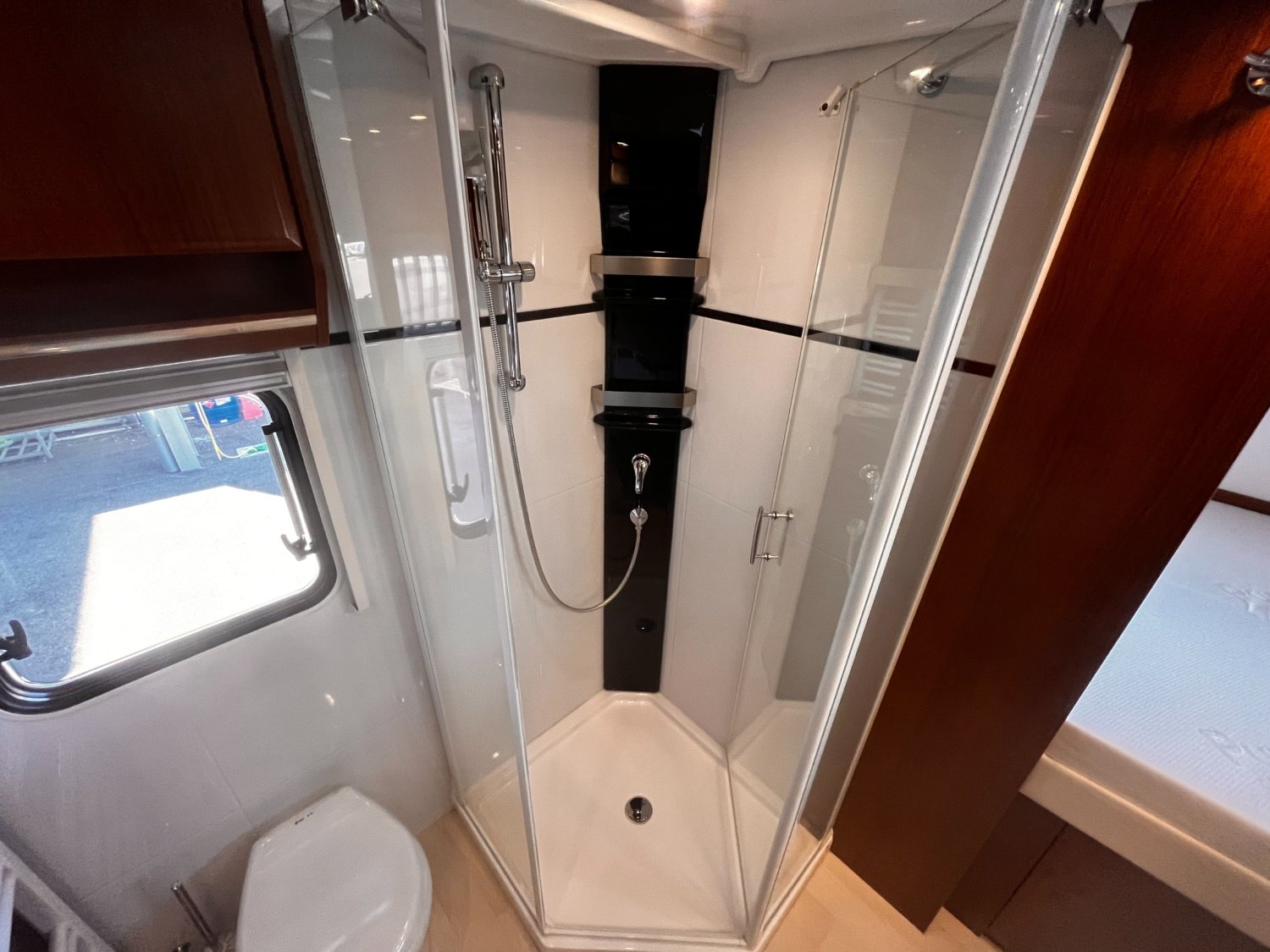 CUISINE :, PLAN DE TRAVAIL CUISINE RESINE NOIRE, LANTERNEAU VENTILE DANS LA CUISINE, REFRIGERATEUR AES 190 L, FOUR A GAZ COMBINE GRILL, SALLE D'EAU :, RADIATEUR SECHE SERVIETTE, GRANDE CABINE DOUCHE AVEC PAROIS VERRE ET BARRE D'ETENDAGE, WC NAUTIQUE, VERINS HYDRAULQUES, PACK ELECTRIQUE « POWER PLUS » :, COMBINE CHARGEUR 100 A / CONVERTISSEUR 2000 W, PHARES DE ROUTE HALOGENE, REGULATEUR ET LIMITEUR DE VITESSE, GROUPE ELECTROGENE ESSENCE TEC 29 2600 W, 3 PANNEAUX SOLAIRES, REGULATEUR SOLAIRE MPPT, GAZ / CHAUFFAGE :, MARCHEPIED INTERIEUR CHAUFFE ET ECLAIRE, STORE ELECTRIQUE 6 M ECLAIRAGE LED, DECO EXTERIEURE CARBONE, CHASSIS:, SUSPENSION PNEUMATIQUE AVANT / ARRIERE, CLIMATISATION CABINE, FREINS A DISQUES, PNEUMATIQUES 235/70R17.5 M+S, ENJOLIVEURS INOX 17'5, FREIN MOTEUR EVB, ABS, ASR, BLOCAGE DIFFFERENTIEL, CHAUFFAGE CENTRAL ALDE GAZ / 220 V / ECHANGEUR MOTEUR, CHAUFFE-EAU INTEGRE, ECHANGEUR THERMIQUE, ALARME GAZ, PRISE GAZ EXTERIEURE, CAPACITES :, GO : 180 L, EP : 350 L, EU : 250 L, WC : 250 LTS, FEUX DE CIRCULATION DIURNE, FEUX ARRIERES LED, CABINE :, CAMERA DE RECUL DOUBLE OPTIQUE, SIEGES DE CABINE A SUSPENSION PNEUMATIQUE, VOLANT AMOVIBLE, RETROVISEURS ET ESSUIE GLACES TYPE BUS PARE BRISE CHAUFFANT, CELLULE :, CLIMATISATION CELLULE, ALARME, HABILLAGE SOFT MURS ET PLAFOND, SEJOUR :, DOUBLE LANTERNEAU PANORAMIQUE SEJOUR, PHARES ANTIBROUILLARD, ANTENNE SAT AUTO TWIN - TV 32" + TV 24 ", BARRE DE SON TV SEJOUR, 2 DEMODULATEURS TNT SAT, TABLE ABAISSABLE AVEC COUSSIN POUR COUCHAGE D'APPOINT, TABLE EXTENSIBLE ET COULISSANTE, CHAMBRE :, 2 BATTERIES 210 AH ET GESTION COURANT SECTEUR, GAZ : GPL 120 LTS + PROPANE 2 X 13 KG, TV/ MULTIMEDIA :, DECO :, MOQUETTE SISAL MOKA, CUIR BITON NAIROBI MALIBU, LIT 160 X 200 GRAND CONFORT TETES DE LIT RELEVABLES, MATELAS INDEPENDANTS GRAND CONFORT, ENERGIE :