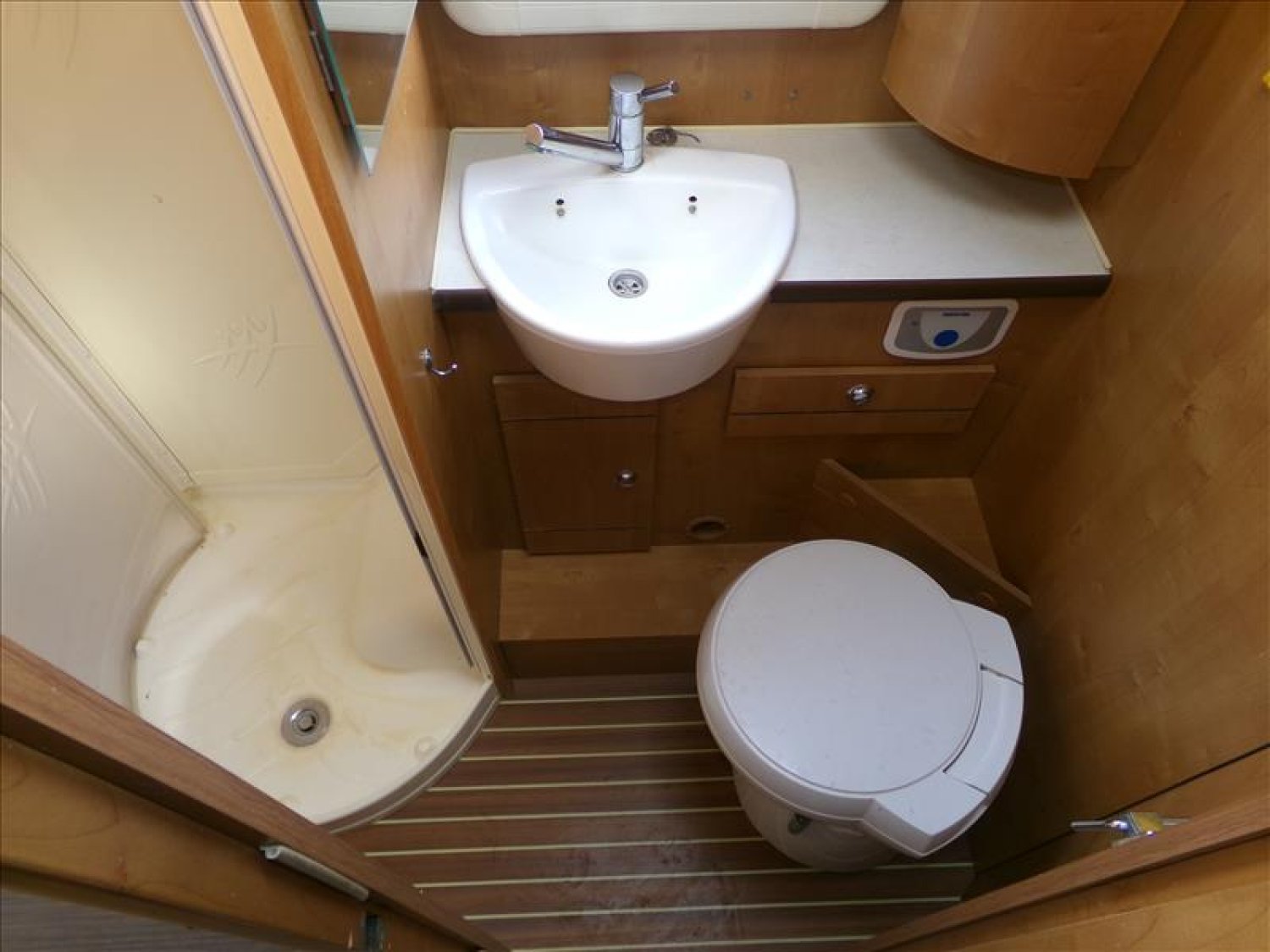 L'un des atouts majeurs de ce camping-car est sa douche spacieuse, offrant une expérience de détente incomparable après une journée d'exploration. Vous apprécierez également le store intégré, parfait pour créer une ambiance intime et protégée des regards indiscrets, que ce soit pour un dîner sous les étoiles ou une sieste à l'ombre.