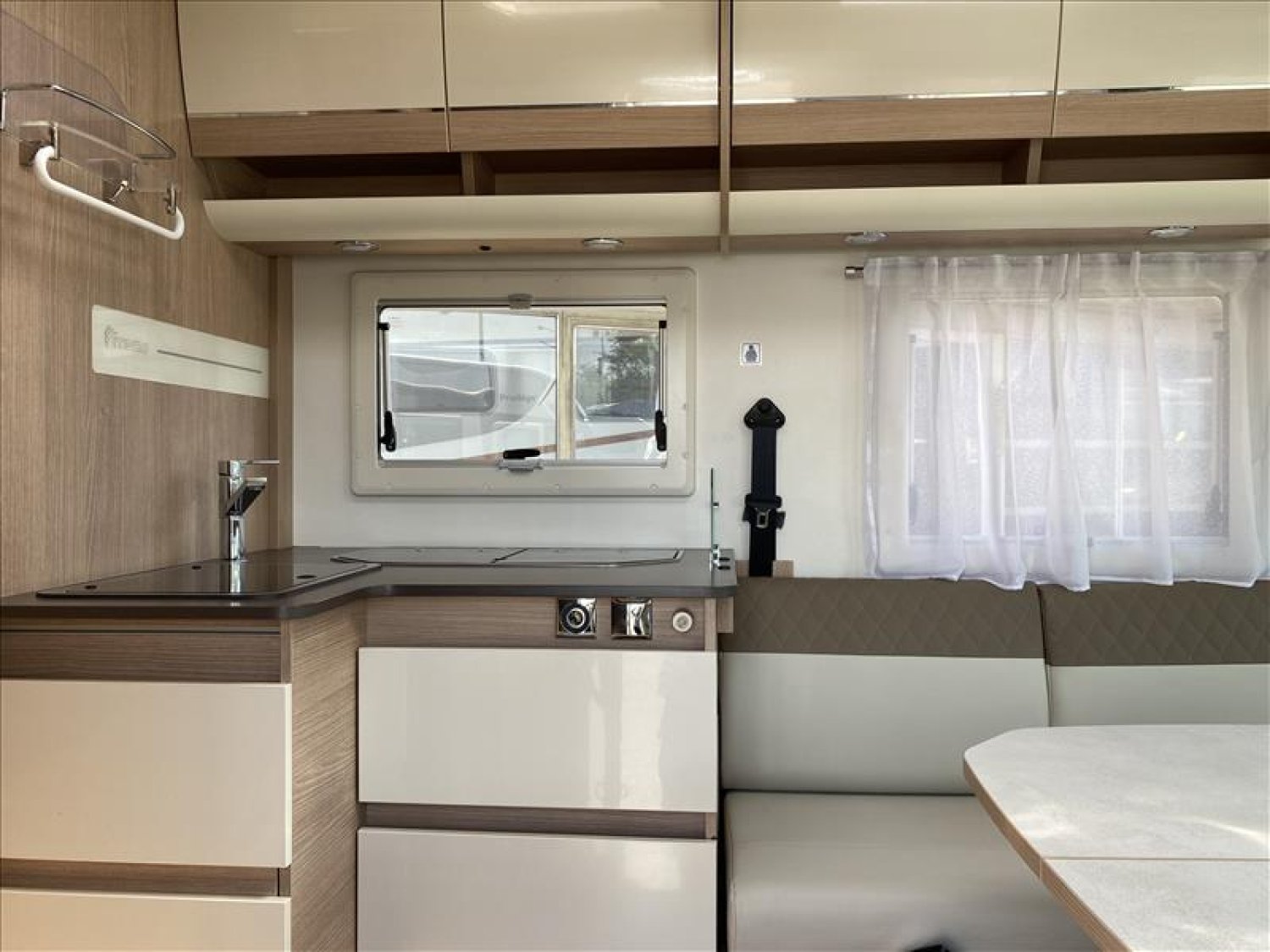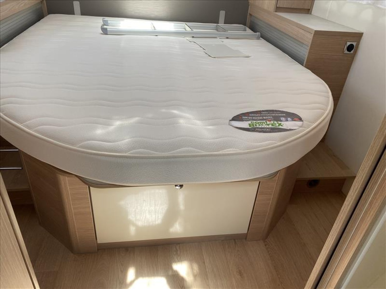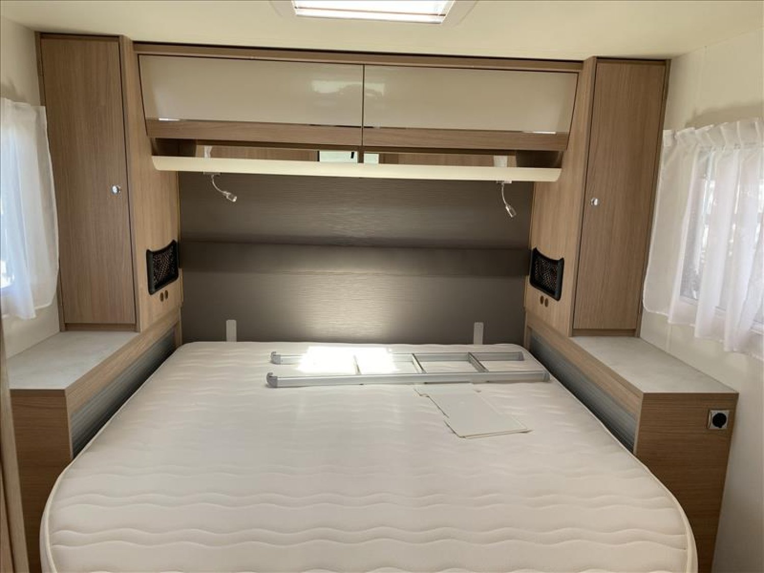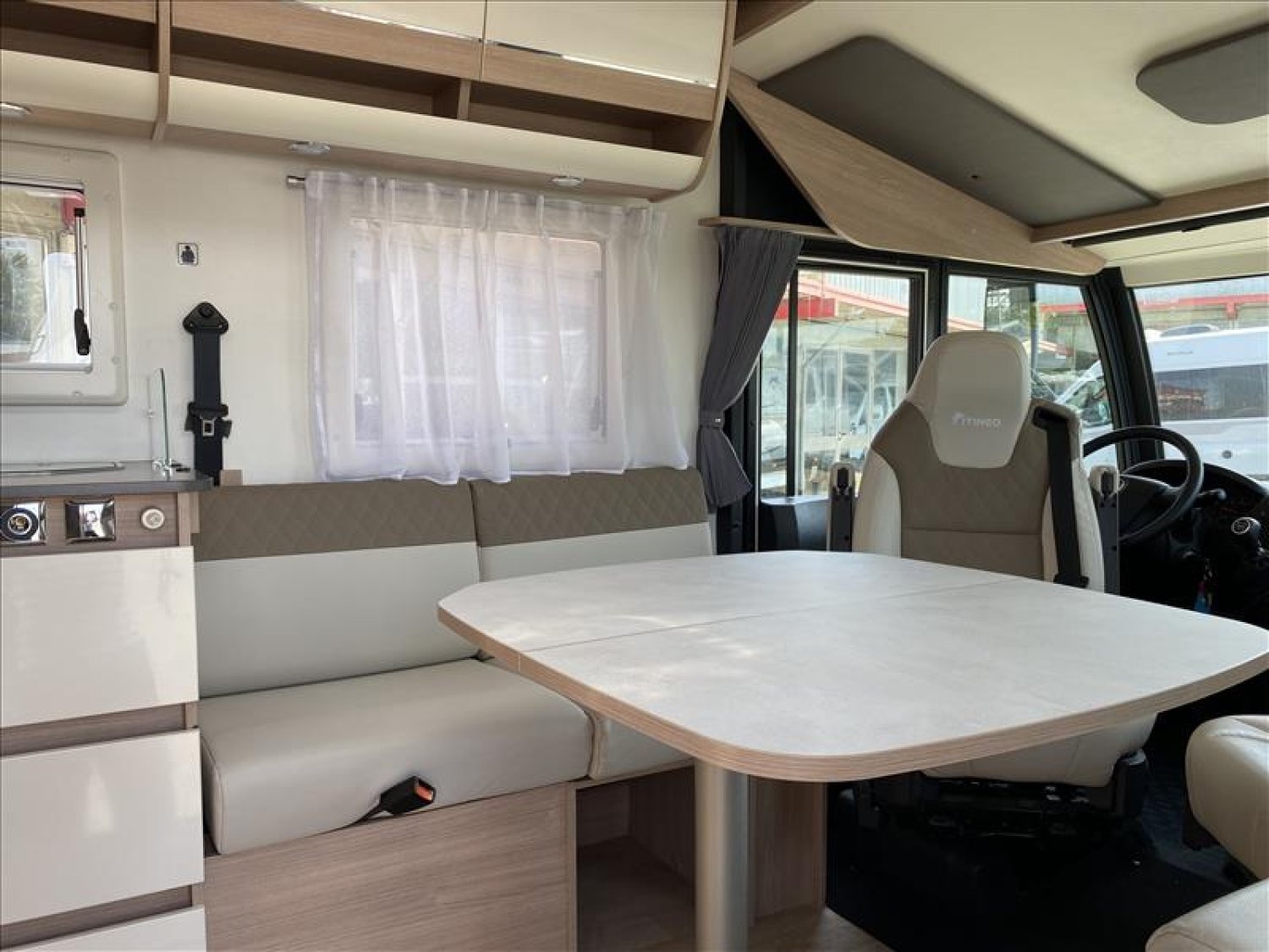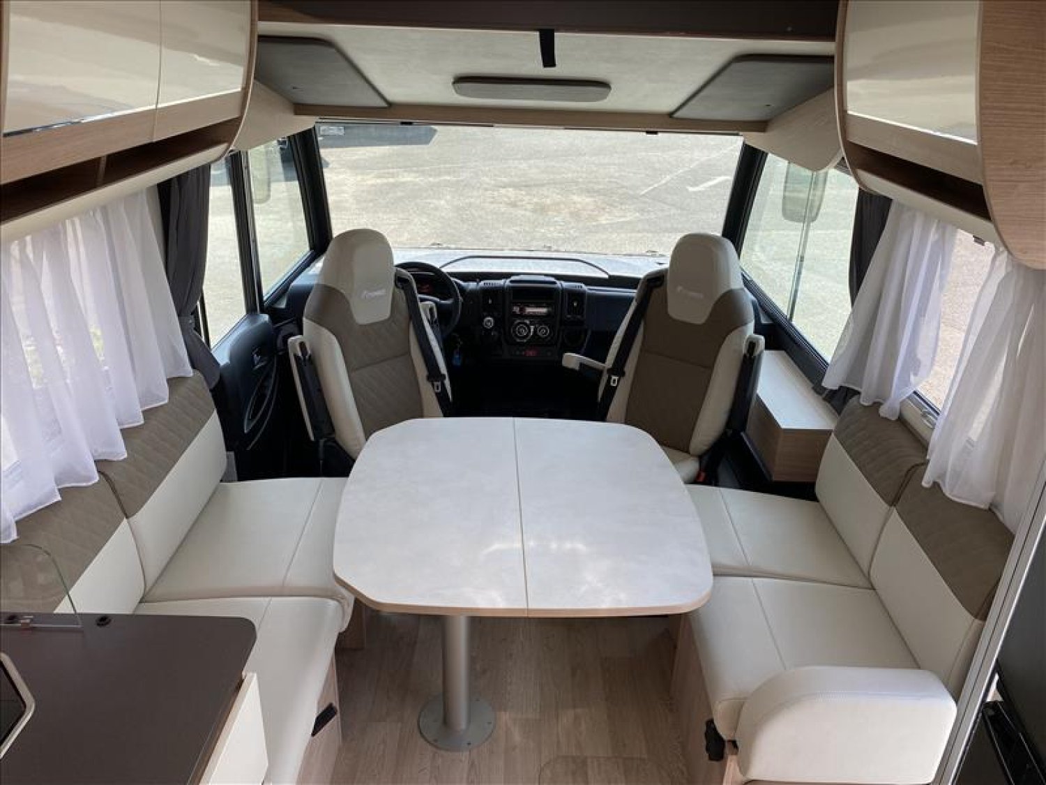 Pare-soleil mécanique à enrouleur, Plan de travail revêtu stratifié, Pompe à eau électrique, Pré-équipement douchette exterieur, Pré-équipement panneau solaire, Pré-équipement paroi avec inserts pour porte vélo, Rangement en pied de lit, Voilage sur baie, Panneau solaire, Rideau occultant tissu plissé tour de cabine, Réfrigérateur 150 L à sélection automatique des énergies, Airbag conducteur, Airbag passager, Cabinet de toilette avec douche séparée, Rétroviseurs extérieurs électriques type BUS, Sièges cabine « CAPTAIN CHAIR » réglables en hauteur, Table portefeuille, Tableau de contrôle, Transformateur - chargeur à découpage, Trappe accès maintenance Combiné chauffage-chauffe eau, Verrouillage centralisé des portes cellule et cabine, WC cuve céramique à cassette extractible (19 litres), Antenne sat automatique, Barre de penderie / Etendoir à linge, Caméra de recul, Combiné porte-épices / porte essuie-tout, Cuisine en L inversé, Disjoncteur Magnéto-thermique différentiel 30mA, Eclairage d'ambiance salon/cuisine/chambre, Emplacement TV avec pré-câblage - HDMI, Emplacement TV avec pré-câblage avec support TV, Freinage ABS, Housses de sièges cabine ambiance cellule, Lanterneaux panoramique salon, Combiné chauffage-chauffe eau TRUMA Combi 4, Store extérieur, Téléviseur, Lit central XXL : 160 x 195 cm, Meuble de rangement haut avec miroir, Mobilier avec porte de placard pavillon coloris blanc, Moustiquaire porte cellule, Obturateurs grilles du réfrigérateur (pour utilisation hiver, Lanterneaux transparents avec moustiquaire et occultation, Inverseur automatique TRUMA, Jauge de contrôle pour réservoirs eau propre et eaux usées, Kit de réparation de roue