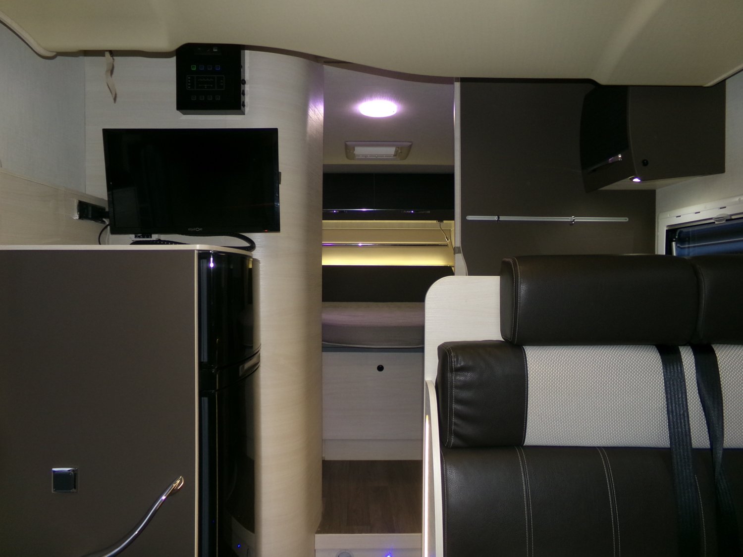 Réglages hauteur lit permanent sur garage : Easy bed, Technibox, Toit panoramique cabine ouvrant, Voie arrière élargie, Régulateur de vitesse et limiteur, Rétroviseurs dégivrants, réglables électriquement, Tableau de bord luxe avec inserts alu, DVD, Fenêtres double vitrage avec combiné stores moustiquaire, Réfrigérateur gaz 12V/230V : 167L AES, Éclairage intérieur 100 % LED, TELE, Éclairage extérieur, CAMERA DE RECUL, PANNEAU SOLAIRE, ATTELAGE, PORTE VELOS X3, Bac à douche double bonde, Roues 16", STORE EXTERIEUR, Housse sièges cabine assorties tissus ambiance cellule, IRP, Lanterneau avec moustiquaire, douche, Marche de la cellule isolée, Moustiquaire de porte, Pare-chocs peint, Pré disposition batterie cellule, CLIM CABINE, Caméra de recul avec écran sur rétroviseur, Chassis spécial camping-car, Chauffage combi diesel 4 kW, Chauffage utilisable en roulant, Climatisation cabine manuelle, Double airbag, ESP, Calandre brillante, ALARME, Radio avec commandes au volant, Feux antibrouillard, ANTENNE MANUELLE