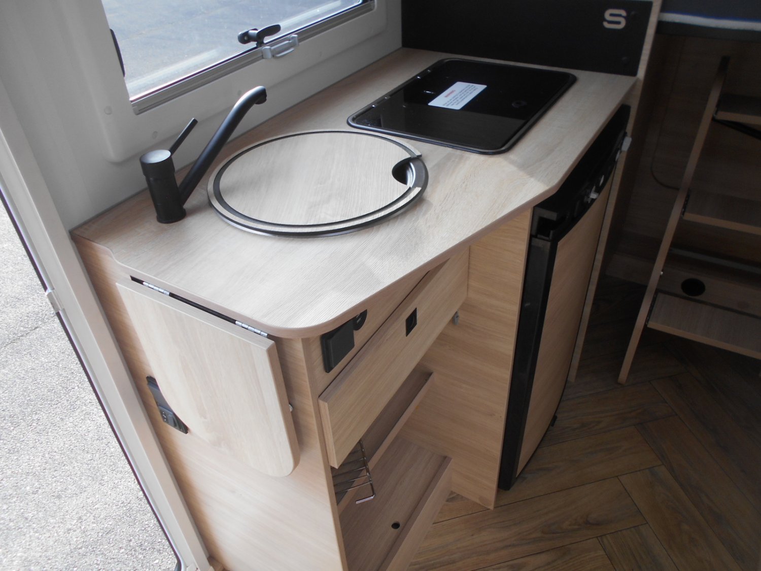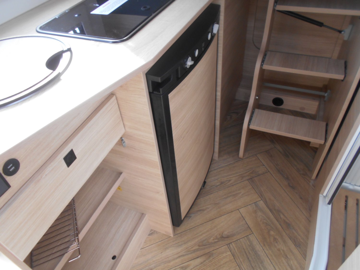 Rétroviseurs éléctriques, Kit pose 2ème batterie, Moustiquaire de porte, Panneau solaire, Roue de secours, Régulateur / limiteur de vitesse, éclairage extérieur porte d'entrée, Chauffage sur carburant utilisable en roulant, Store extérieur, Climatisation manuelle de cabine, Complément couchage dinette, Double airbag, ESP