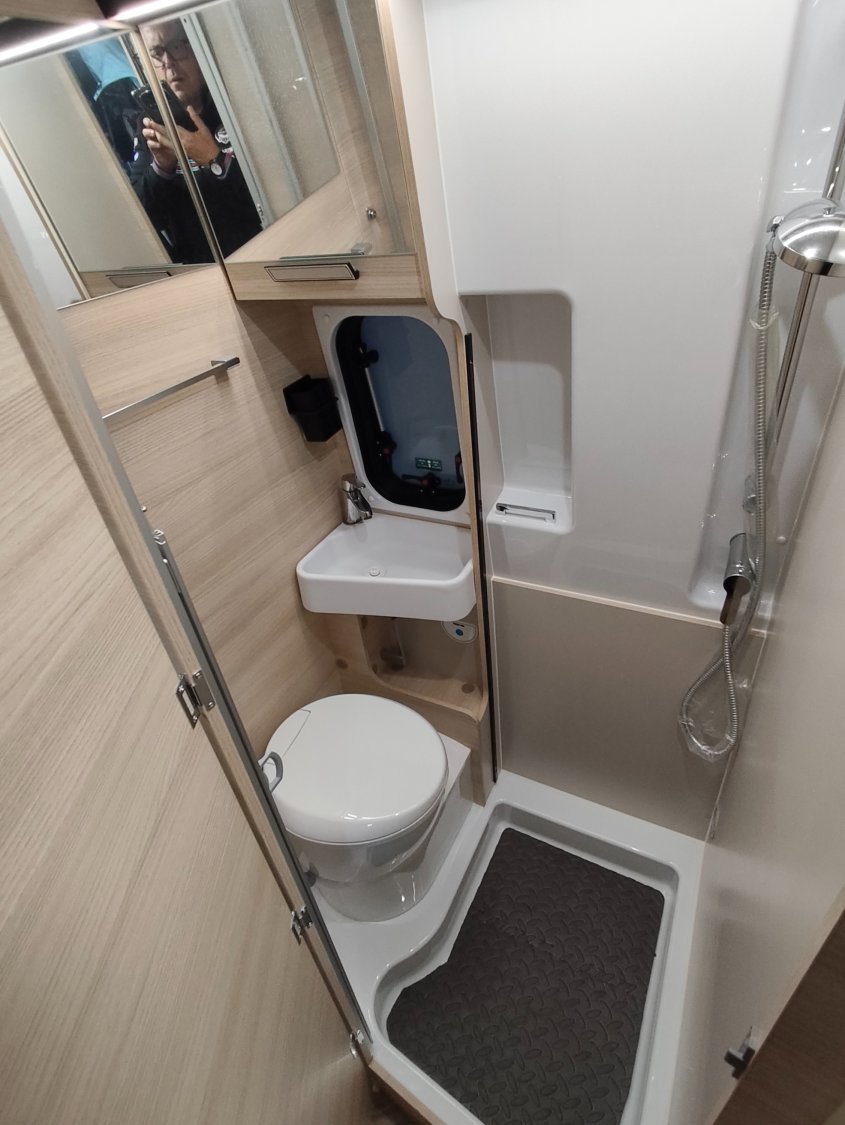 Rétroviseurs électriques dégivrants, Salle d’eau avec paroi repliable, Sièges de cabine pivotants réglables en hauteur, Support table extérieure, Traction +, Penderie, Baies arrières ouvrantes, Eco pack FIAT : Stop&Start, alternateur intelligent, Extension table dinette, Feux antibrouillards, Hill Descent control, Housses de siège cabine assorties à l’ambiance cellule, Climatisation manuelle de cabine, Jantes alliage bi-colore noire heavy 16'', Boite automatique 9 rapports, Calandre noire exclusive, Chauffage sur carburant utilisable en roulant, Lanterneau panoramique (ou double lanterneau), Double airbag