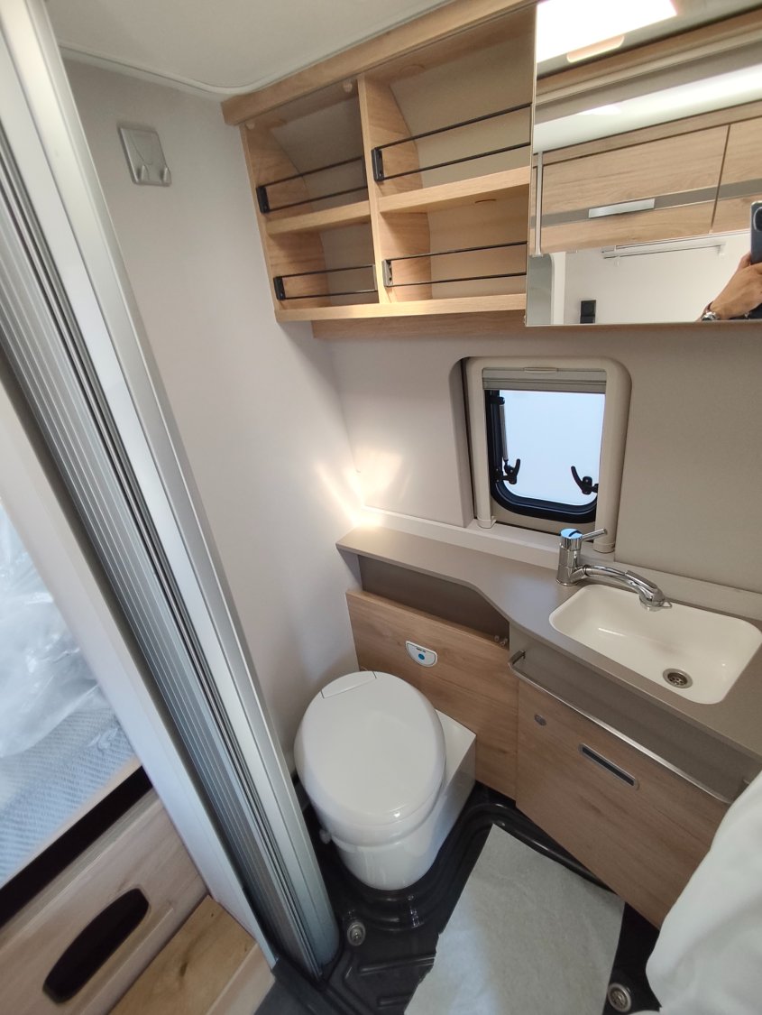 Ce Globetrail 590 C dispose d’un lit extensible et d’un cabinet de toilette à géométrie variable.
