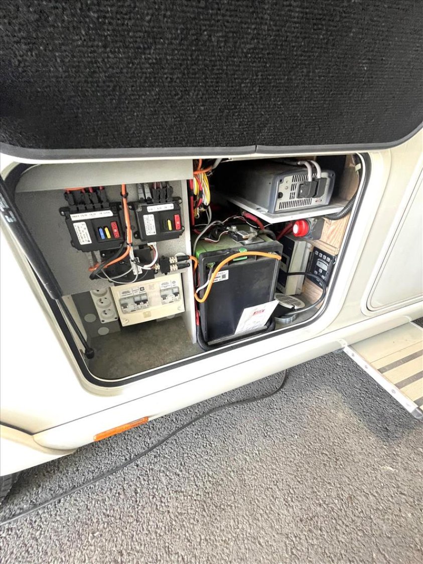 ANTENNE SAT., DEUX TELEVISIONS, STABILISATEUR EP, STORE EXTERIEUR, CAMERA DE RECUL, BATTERIE LITHIUM, CUIR