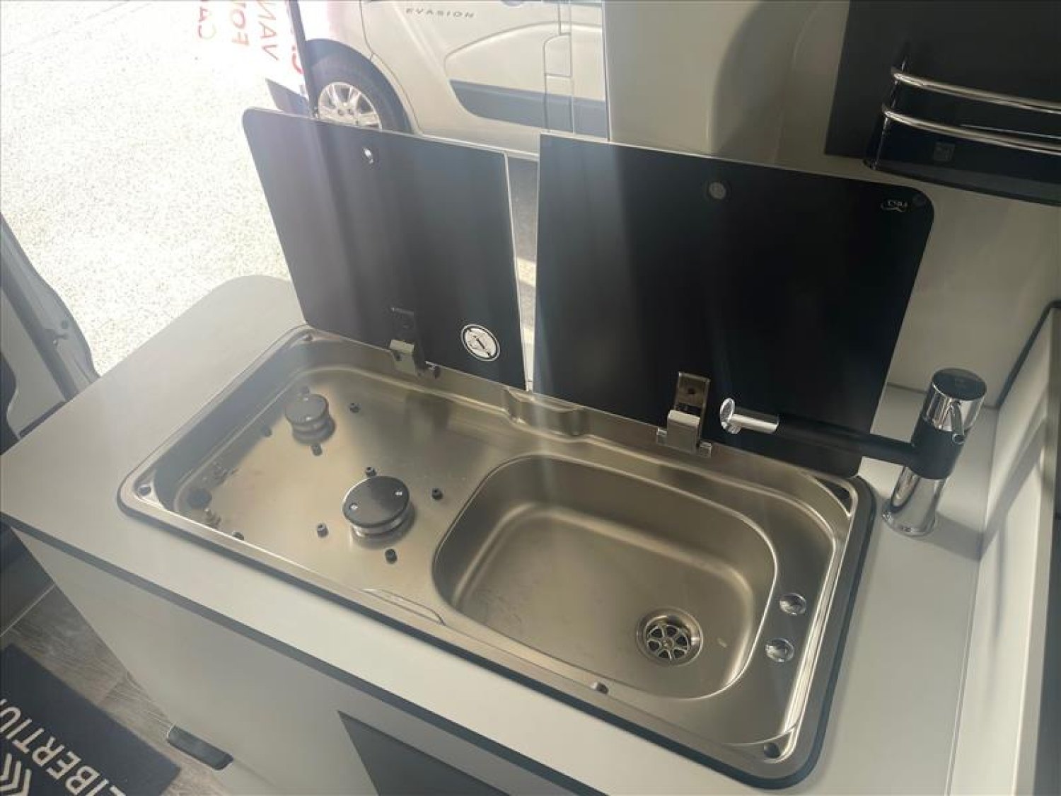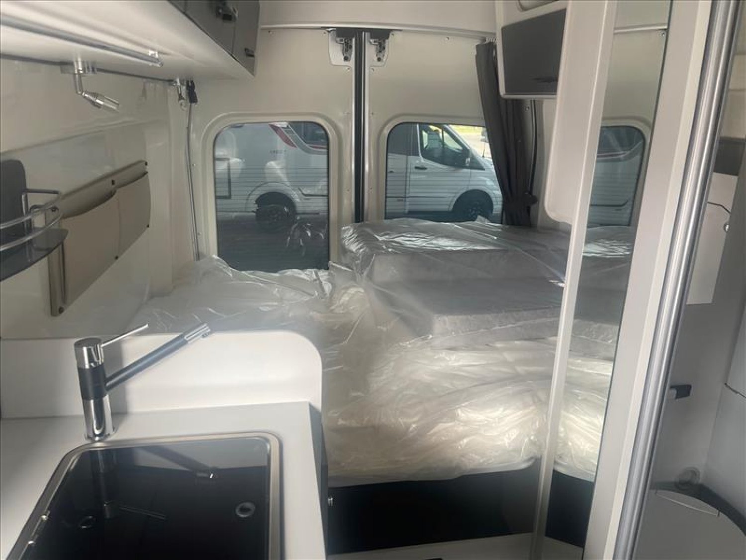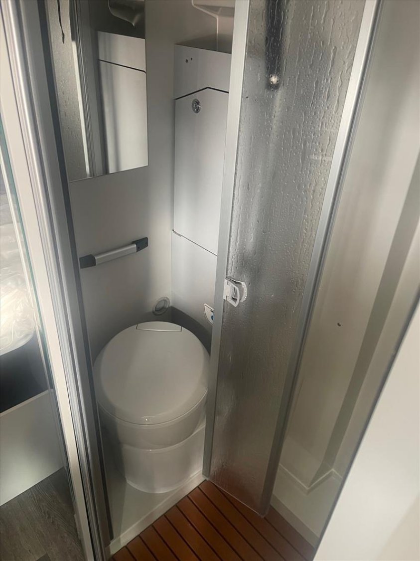 Régulateur de vitesse, Combiné chauffage/ chauffe-eau Truma D4 go avec kit altitud, Pare-chocs avant peint, Découpe de cabine, Air bags conducteur et passager, Anti brouillards, Douchette extérieure porte arrière, Rideaux isothermes arrière, Rétro-caméra de recul, Sonde de réchauffage du réservoir des eaux usées, ABS / ESP / TCS, Climatisation de cabine, Auto-radio avec commandes au volant, Batterie lithium 100 Ah, Caillebotis de douche