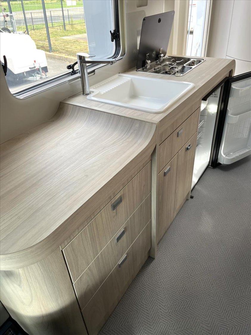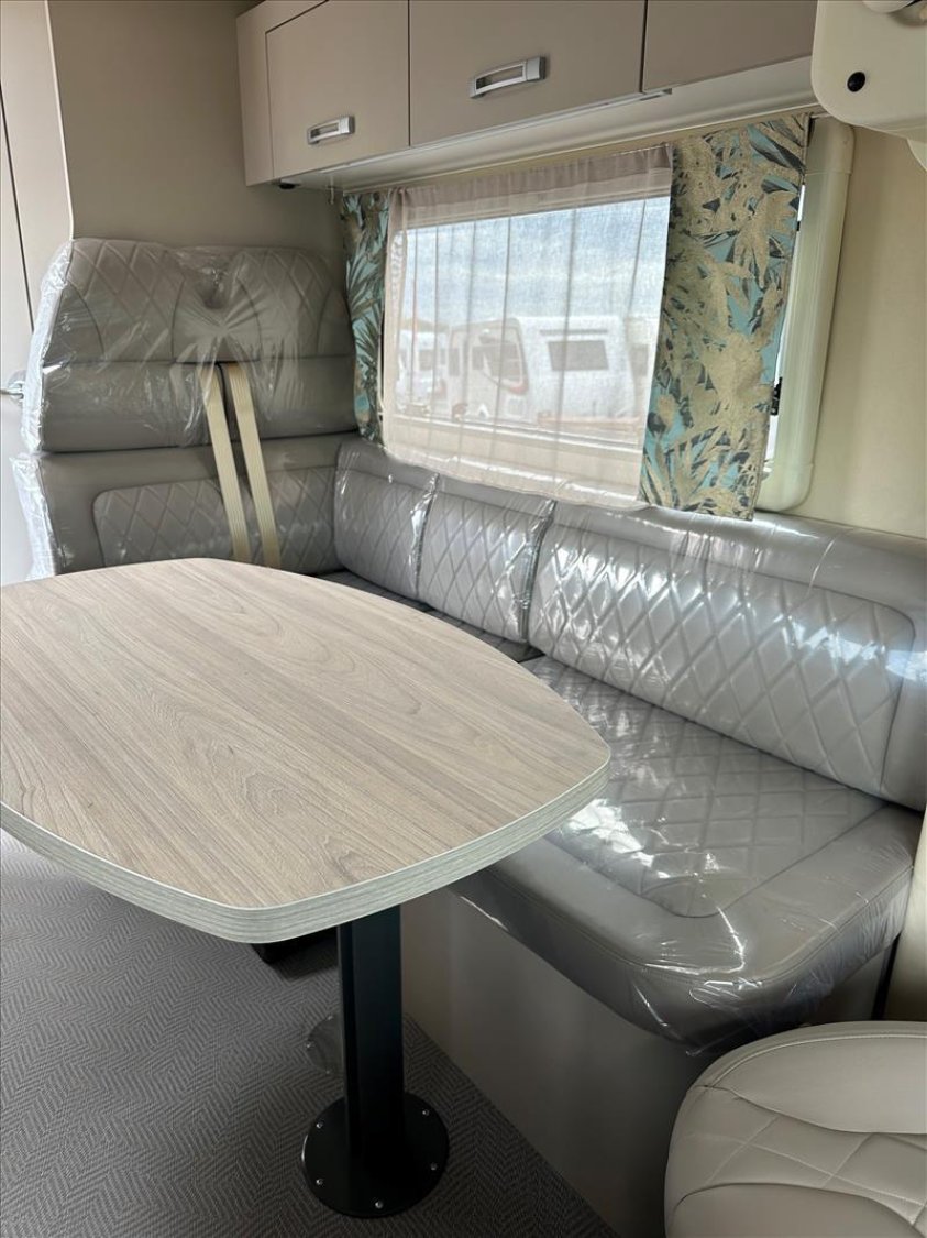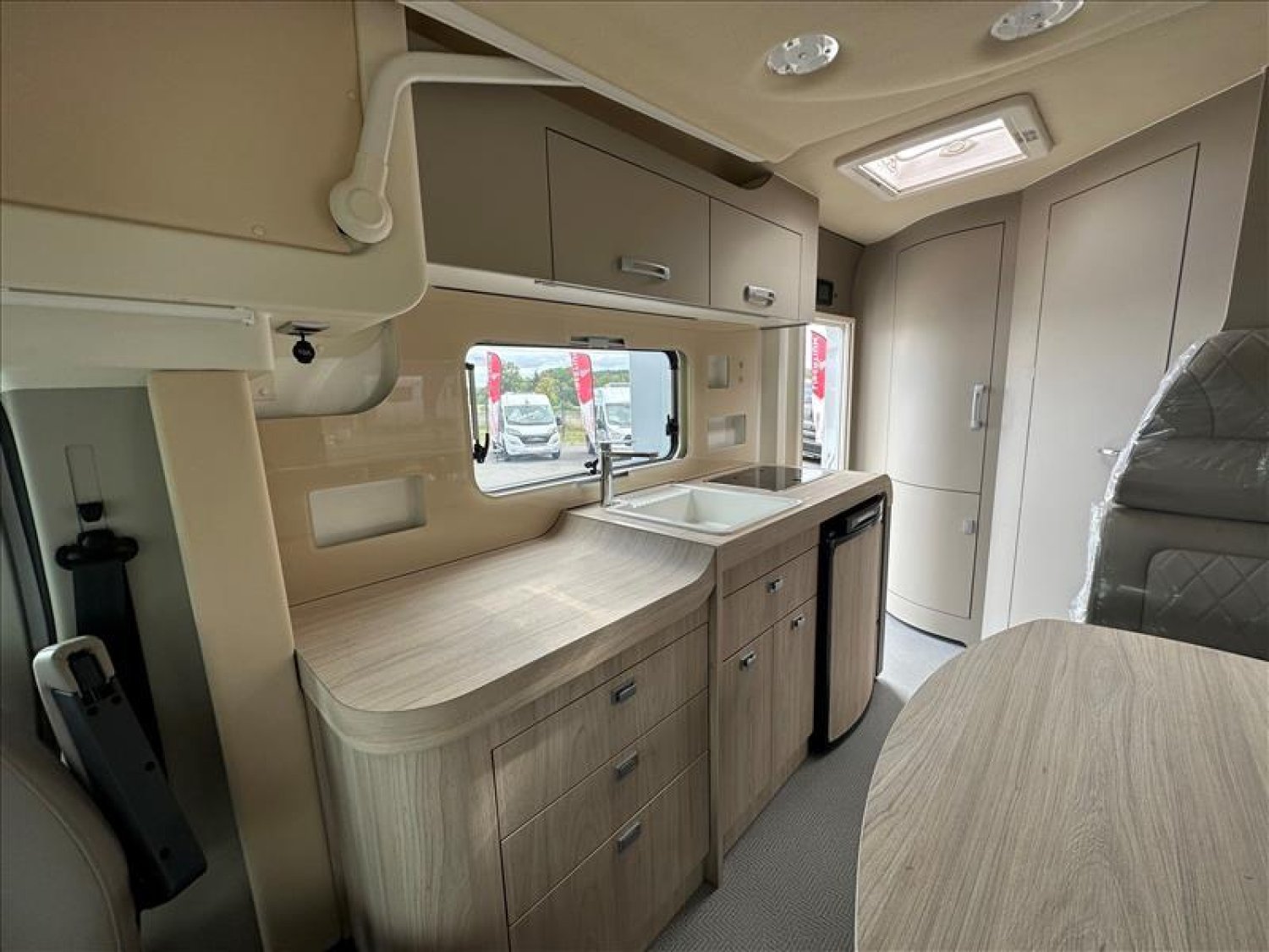 Vitres athermiques, Fix & Go, Floor Comfort System - Chauffage cellule par le sol, Housse de matelas entièrement amovible, Lanterneau MiniHeki Seitz avec occultants plissés et moustiq, Lit de pavillon longitudinal parental, Lève-vitres électrique, Mitigeur en laiton chromé, Occulants plissés et moustiquaire enroulable, Rideau cabine thermique, Réfrigérateur trivalent, Réservoirs isolés et chauffés, Spots à LED avec commande tactile, Table dînette ovale XL avec système coulissant, Toit panoramique Sky, Verrouillage centralisé avec télécommande multifonctions, Acoustic Comfort System, Baies Seitz S7 avec cadre élégant en aluminium, DRL (boîtier feux de jour