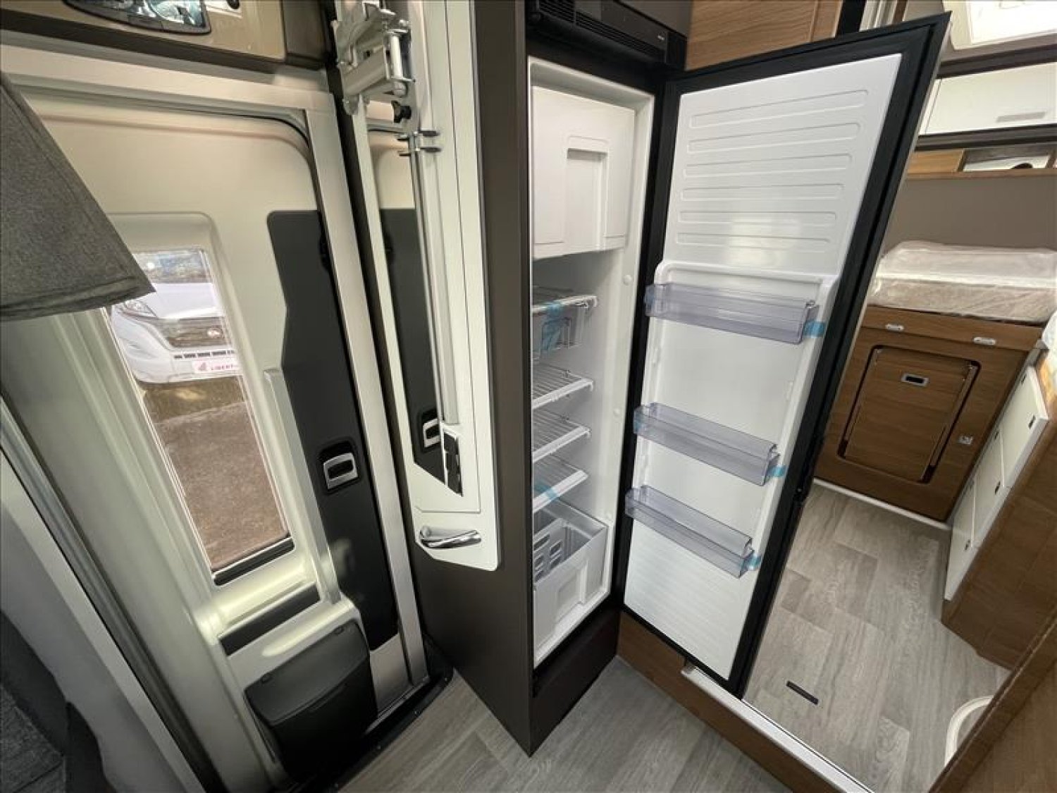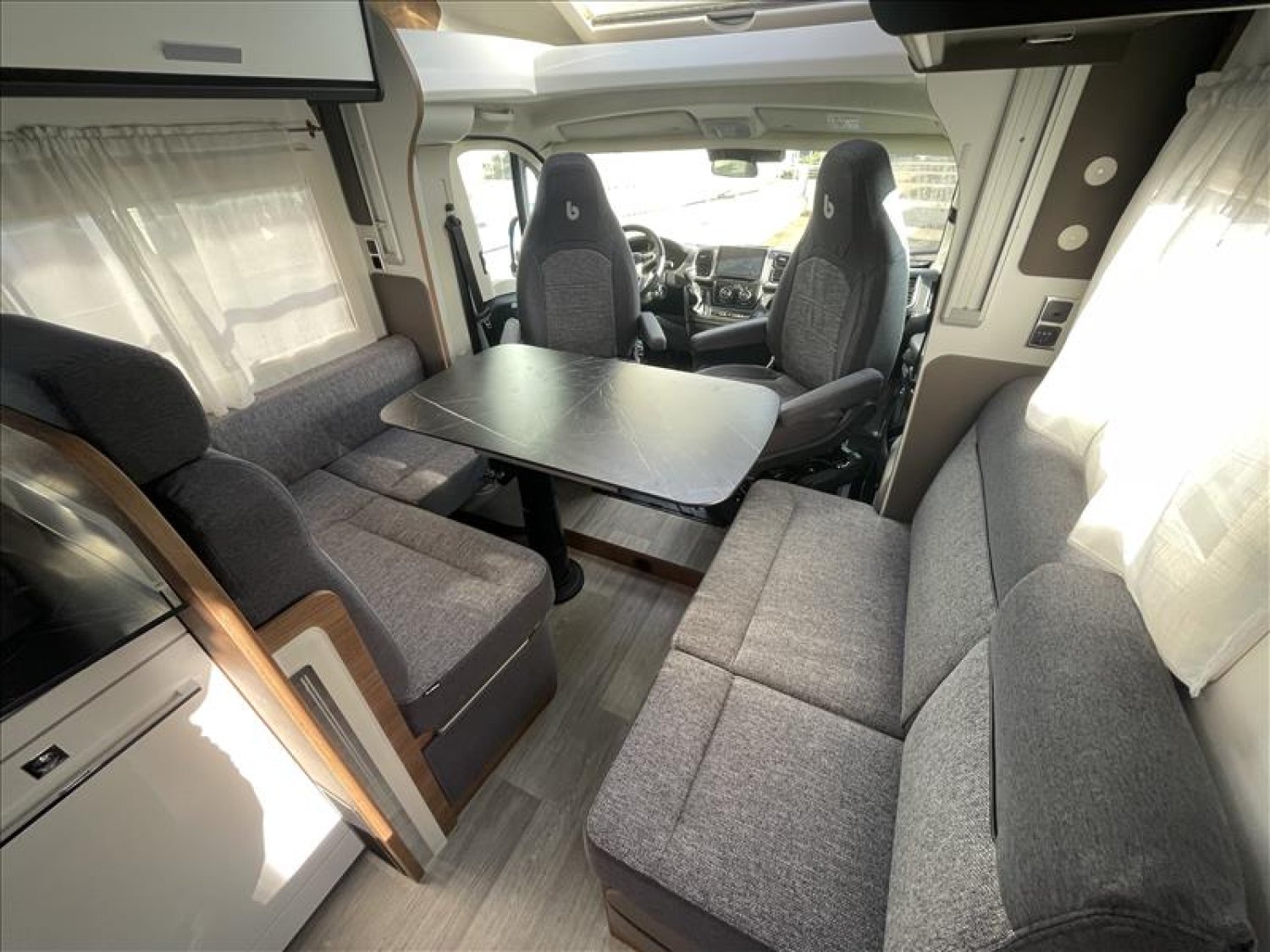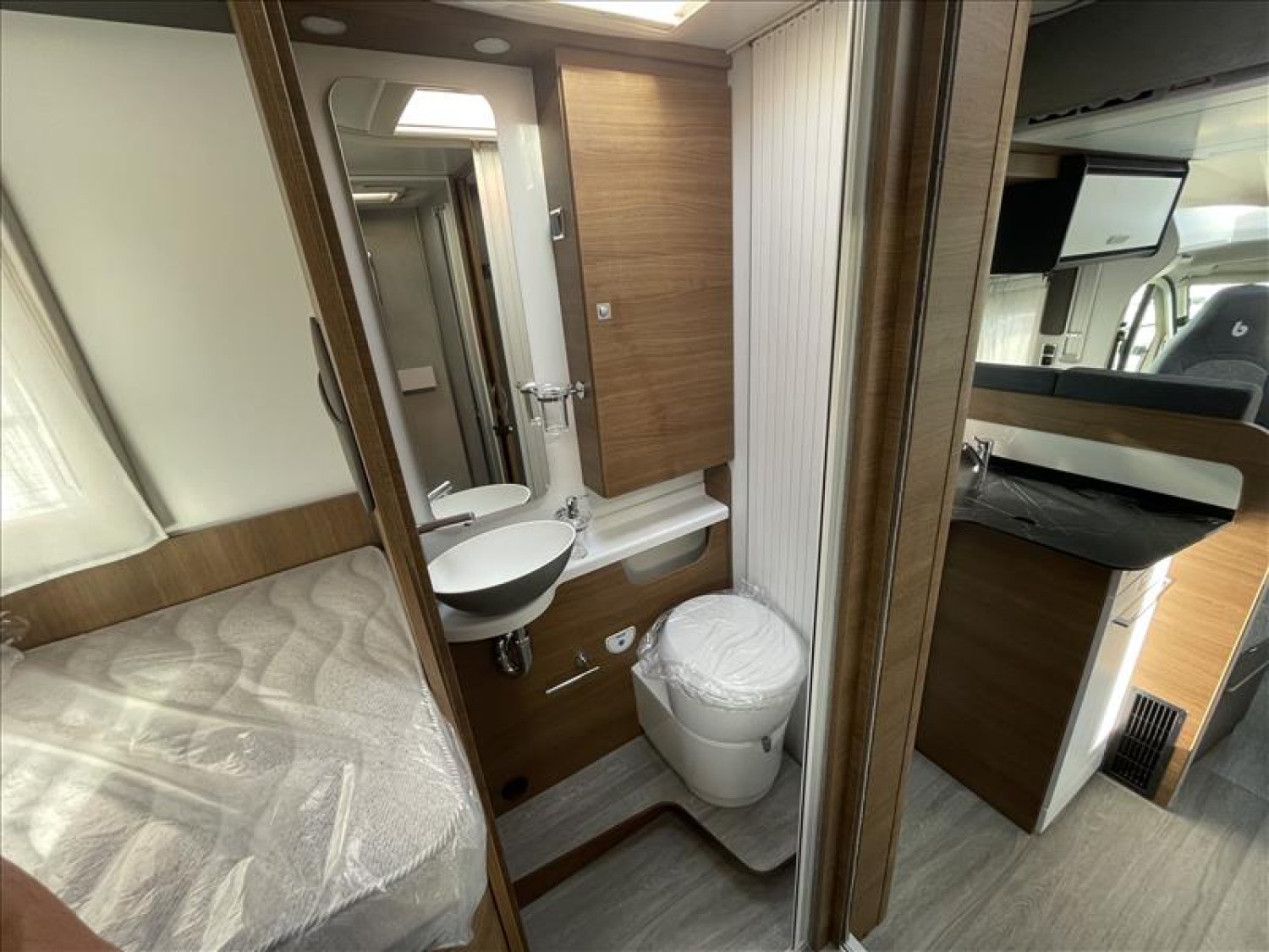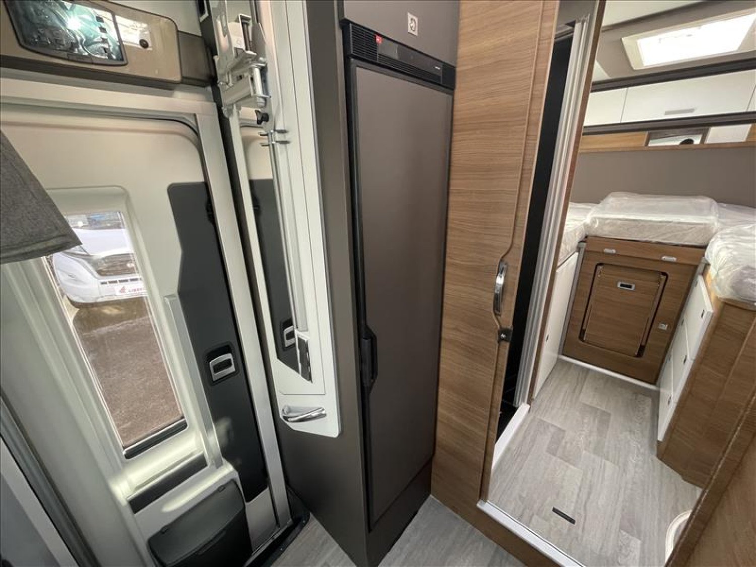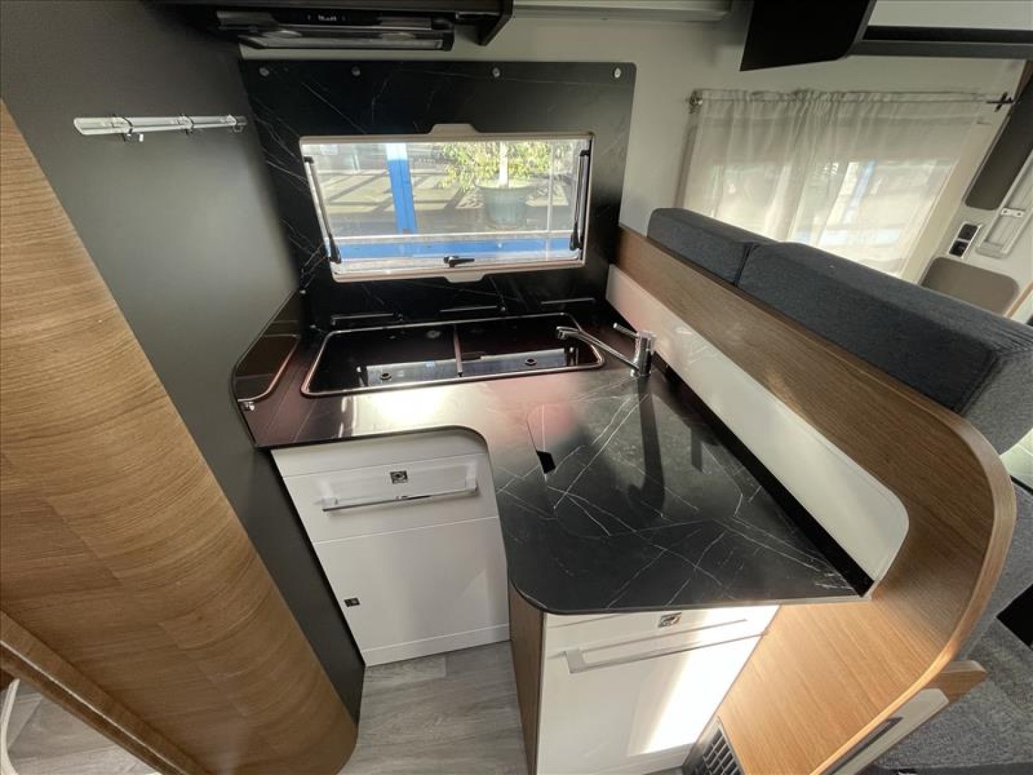 Toit ouvrant panoramique cabine (avec store et moustiquaire), PrIses 230 et 12 V dans le garage, Radars de recul, Carrosserie et dessous plancher polyester, Lit de pavillon électrique 2 places (max. 230 kg), Pare-chocs arrière avec feux LED, Casquette de profile 100% polyester renforcé, Prise USB dans la zone de couchage, Pré-installation 2ième batterie, Matelas de chambre à coucher haute densité, Hotte cuisine, Evier et réchaud 3 feux encastrés avec allumage électrique, Espace pour bouteilles de gaz : 2, Douche séparée avec porte-savon et porte serviette, Combine chauffage / chauffe-eau gaz - 4000 W