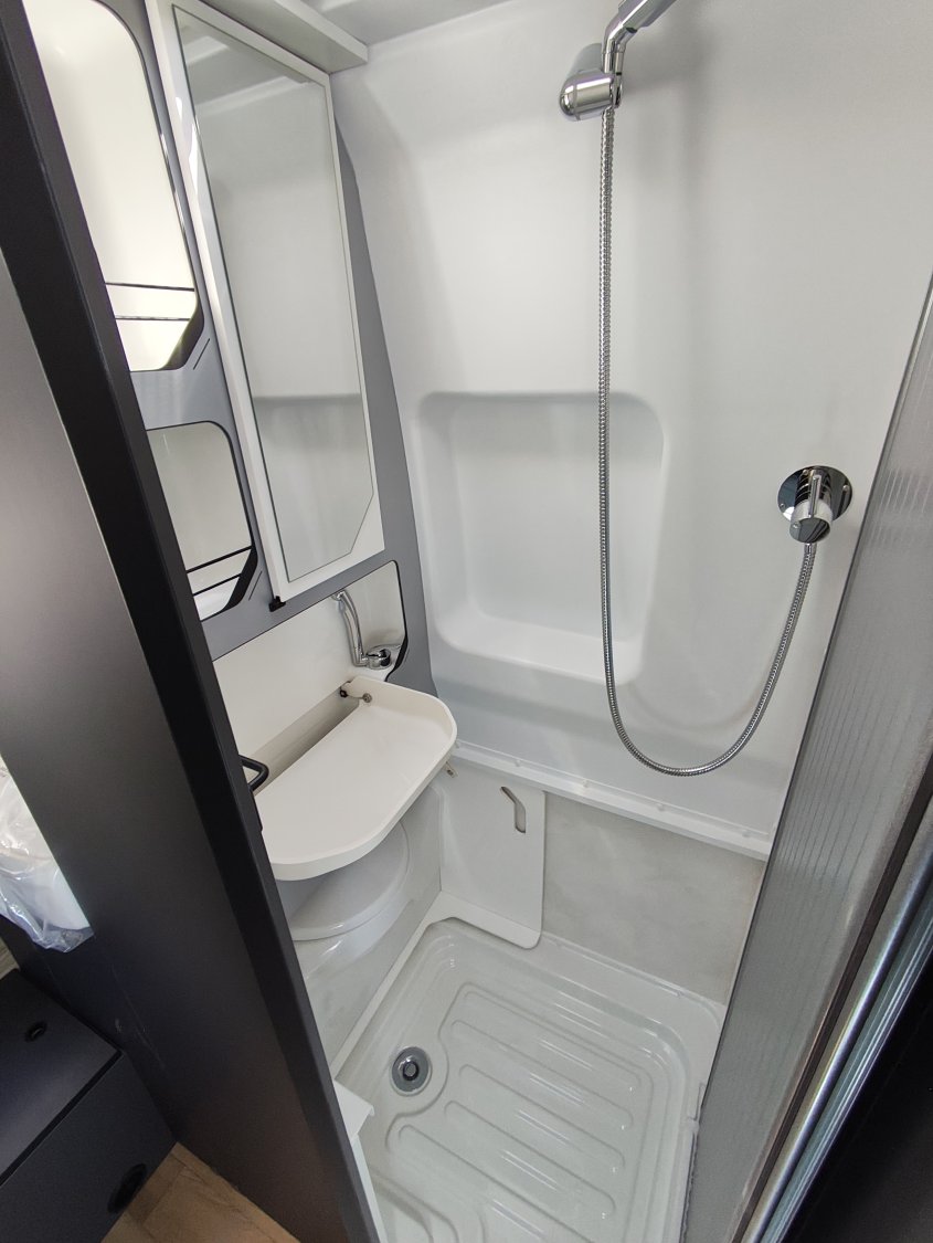 Niche dégagée, Calandre noire, PACK PARE-CHOC : pare-choc peint,plaque de protection, PACK 7"Pioneer, DAB, AppleCar/Android Auto, caméra de recul,, Haut-parleurs en cabine, 2 batteries AGM 95Ah et 1 panneau solaire 120W extraplat, Allumage automatique des feux et de l'essuie glace, Douchette eau froide/chaude dans la soute arrière, Occultations de la cabine coulissantes, pare-brise et baies, PACK JANTES : jantes alliage 16", volant cuir, aerateur gris, "skid plate" noir,phares antibrouillard, Sellerie Clay - simili blanc, Store banne, Laterales, PACK EPB : capteur de pression pneux, frein parking électriq