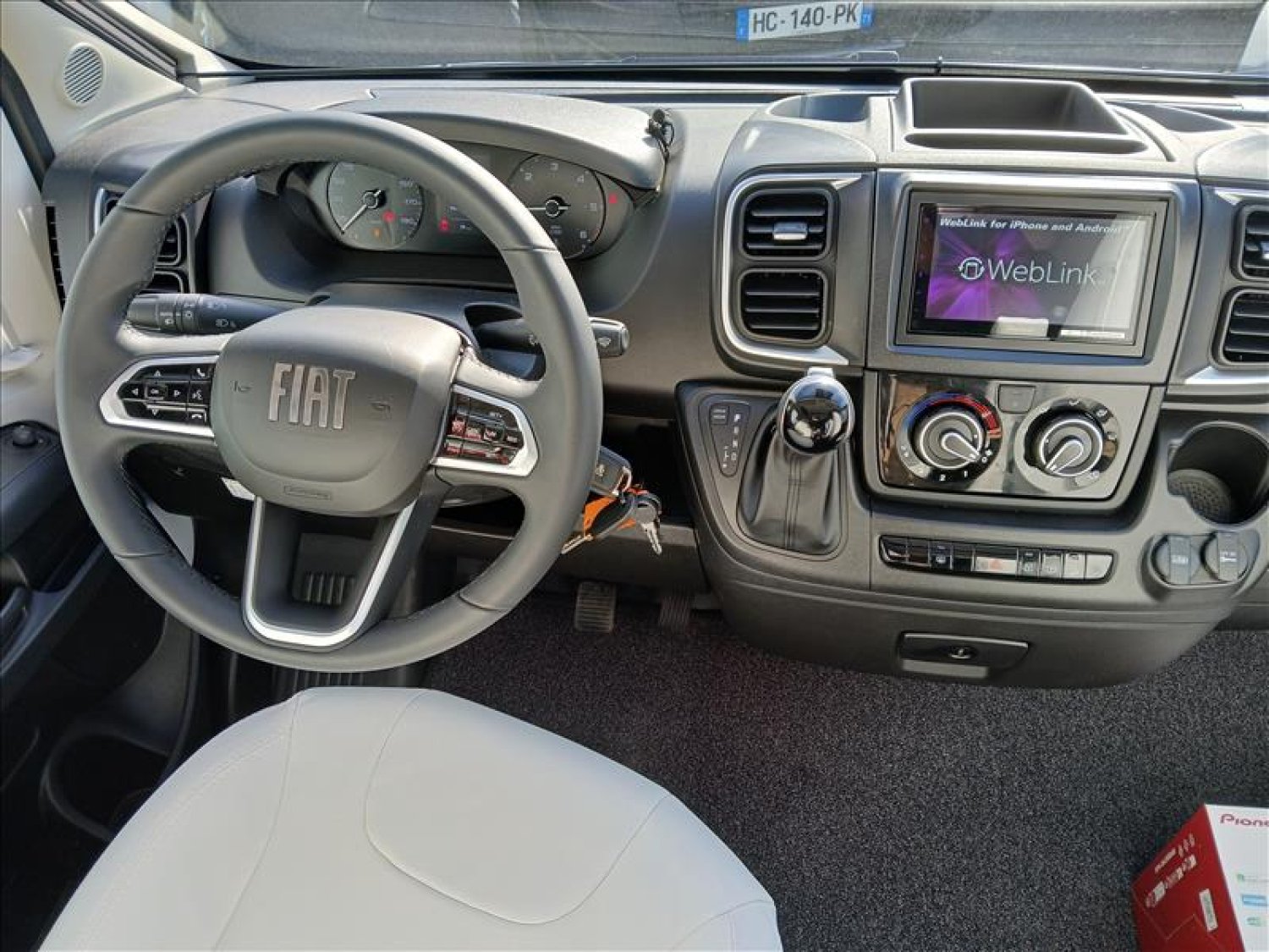 Haut -parleur en cabine, Pare-brise et baies latérales, Pare-choc peint, plaque de protection noir, Phares antibrouillard, Sellerie Clay simili blanc, Volant en cuir, Frein de parking électrique, Store banne, Douchette eau froide/chaude dans la soute arrière, Motorisation 2.2lL 140chBVA, Occultations de la cabine coulissantes, 2 batteries AGM 95Ah et 1 panneau solaire extraplat, Allumage automatique des feux et de l'essuie glace, Autoradio 7" pioneer? dab? applecar/Android auto, Aérateur gris alu, Jantes alliages 16", Caméra de recul, Capteur de pression des pneus