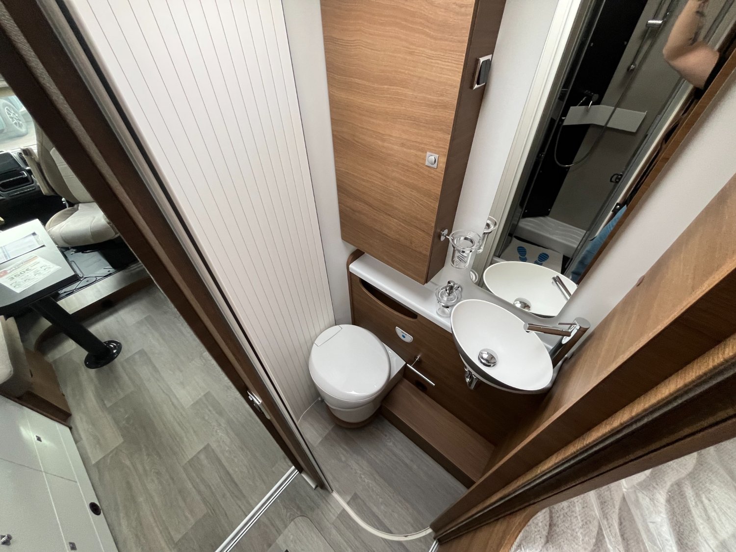 Le Benimar Mileo 268 2025 (˜ 7,38 m × 2,30 m × 2,89 m) repose sur un châssis Fiat Ducato 2.2 L 140 ch, manuel. Il accueille 4 places carte grise et 4 couchages, avec des lits jumeaux arrière pour un sommeil confortable. Il séduit par son grand salon face-à-face, son lit de pavillon électrique, sa cuisine complète, ainsi que des équipements pratiques comme le toit ouvrant panoramique, la porte cellule XL, un réfrigérateur à compression 150 L et des sièges Isofix. Optionnel, le Pack Delivery ajoute un panneau solaire 200 W, un éclairage LED extérieur et des rideaux occultants.