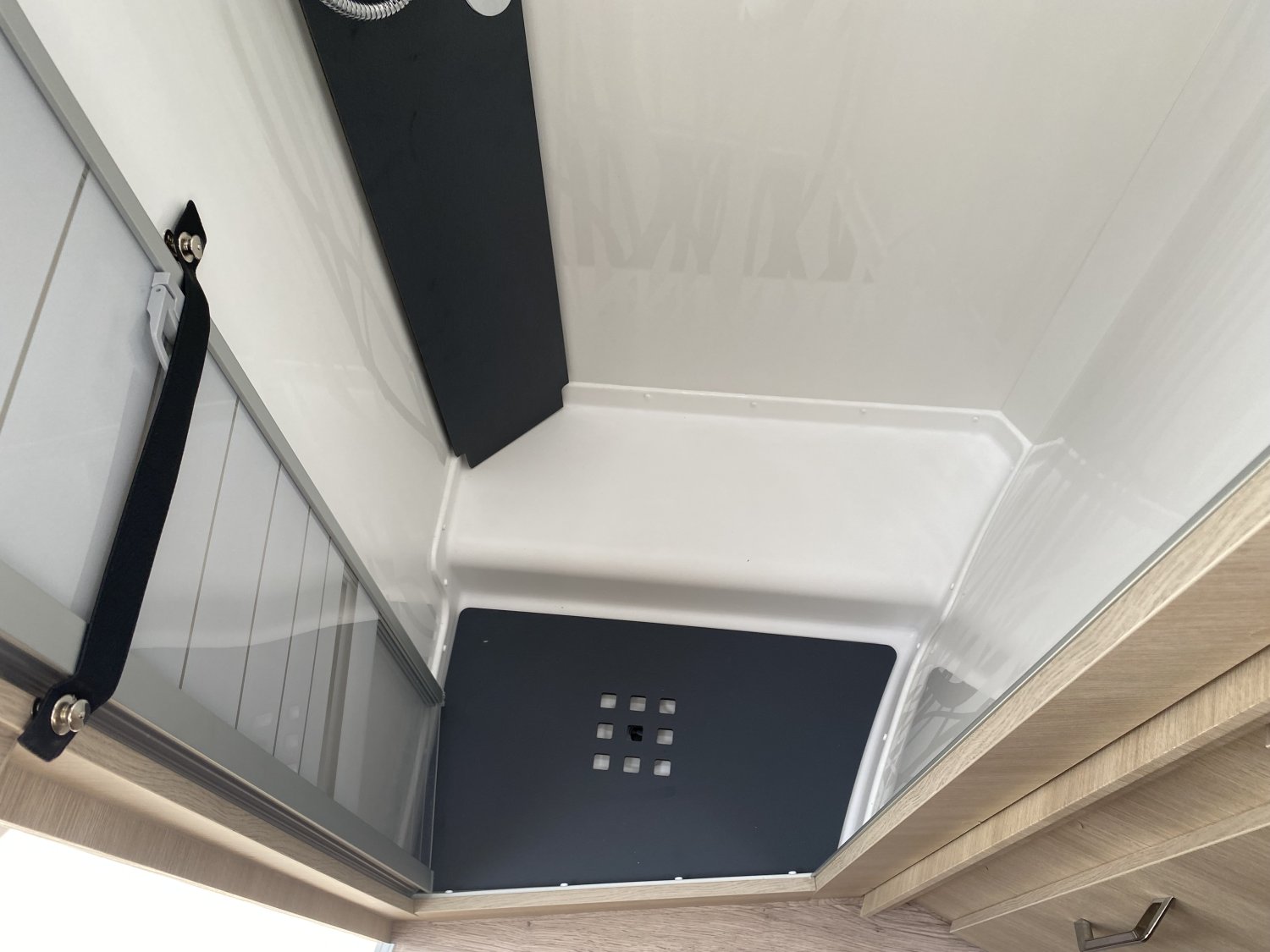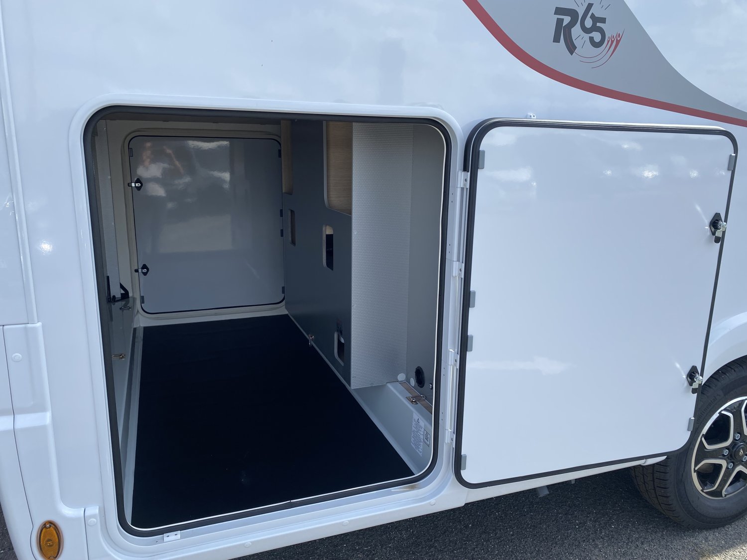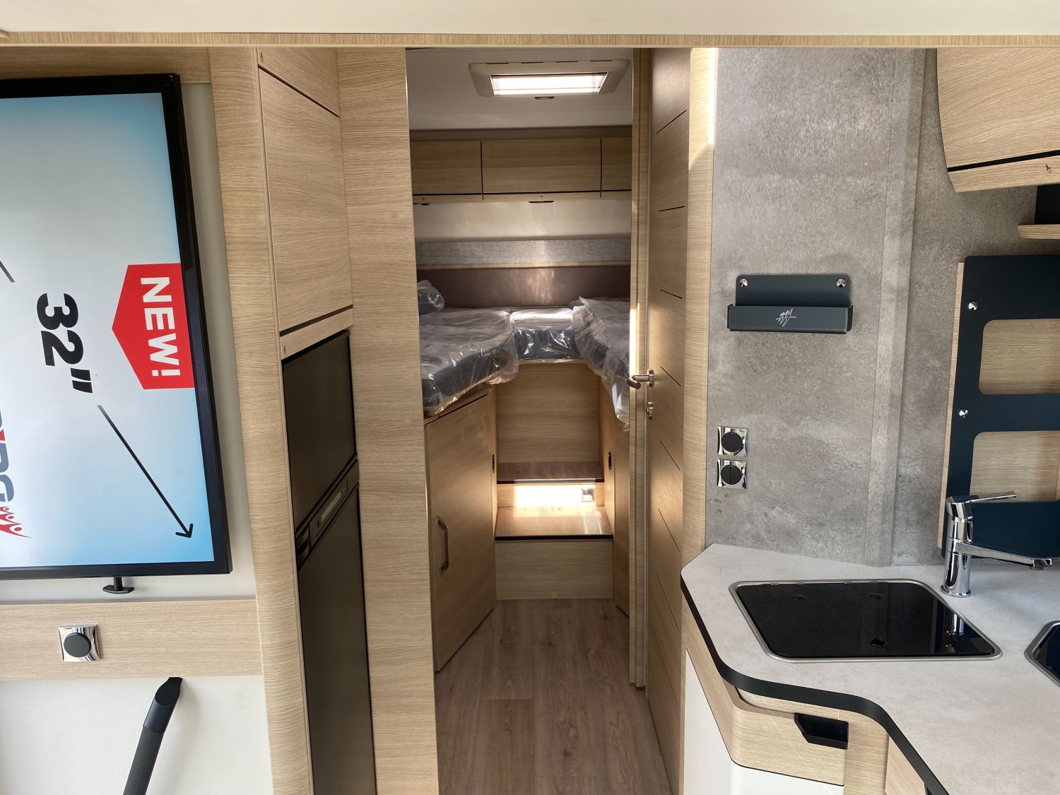 Soute/garage chauffé, Porte cellule XL : 600 mm, Hotte cuisine encastrée avec éclairage LED, Rétroviseurs extérieurs double vision (lentille grand angle, Grand réfrigérateur AES 156 L, Panneau solaire 150 W, Volant et pommeau de levier de vitesses confort, Habillage gris aluminium sur bouche d'aération, Lits jumeaux transformables en lit double transversal, Batterie lithium 100 Ah, Couleur carrosserie Iron Grey, Jantes en alliage léger 16"