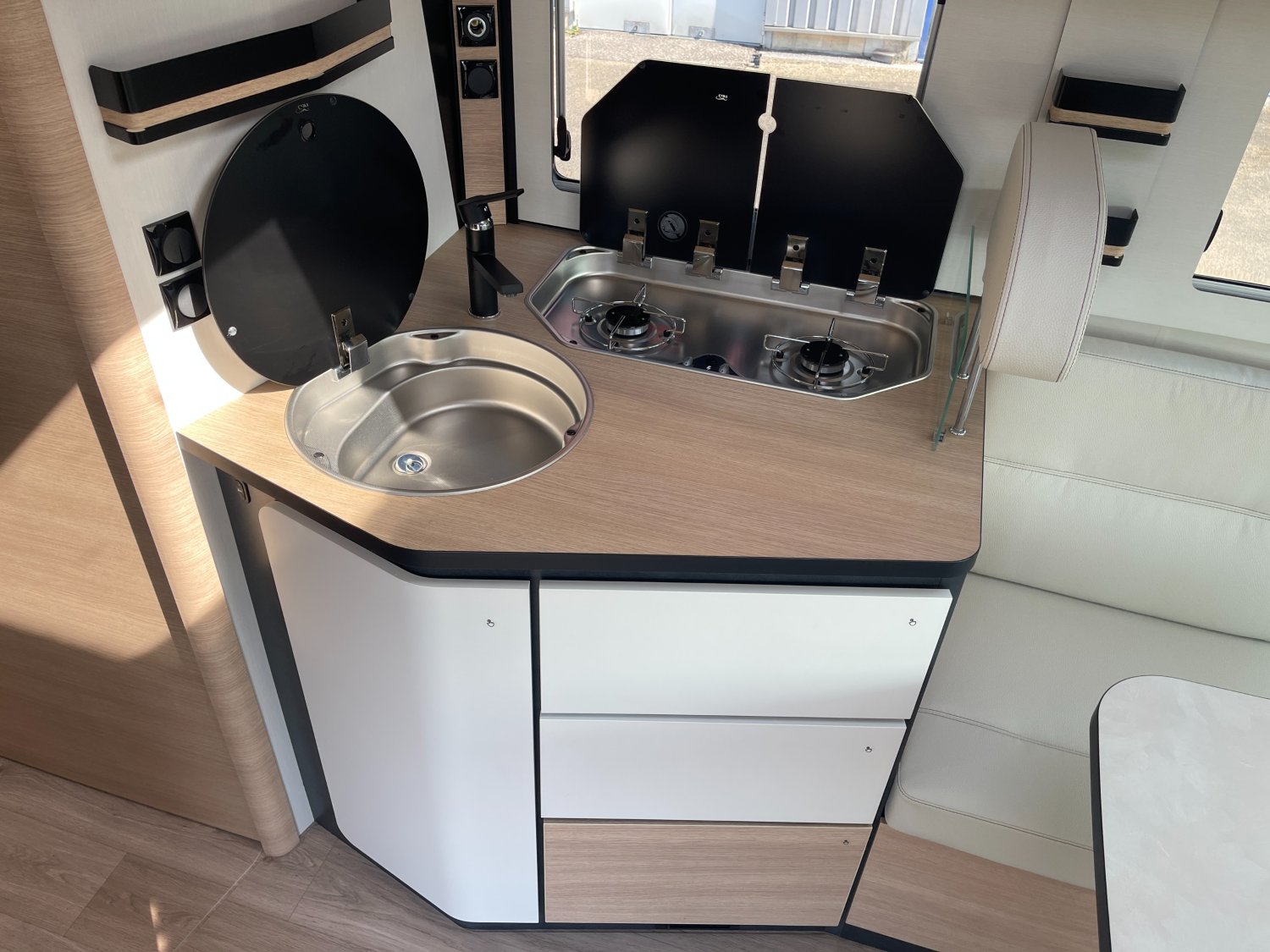 EVIER INOX AVEC COUVERCLE VERRE NOIR BRILLANT, PREDISPOSITION CAMERA DE RECUL INTEGREE, ECLAIRAGE SOUS PLAN DE TRAVAIL, DIRECTION ASSISTEE ELECTRIQUE, COFFRE A GAZ 2*13KG, PLAQUE 2 FEUX INOX AVEC COUVERCLE, WC A CASSETTE EXTRACTIBLE, VASE EXPANSION SUR RESEAU PROPRE, COLONNE DE DOUCHE AVEC HABILLAGE PLEXI GRIS, VEROUILLAGE CENTRALISE PORTES CELLULE ET CHAUFFEUR, MEUBLE TV OUVERT POUR ECRAN PLAT 32", SOUTE/GARAGE CHAUFFE, RAMPE D'ECLAIRAGE LED PLAFOND SOUTE, PARE BRISE GRAND ANGLE PANORAMIQUE, GRAND LANTERNEAU SALON LONGITUDINAL, MARCHEPIED ELECTRIQUE ACCES CELLULE, CASIER ET RANGEMENT INTERIEUR SOUS PLANCHER, CHAUFFAGE TRUMA COMBI 6 AVEC COMMANDE DE CHAUFFAGE INET X, PORTE CELLULE XL