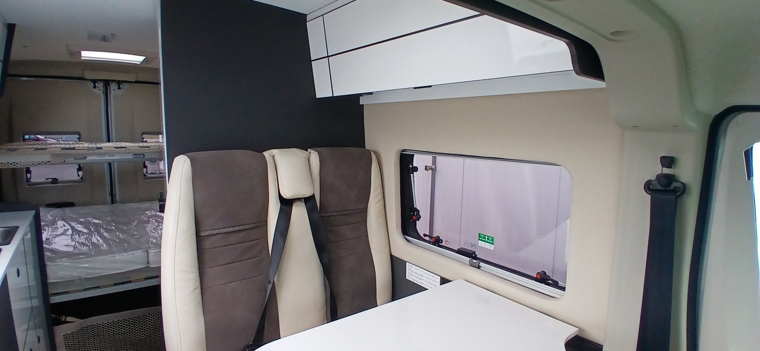 Lanterneau midi heki panoramique, CHAUFFAGE DIESEL COMBI 4 AVEC KIT ALTITUDE, PACK NEXT COMPRENANT :, RESERVOIR CARBURANT 90L, FREIN A MAIN ELECTRIQUE, JANTES ALU 16, Marche pied electrique, Moustiquaire de porte, Eclairage exterieur LED, Panneau solaire 200w, REFRIGERATEUR COMPRESSION, CAMERA DE RECUL, CAPTEUR PRESSION DES PNEUS, RADIO ECRAN TACTILE 9 CARPLAY, VOLANT ET POMMEAU CUIR, TABLEAU DE BORD TECHNO, Panneau de controle cp+, Stores plisses cabines