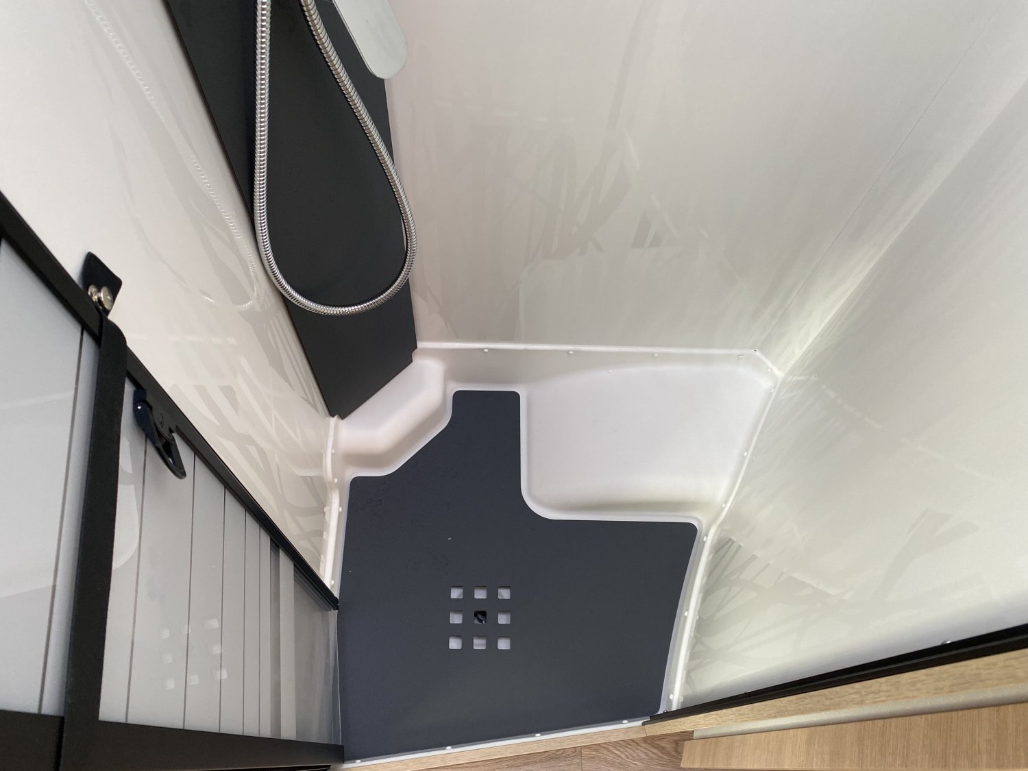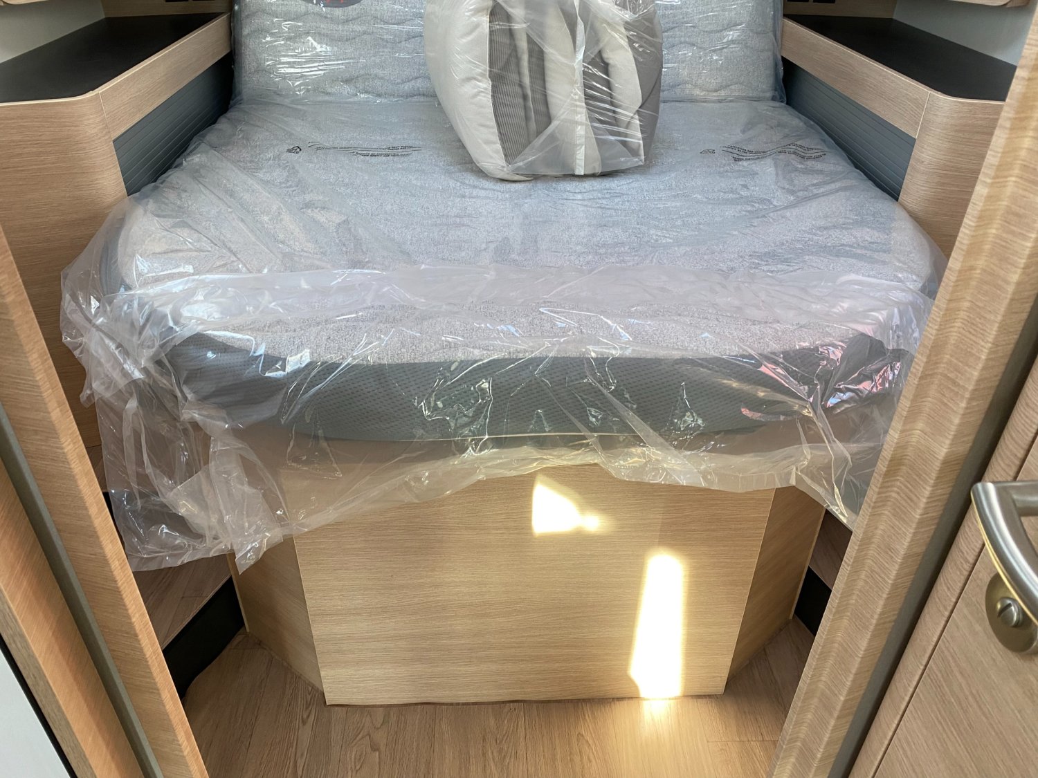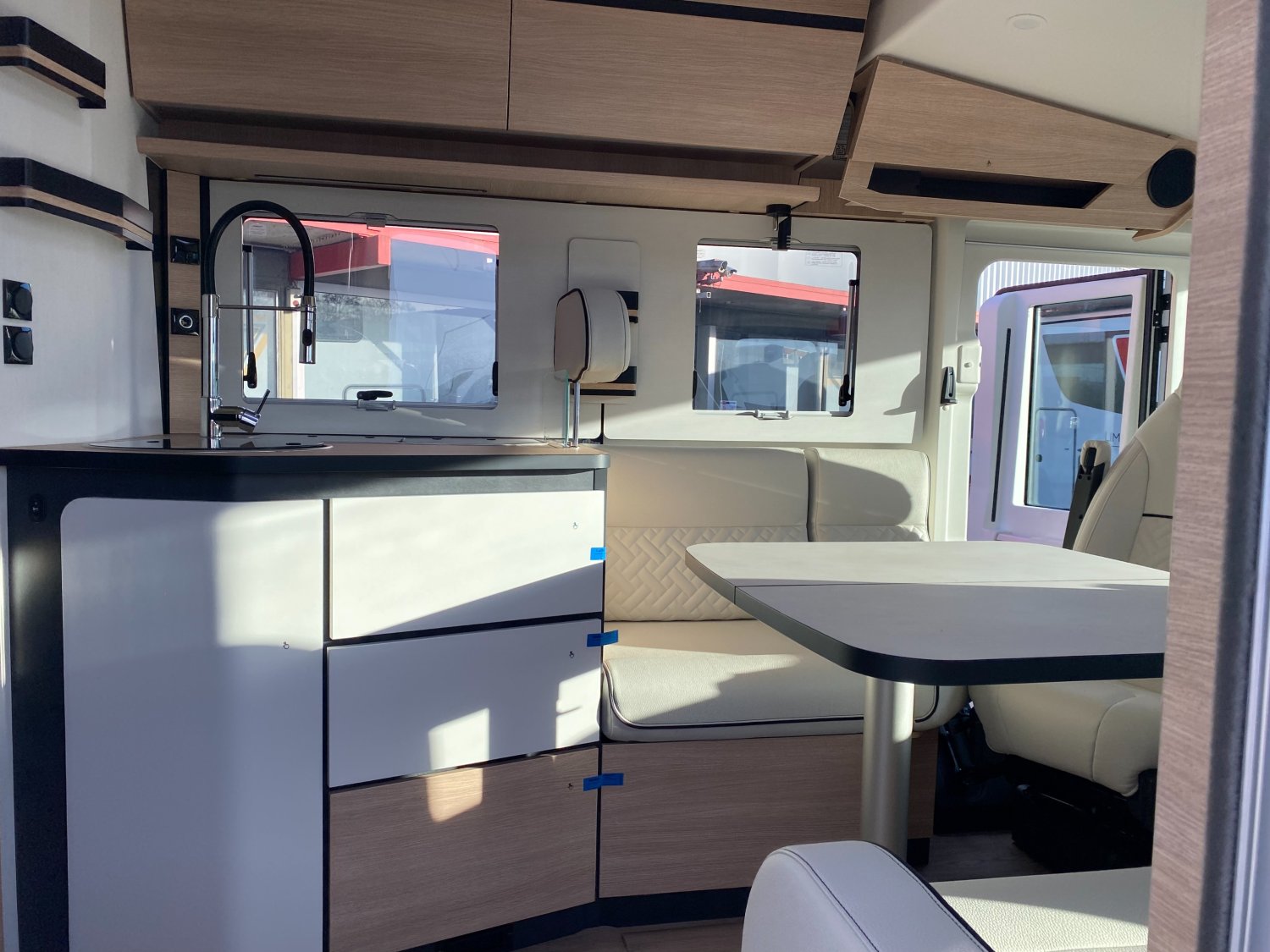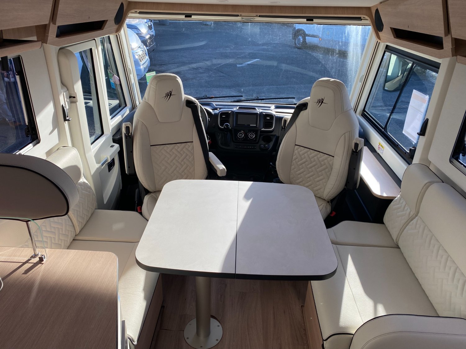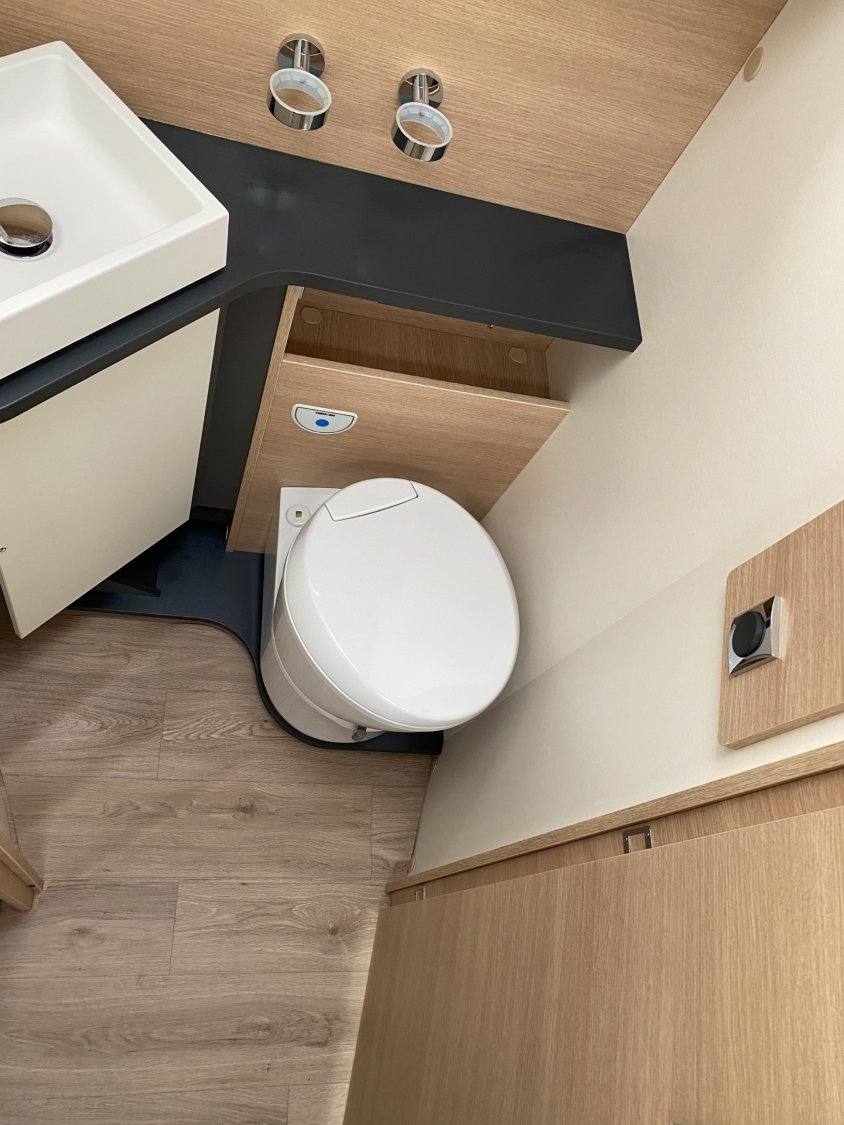 Climatisation cabine manuelle, Caillebotis douche noir, Châssis AL-KO suspensions à roues indépendantes, Grand réfrigérateur AES 135 L avec tiroir à bouteilles, Lit central XL : 150 x 194 cm, Porte cellule L : 540 mm, Commandes au volant pour radio, Jantes en alliage léger 16" (+ 4,5 cm de hauteur véhicule), Habillage gris aluminium sur bouche d'aération, Rétroviseurs extérieurs type bus, coloris noir, Soute/garage chauffé, Volant et pommeau de levier de vitesses confort