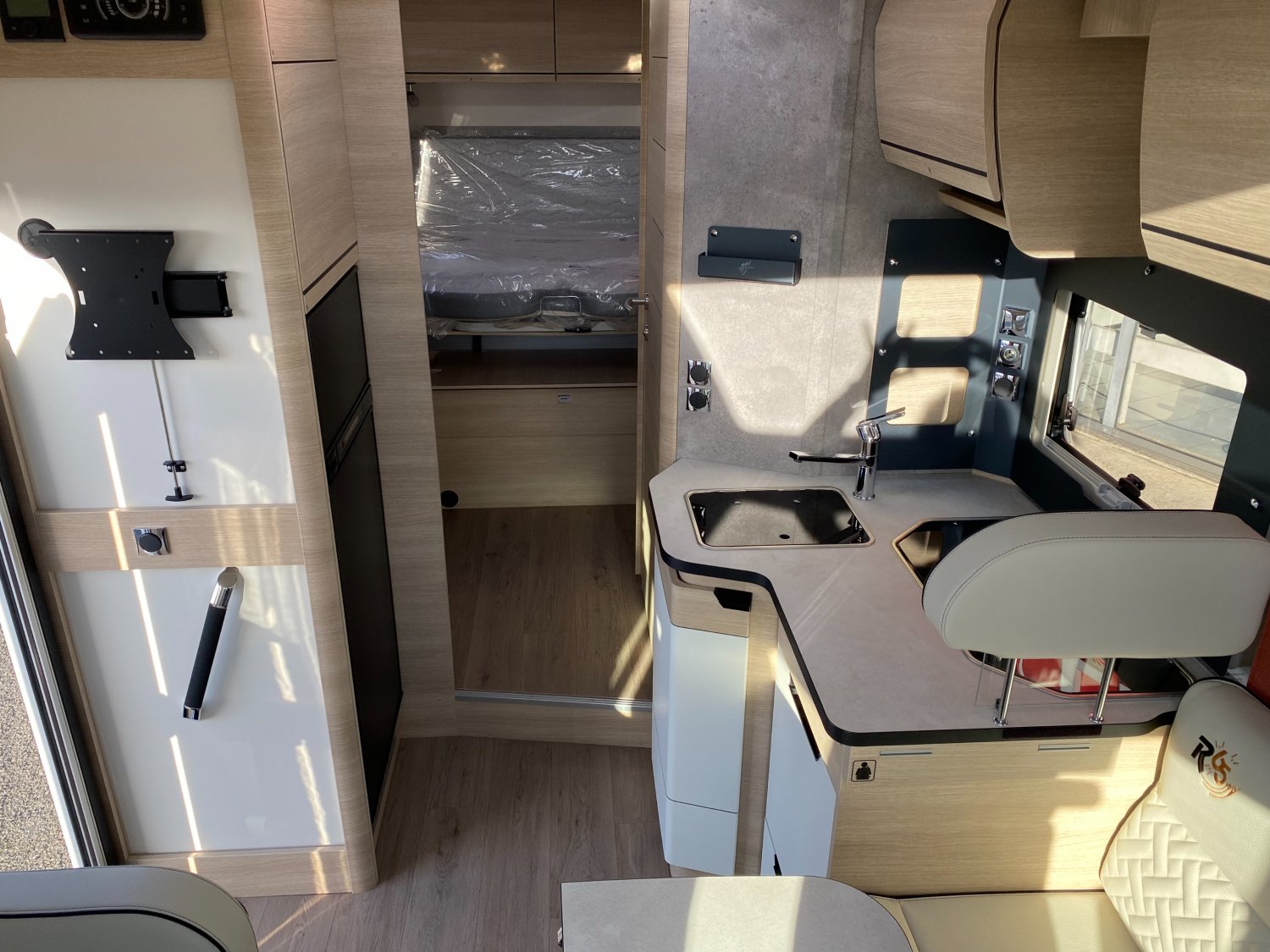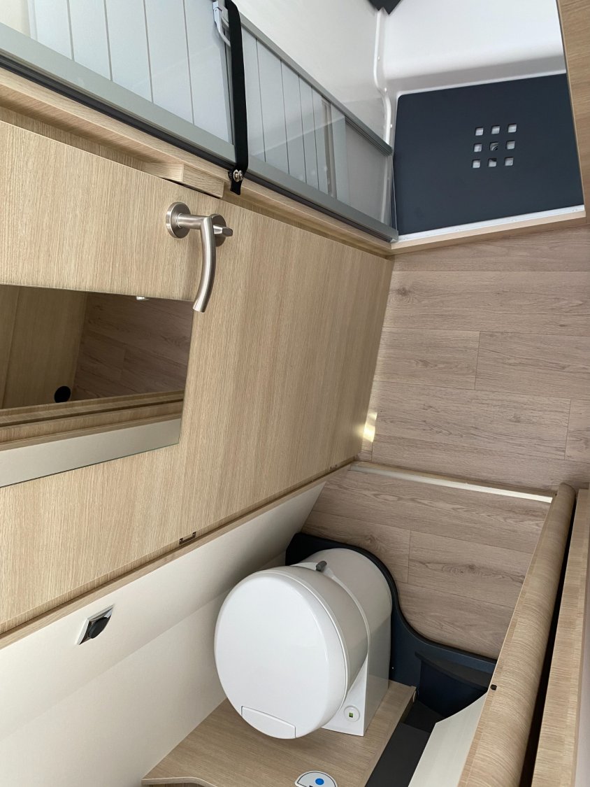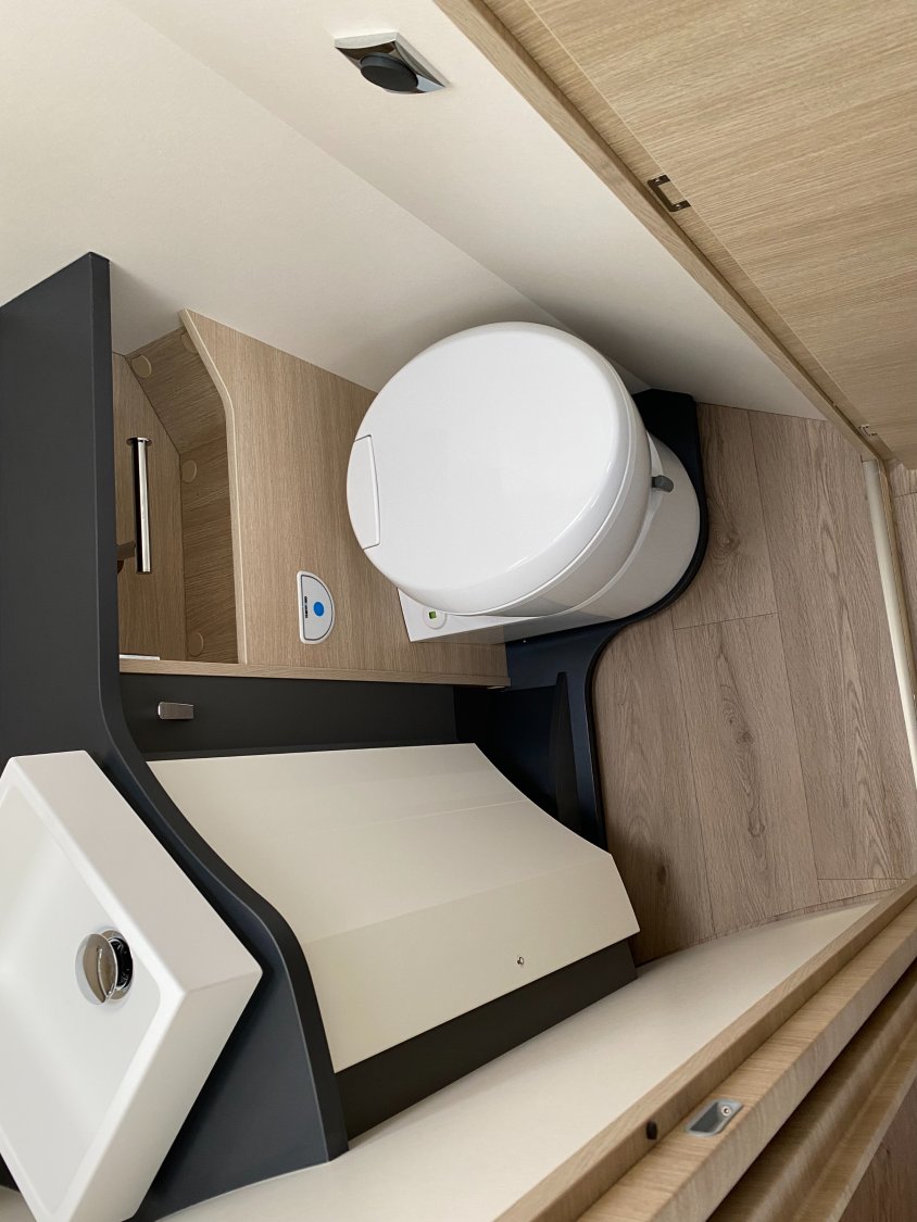 Habillage gris aluminium sur bouche d'aération, Hotte cuisine encastrée avec éclairage LED, Lit central XXL : 160 x 196 cm, Grand réfrigérateur à absorption 156 L, Panneau solaire 150 W, Antes en alliage léger 16", Batterie lithium 100 Ah, Grand réfrigérateur AES 156 L, Porte cellule XL : 600 mm, Rétroviseurs extérieurs double vision (lentille grand angle, Soute/garage chauffé, Volant et pommeau de levier de vitesses confort