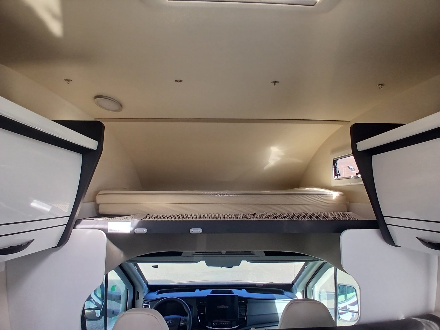 Store occultant plissé, Essuie-glace automatique, Feux de jours DRL, Fix & Go (Kit réparation des pneus), Alerte et assistance au maintien de la voie, Allumage automatique des phares, Moustiquaire coulissante plissée sur porte d'entrée, Prise USB supplémentaire au niveau des lits arrières, Reconnaissance des panneaux de signalistaion de vitesses, ABS/ESP, Start & Stop, double airbag, Système de freinage avec atténuation de collision N2, Tableau de bord semi-numérique de 8", Transformation de la dinette en lit, Panneau de commande CP-Plus, Porte serviette dans la douche, Prise 220V dans la soute et la cuisine, Store d'occultation thermique cabine, Modem 5G avec mises à jour sans fil egalement via smartphone, Avertissement de conduite en sens inverse, Caméra de recul, Capteur de pression de gonflage des pneus, Frein à main électrique, ISOFIX, Jantes Acier 16", Service d'urgence Ford, Réservoir Diesel 70 Litres, Rétroviseurs électriques et dégivrants, Capteurs de stationnement avant, Régulateur de vitesses (cruise control), Climatisation automatique, Ecran tactile 12" avec système SYNC 4, Feux anti-brouillard, Chauffage Truma Combi 4 Gaz (4000W)