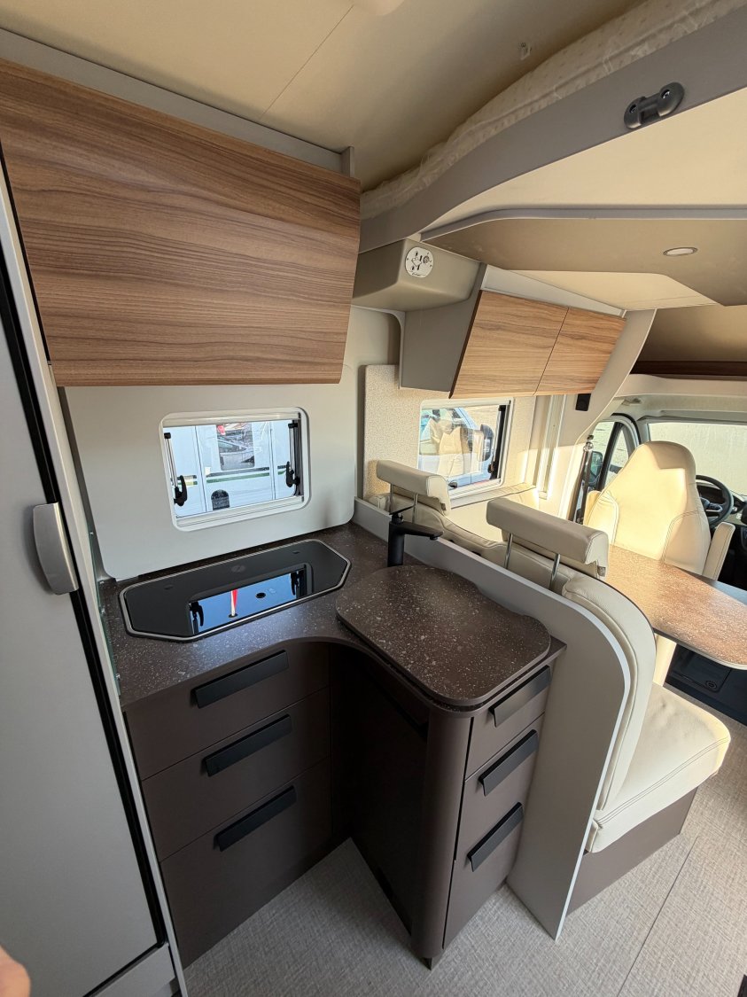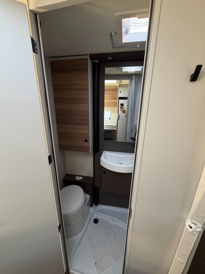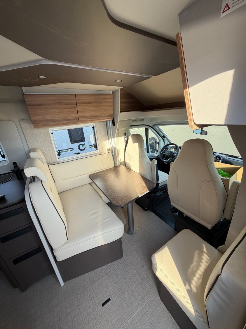 Rétroviseurs électriques et dégivrants, Sièges cabine pivotants, Porte-gobelets, Volant et pommeau de levier de vitesse gainés cuir, ********, ************, CHAUFFAGE/CHAUFFE EAU COMBI 6 GAZ, Stores plissés occultants cabine, Tableau de bord Techno (application aluminium), Feux de jour, Fix and Go Kit (à la place de la roue de secours), DCDC 25AMP, Jantes aluminium 16'' Bi-Color, Pare-chocs avant couleur carrosserie, Pneus 4 saisons, Ressorts à lames composites, Régulateur de vitesse avec limiteur de vitesse, Réservoir diesel 60 litres, Climatisation manuelle en cabine, Habillage des sièges cabine assorti à la cellule, Marchepied cellule encastré, Marchepied électrique, Marchepieds cabine, Peinture extérieure Gris Lanzarote (cabine), Plancher isolé en XPS avec soubassement en polyester, Porte d'entrée version large avec fenêtre, moustiquaire,, Collecteur de déchets et verrouillage centralisé, Airbag conducteur et passager, Station multimédia avec caméra de recul, Frein à main électrique, Rétroviseurs bras large, Start & Stop, REFRIGERATEUR 131L DONT COMPARTIMENT CONGELATION 15L, COFFRE A GAZ 2X11 KG, ABS (système antiblocage des roues), Alternateur renforcé (220 Ah), Capteur de pression, Châssis Fiat à voie arrière élargie, Feux antibrouillard avant, BATTERIE LITHIUM 100Ah, Traction + avec fonction Hill Descent Control