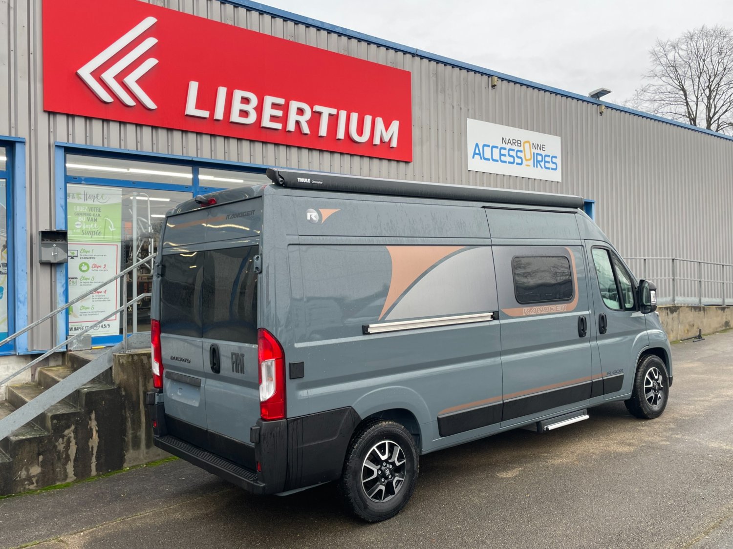 VOLANT EN CUIR + HABILLAGE GRIS ALUMINIUM SUR AÉRATEUR, Douchette exterieur eau froide, Régulateur de vitesse, + JANTE BICOULEUR 16', Antibrouillard avant, Pré équipements TV, Penderie, Rétro caméra de recul, Réservoir 90L, ABS, ESP, PANNEAUX SOLAIRE 130 W, Dimension lit arrière (194x147), Réfrigirateur compression 138L, Chauffage TRUMA D4 GAZOIL avec KIT ALTITUDE, Moustiquaire de porte latérale, Limiteur de vitesse, PACK MULTIMEDIA ZENEC FIAT, PACK LOISIRS (store + panneau solaire)