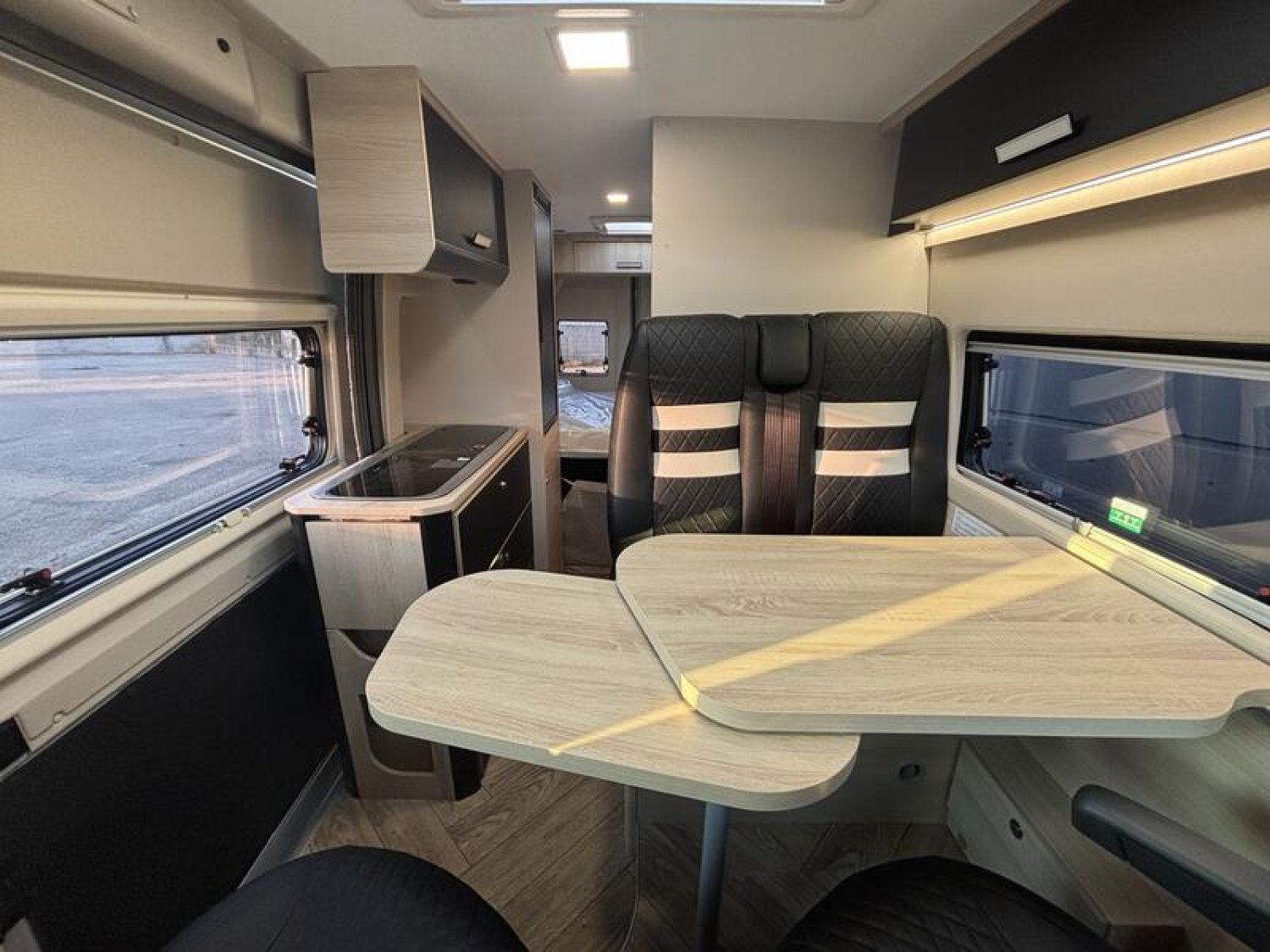 DE SERIE SUR SPORT EDITION Gris Campovolo Climatisation manuelle de cabine Double airbag Fix and go Sièges de cabine pivotants réglables en hauteur avec double accoudoir Housses de siège cabine assorties à l’ambiance cellule Rétroviseurs électriques dégivrants Régulateur / limiteur de vitesse ESP Traction + Hill Descent control Eco pack FIAT : Stop&Start, alternateur intelligent, pompe à carburant à gestion électronique Lanterneau panoramique (ou double lanterneau) Fenêtres double-vitrage avec combiné stores moustiquaire Prises USB/USB-C Pare-chocs avant peint Jantes alliage 16’’ noires Feux antibrouillard Pré-équipement TV Chauffage sur carburant utilisable en roulant Salle d'eau avec fenêtre Baies arrières ouvrantes Extension table dinette Support table extérieure Marchepied électrique Maxi cab Penderie Isolation renforcée "VPS" Pré-disposition panneau solaire (MPPT ready) Précâblage caméra de recul : 0 €