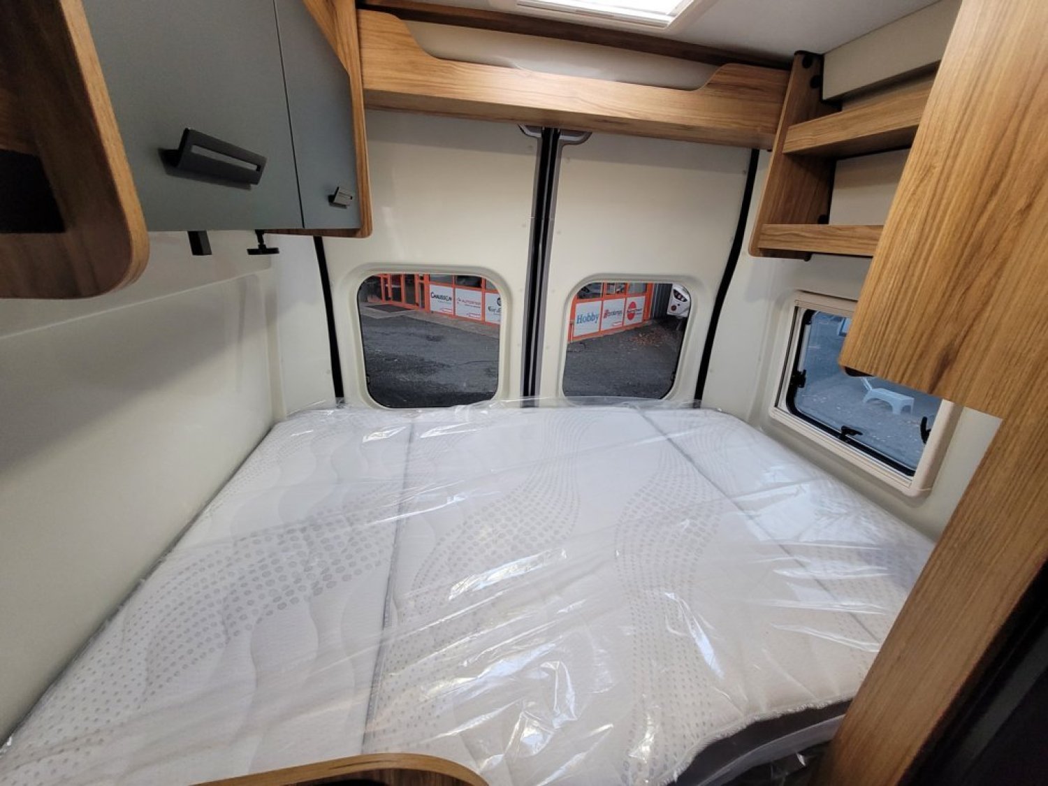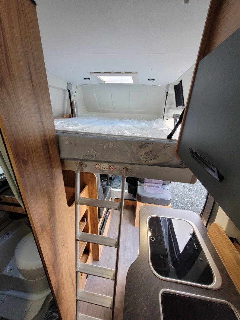 Cuisine en long, Douche modulable, Douche extérieur, Lit arrière transversal, lit pavillon, Salon avant sièges pivotants, WC Cassette.