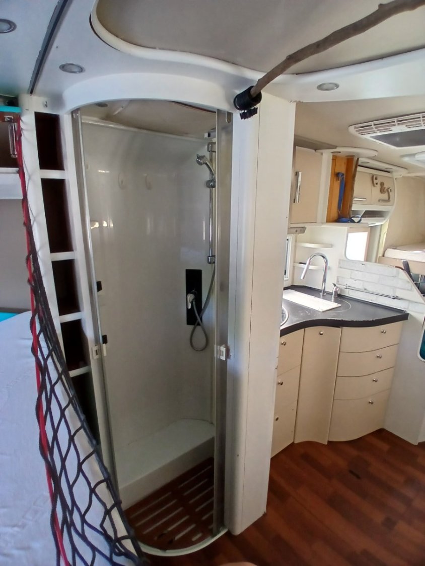 Store extérieur + moustiquaire à chaque ouverture - Store de 4.50M marque Thule - Grand réfrigérateur avec congélateur AES - 3 feux gaz + hotte - Chauffage Truma - Panneau solaire - Capacité des eaux propres 120L - Capacité des eaux usées 100L