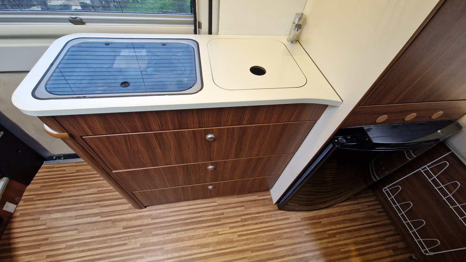 CHAUFFAGE COMBI TRUMA 4, STORE EXTERIEUR 3.5M, GAZINIERE 2 FEUX, ECLAIRAGE LED, MOUSTIQUAIRE DE PORTE CELLULE, PORTE VELO, RALLONGE DE TABLE, STORES PLISSES DE CABINE, RESERVOIR EAUX USEES HORS GEL
