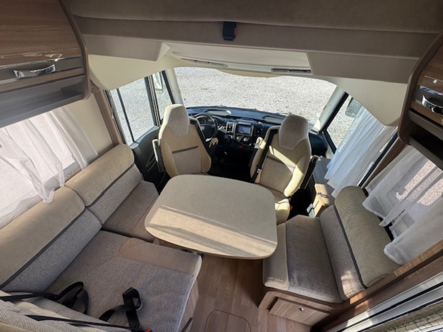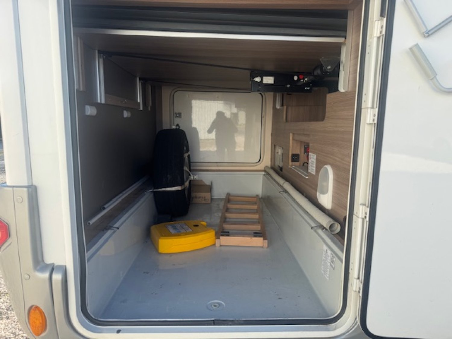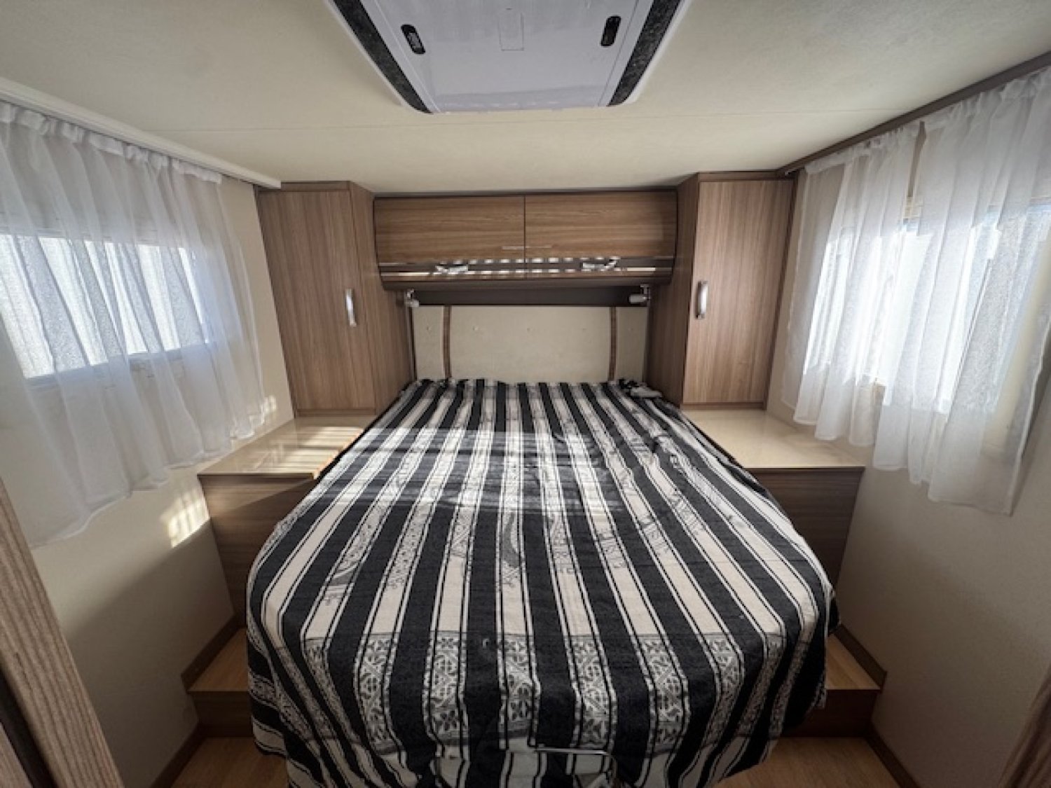 Modèle phare de la marque, il propose un vaste salon en L, une chambre lit central réglable afin d'avoir une soute extérieure immense et une salle de bain avec douche séparée et double cloison !