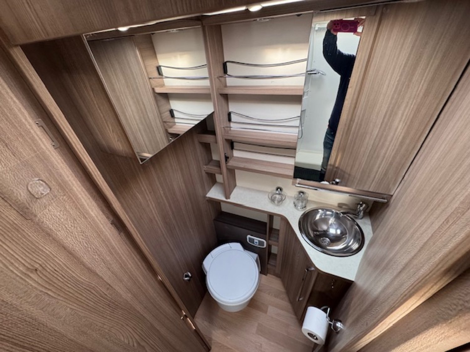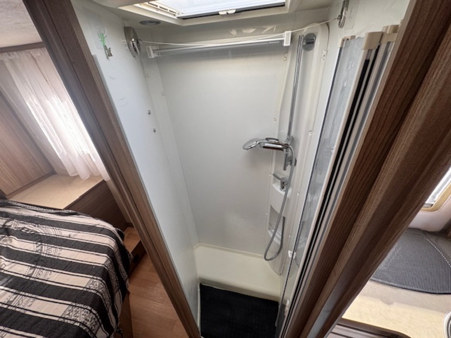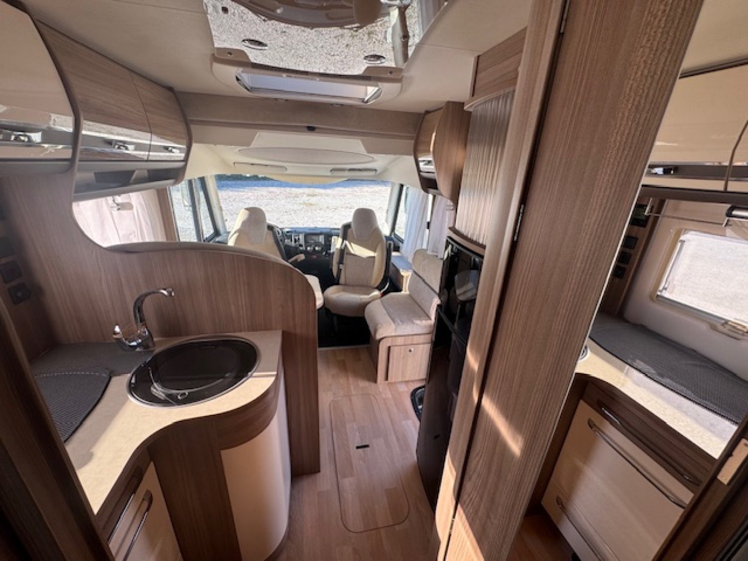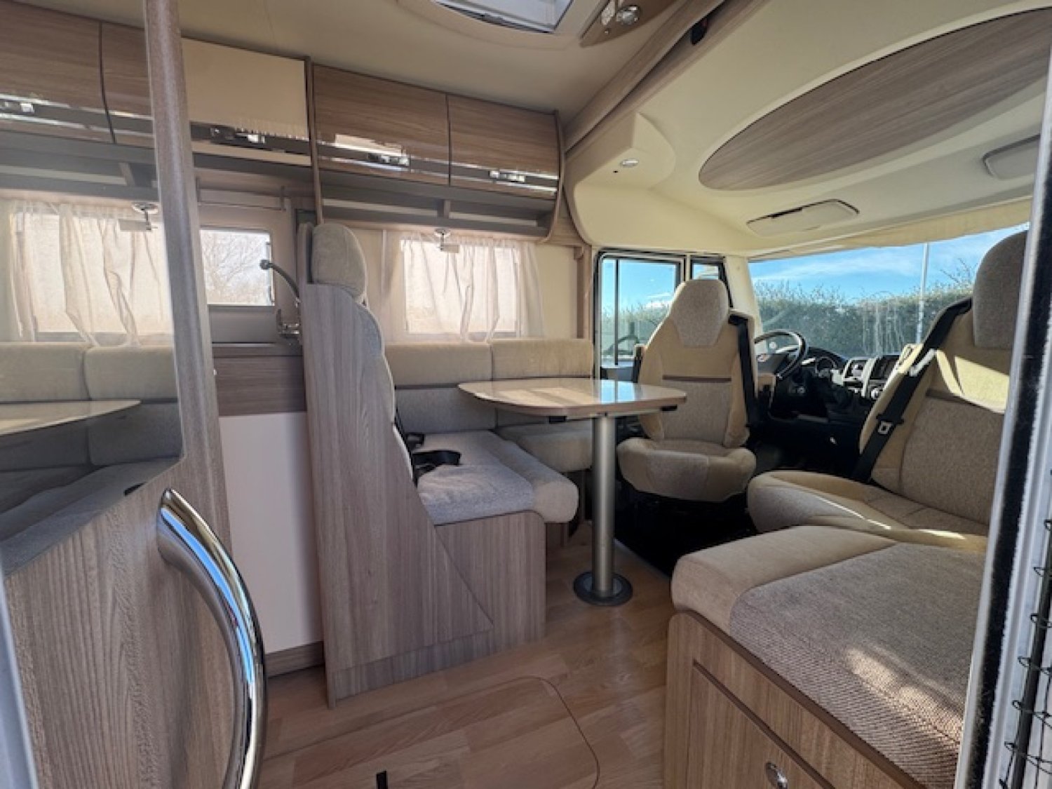 Modèle phare de la marque, il propose un vaste salon en L, une chambre lit central réglable afin d'avoir une soute extérieure immense et une salle de bain avec douche séparée et double cloison !