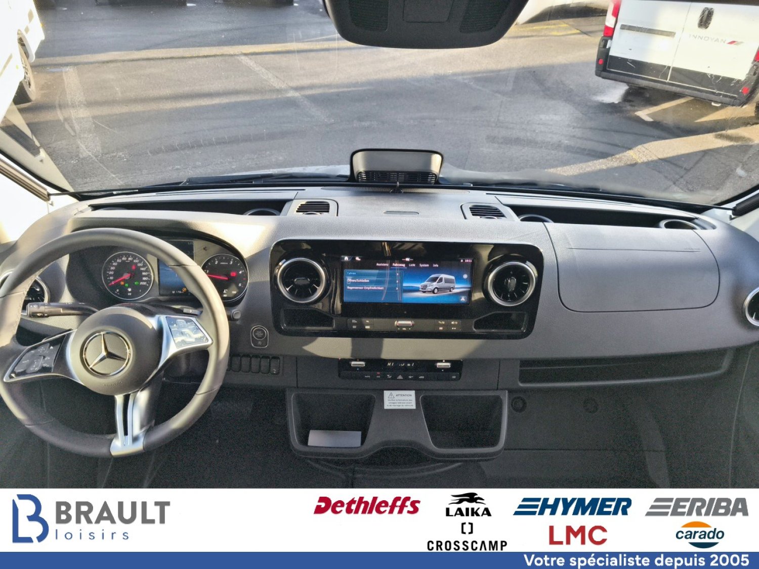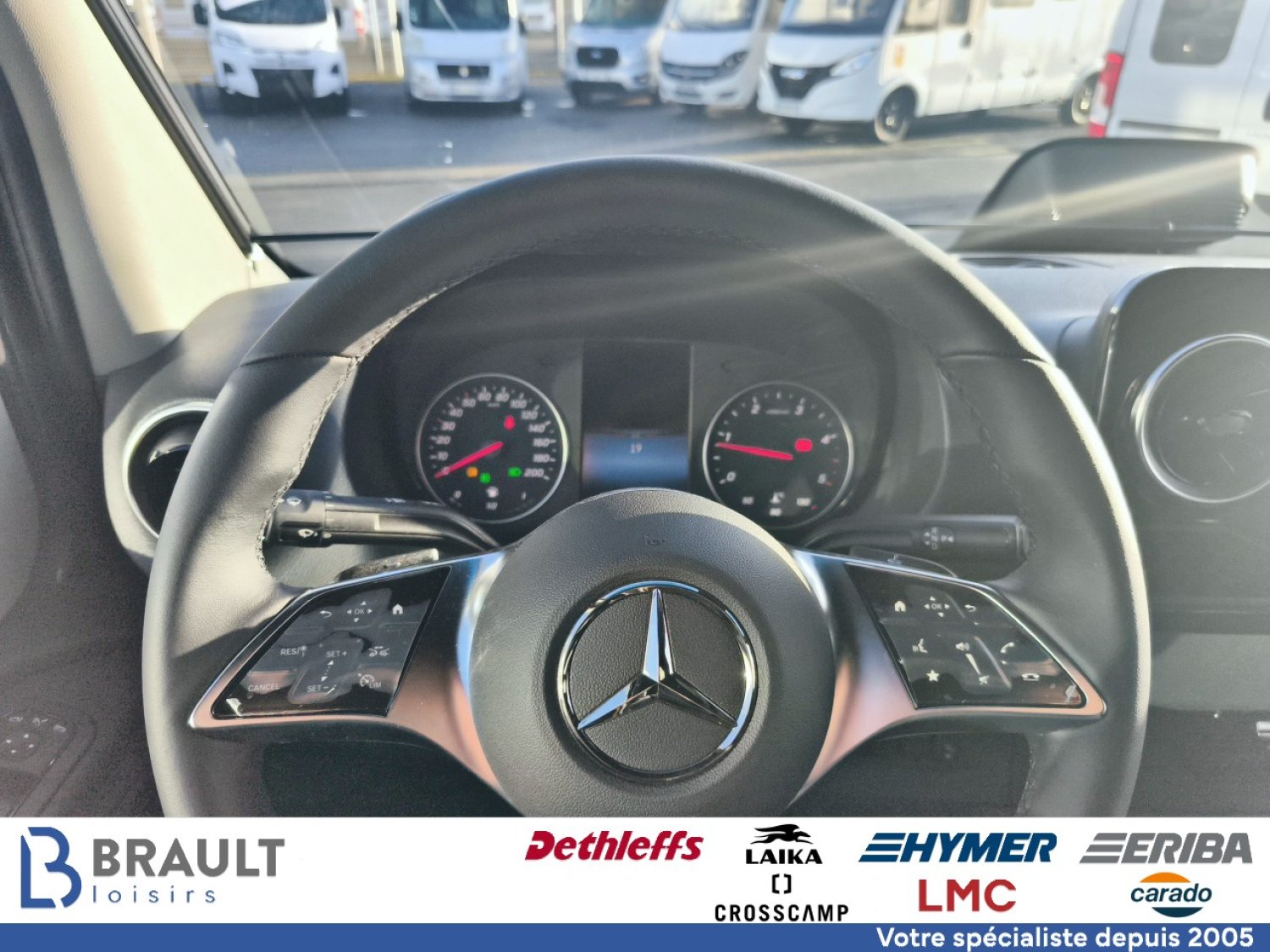 Système multimédia MBUX avec navigation, intégration pour smartphone, commande vocale et caméra de recul, Volant cuir (uniquement avec la boîte de vitesses automatique), Régulateur de vitesse actif DISTRONIC PLUS avec commandes au volant, Assistant reconnaissance des panneaux de signalisation, Ambiance style "HOME" (2 coussins houssés + pochette de rangement en tissu), Draps-housses sur mesure pour lits arrière adaptés aux contours du matelas, Système d'éclairage d'ambiance : système d'éclairage à plusieurs niveaux avec commande dynamique et individuelle (y compris l'intensité de la lumière) ainsi qu'un balisage au sol, Caillebotis de douche avec surface en liège, Pack capteurs HYMER Connect comprenant 1x capteur de niveau de gaz, 1x capteur de température et 2x capteurs de contact