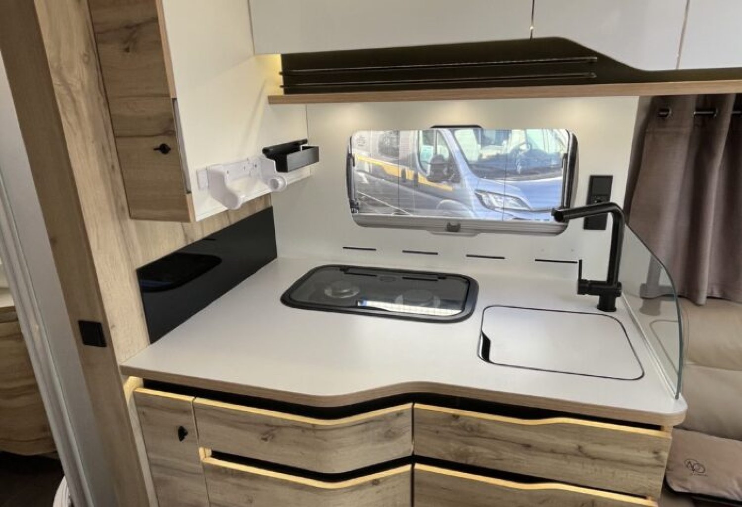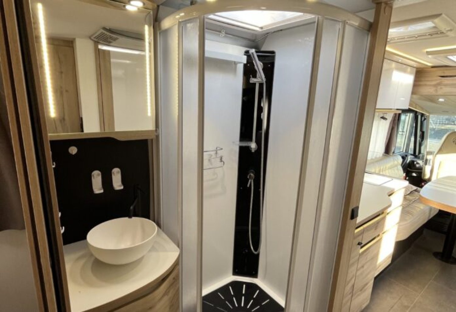 Entièrement équipé, incluant vérins de stabilisation hydrauliques EP pour un confort optimal à l’arrêt.