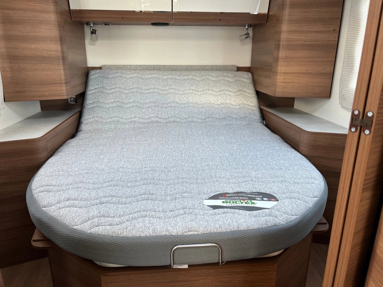 • Lit permanent avec sommier à cadre aluminium et matelas mousse BULTEX® à haute résilience