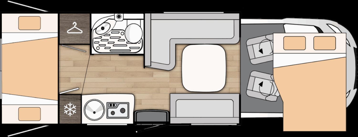 Radio DAB avec écran tactile 12" + Caméra recul, Carrosserie et dessous plancher polyester, Flancs et plafond imputrescibles (sans bois), Lit de pavillon électrique 2 places, Prise USB dans la zone de couchage, Grand réfrigérateur / congélateur à compression 150 l, Espace pour bouteilles de gaz :1, Chaudière utilisant carburant véhicule Webasto - 4000 W, Pare-chocs arrière avec feux LED, Porte cellule XL, Prises 230 et 12 V dans le garage, Chargeur de batterie 22A avec option lithium, Commandes au volant de la radio, Phares automatiques et détecteur de pluie, Fenêtres double vitrage Dometic D-Lux Extra plates, Rétroviseurs électriques et dégivrants, Vitres électriques, Régulateur de vitesse avec limiteur, Adaptation intelligente de la vitesse, Serrures portillon de type automobile, Chauffe-eau gaz, Phares antibrouillard avant, Reconnaissance des panneaux de limitation de vitesse, Alerte de circulation à contresens, Assistance au centrage sur la voie, Alerte anticollision et aide au stationnement avant, Contrôle de la pression des pneus, Climatisation cabine automatique, Casquette de profile 100% polyester renforcé