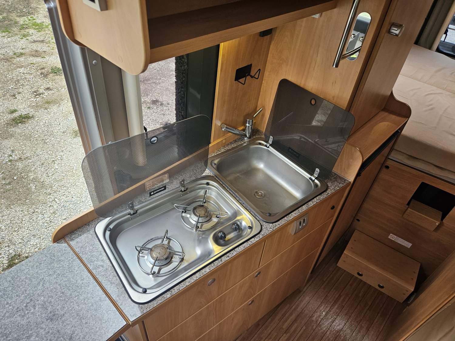 Le confort est complété par une moustiquaire de porte cellule, des stores plissés de cabine, une moquette cabine, un store extérieur de 3 mètres et un porte vélos.