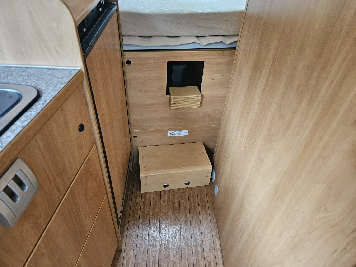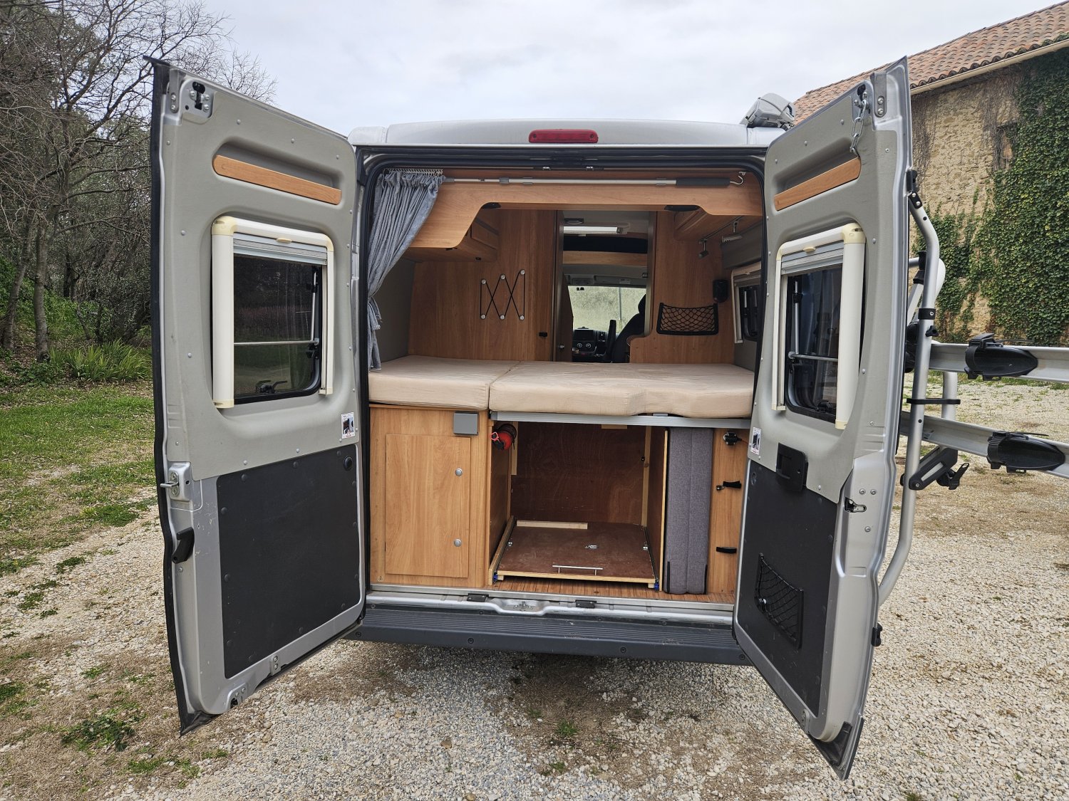 L'espace nuit est composé d'un lit transversal confortable sur soute ainsi que d'un lit pliant, permettant une vraie modularité selon vos besoin.